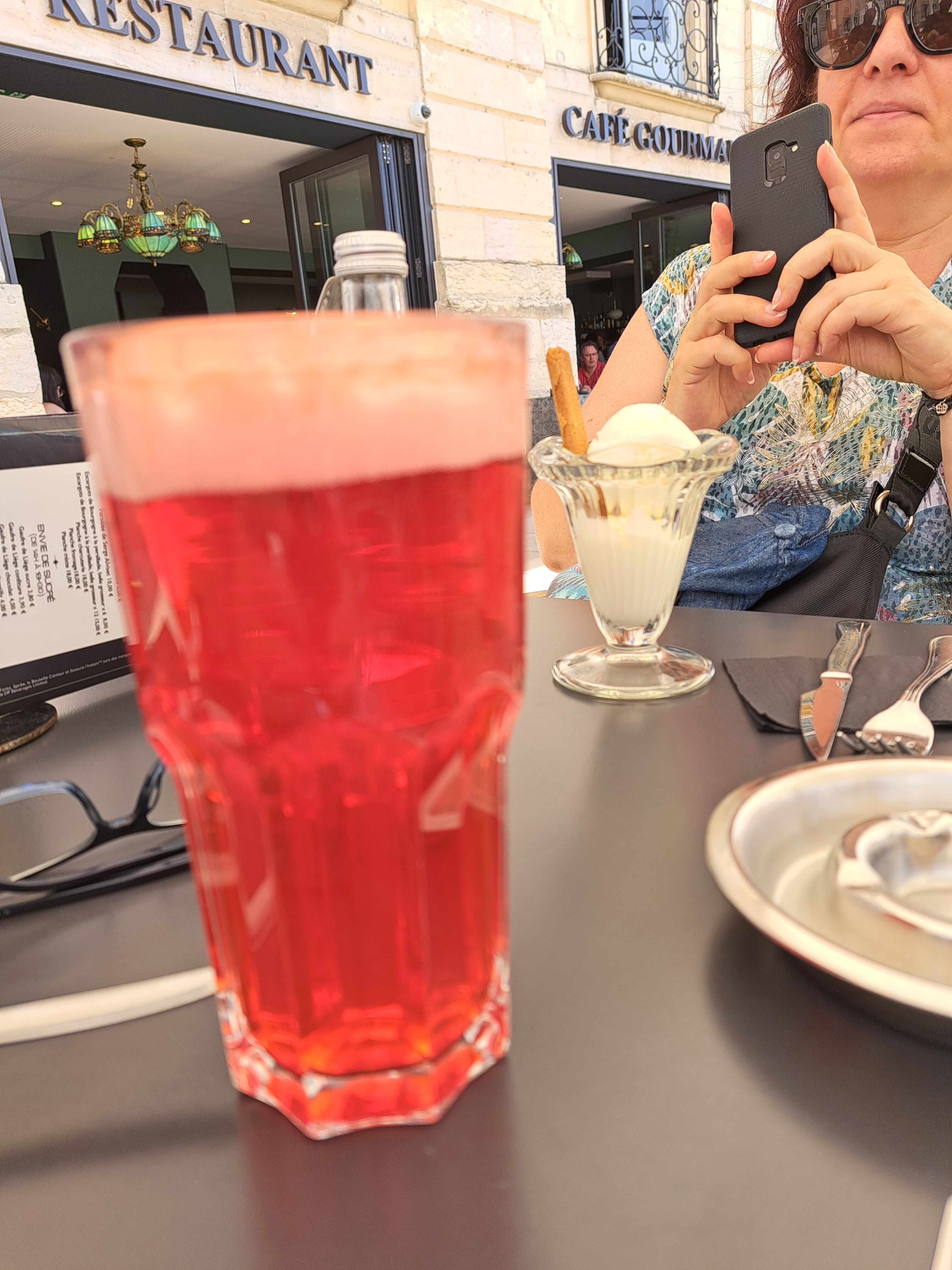 Nous sommes passés spontanément au CaféGourmand. La serveuse nous a trouvé une table même sans réservation à l'avance. Elle a fait un grand effort pour parler anglais avec nous et nous nous sommes sentis très bien accueillis. Les prix sont plutôt élevés, mais dans la lignée des restaurants du centre ville de Dijon et la qualité ainsi que la vue sont très bonnes (pour trois petites entrées, une bouteille d'eau et un dessert on a fini par payer 35€). Le personnel est sympathique, le mobilier est élégant et les salles de bains sont propres. Dans l'ensemble, une expérience très positive.