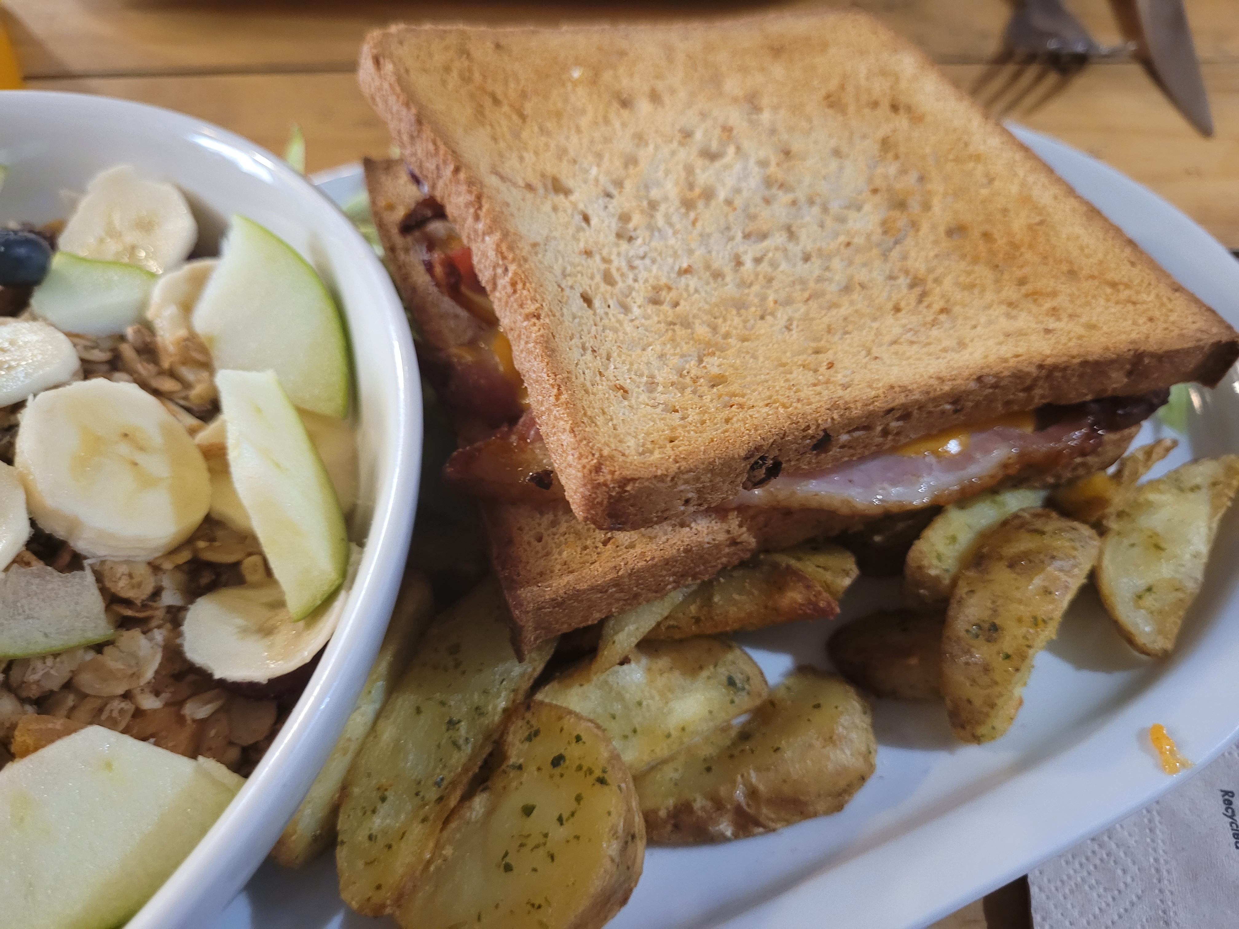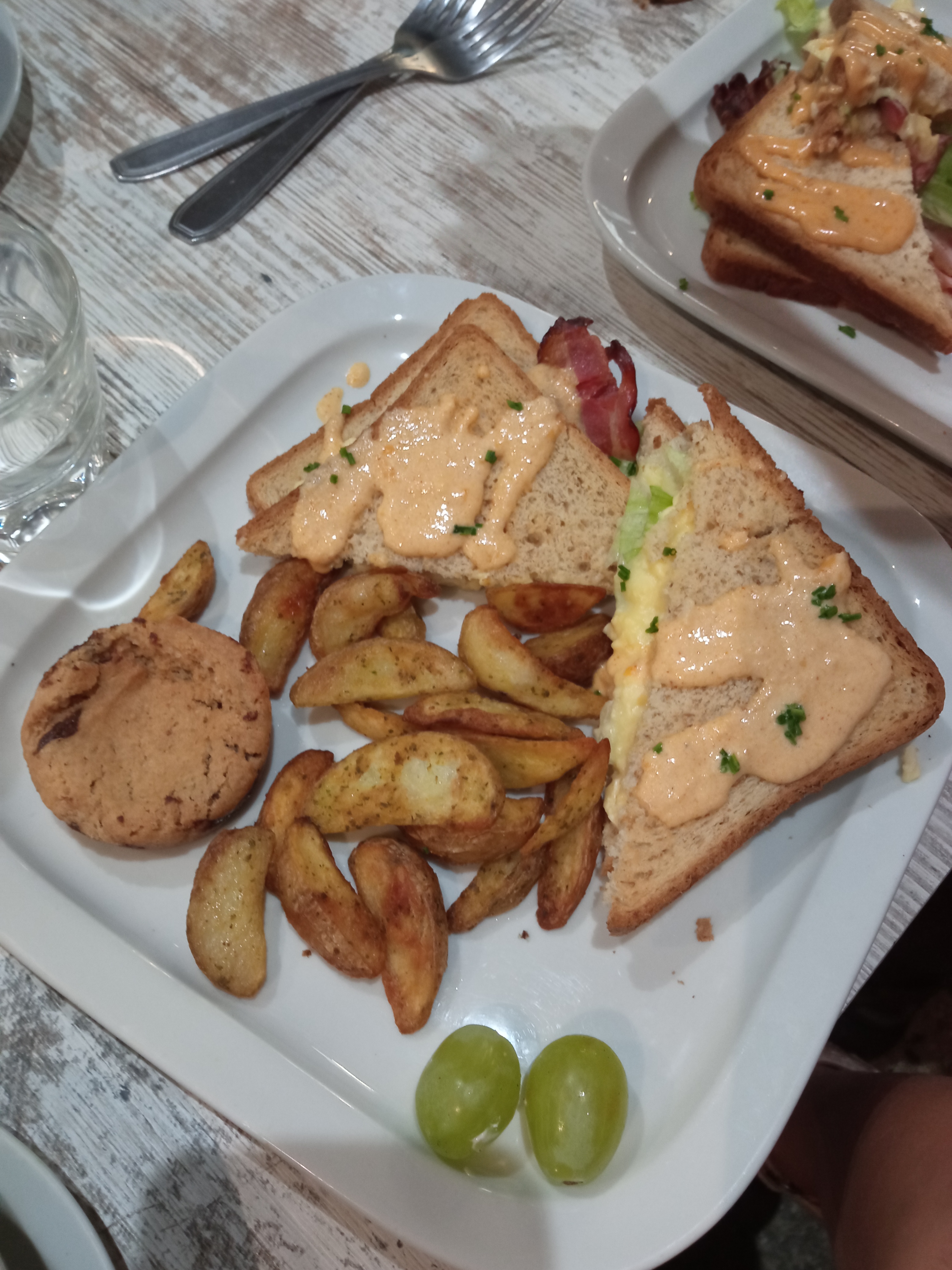 L'endroit est paisible et agréable avec une bonne ambiance musicale. Le personnel était très accueillant et sympathique. J'ai pris la formule lunch à 11,90€ ce qui est vraiment très abordable au vu de tout ce qu'il y avait dans l'assiette, c'était tellement copieux que je n'ai pas pu finir. J'y ai mangé à 10h du matin et je n'ai pas eu faim de la journée. Les clubs sandwich sont vraiment très très bons, vraiment excellents, j'ai rarement mangé quelque chose d'aussi bon, avec les frites de patates douces qui étaient divines. Je recommande à 100% ce lieu. Le service était rapide et efficace, rien à redire.