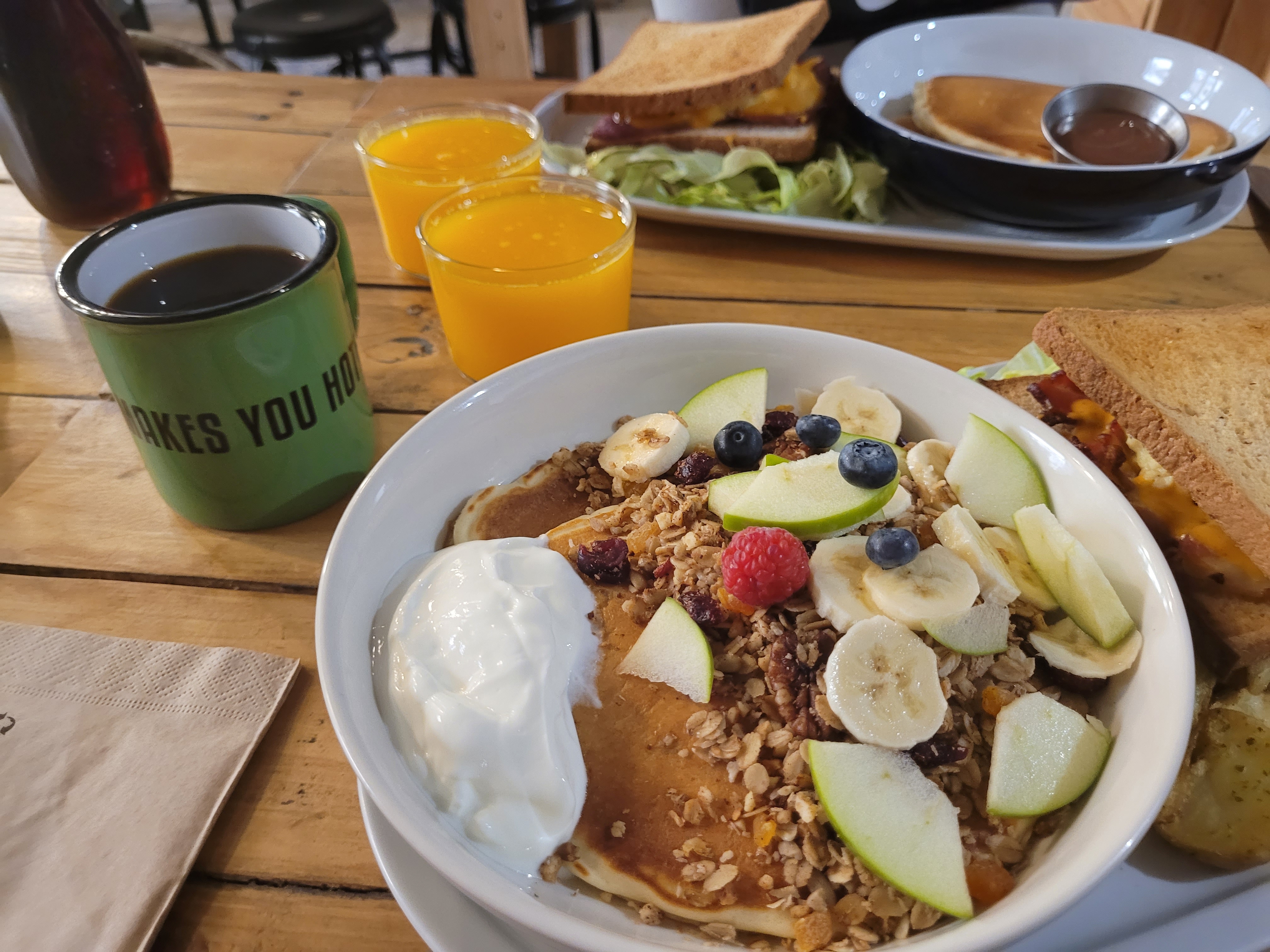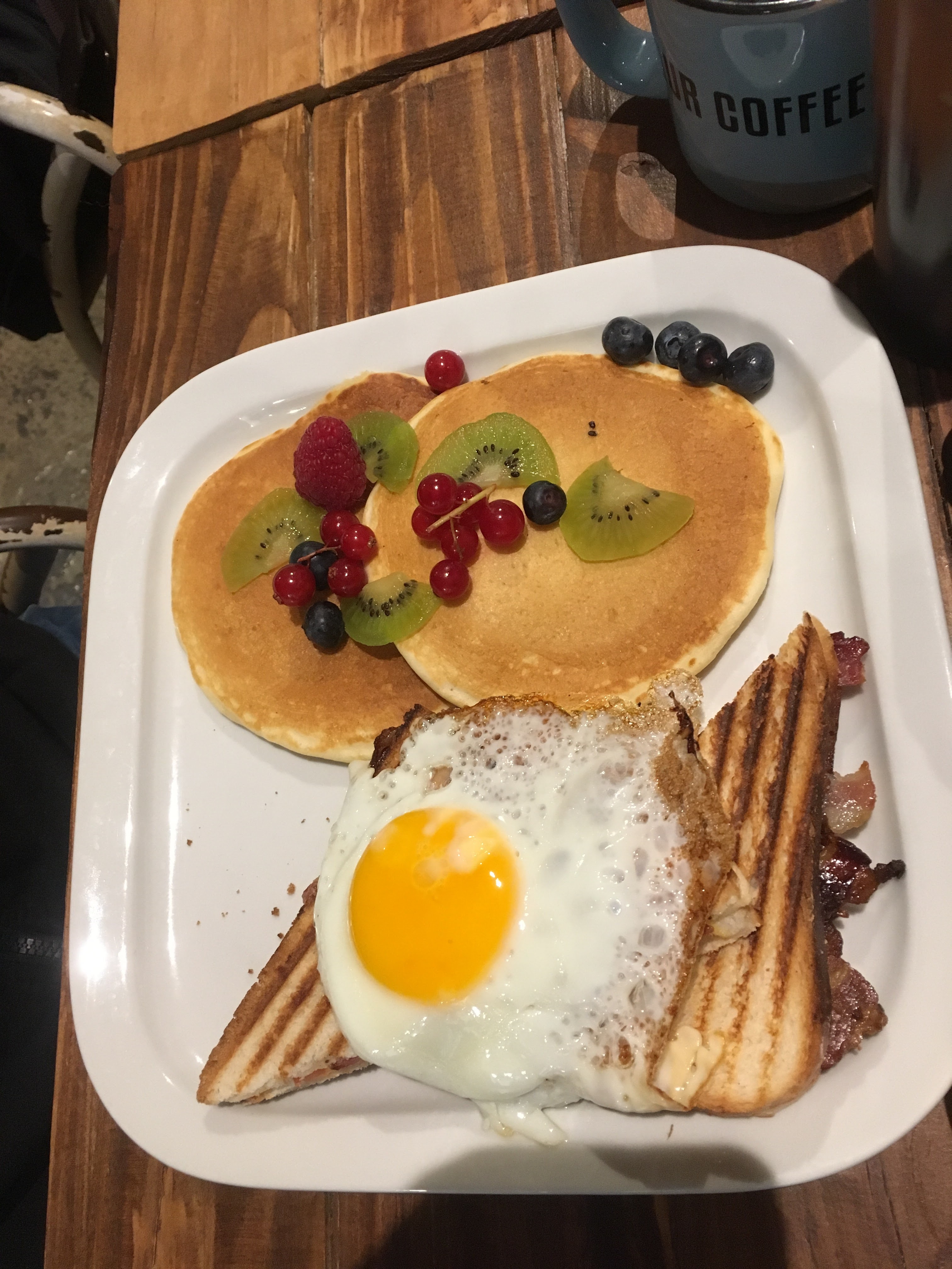 Le menu brunch bacon est super gros et super bon. Le yaourt avec les fruits est frais, les pancakes moelleux, le croque bacon oeuf était super bon (le bacon était parfait). Seul hic, c'est un peu cher (quand on commande sur UberEats) et le café n'est malheureusement pas très bon. Je recommande quand même vivement ce resto !