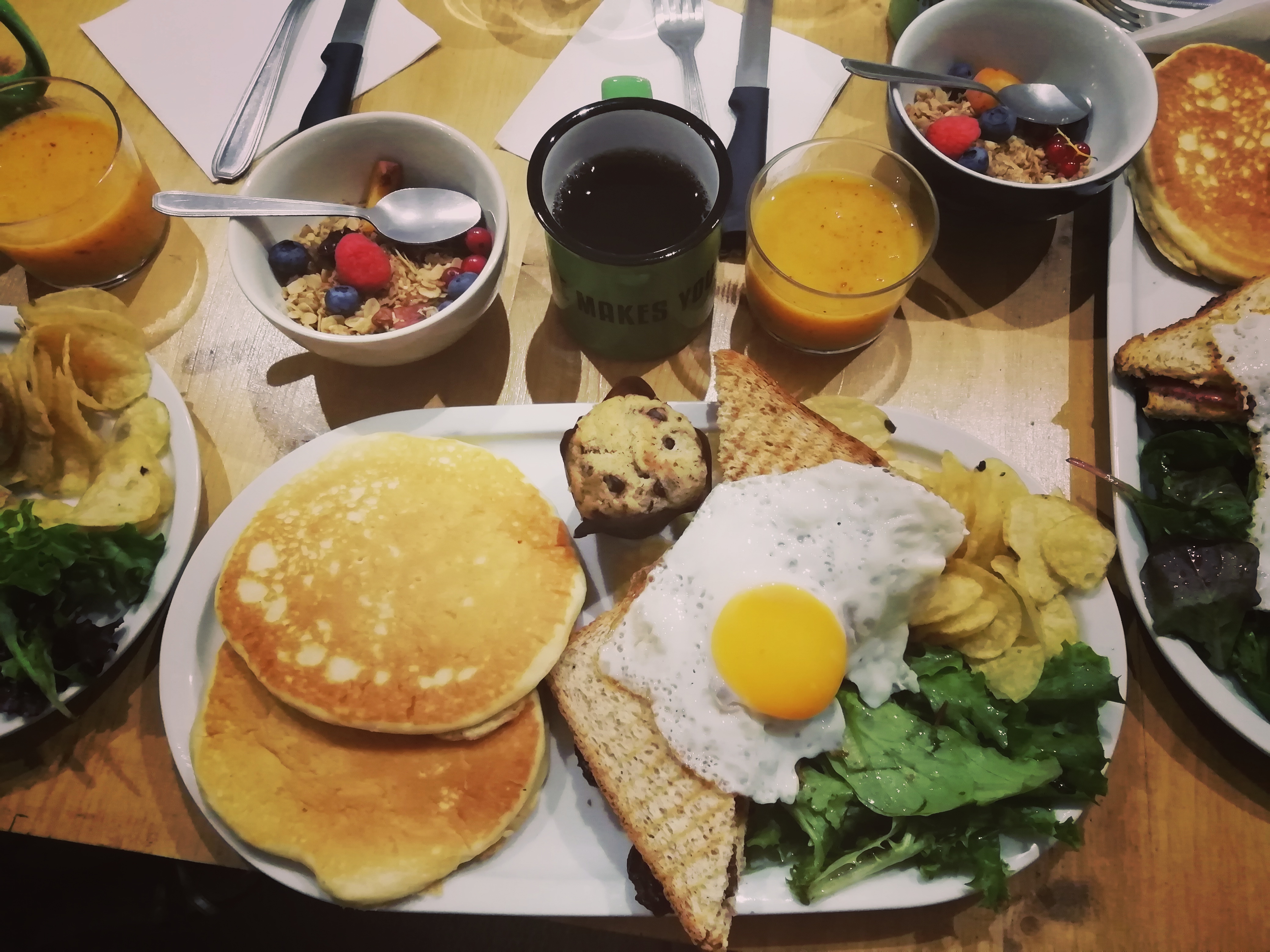 Enfin des pancakes pour le petit-déjeuner! Deco détendue, accueil sympa et efficace et un p'ti-dej healthy ou plus gourmand 😋