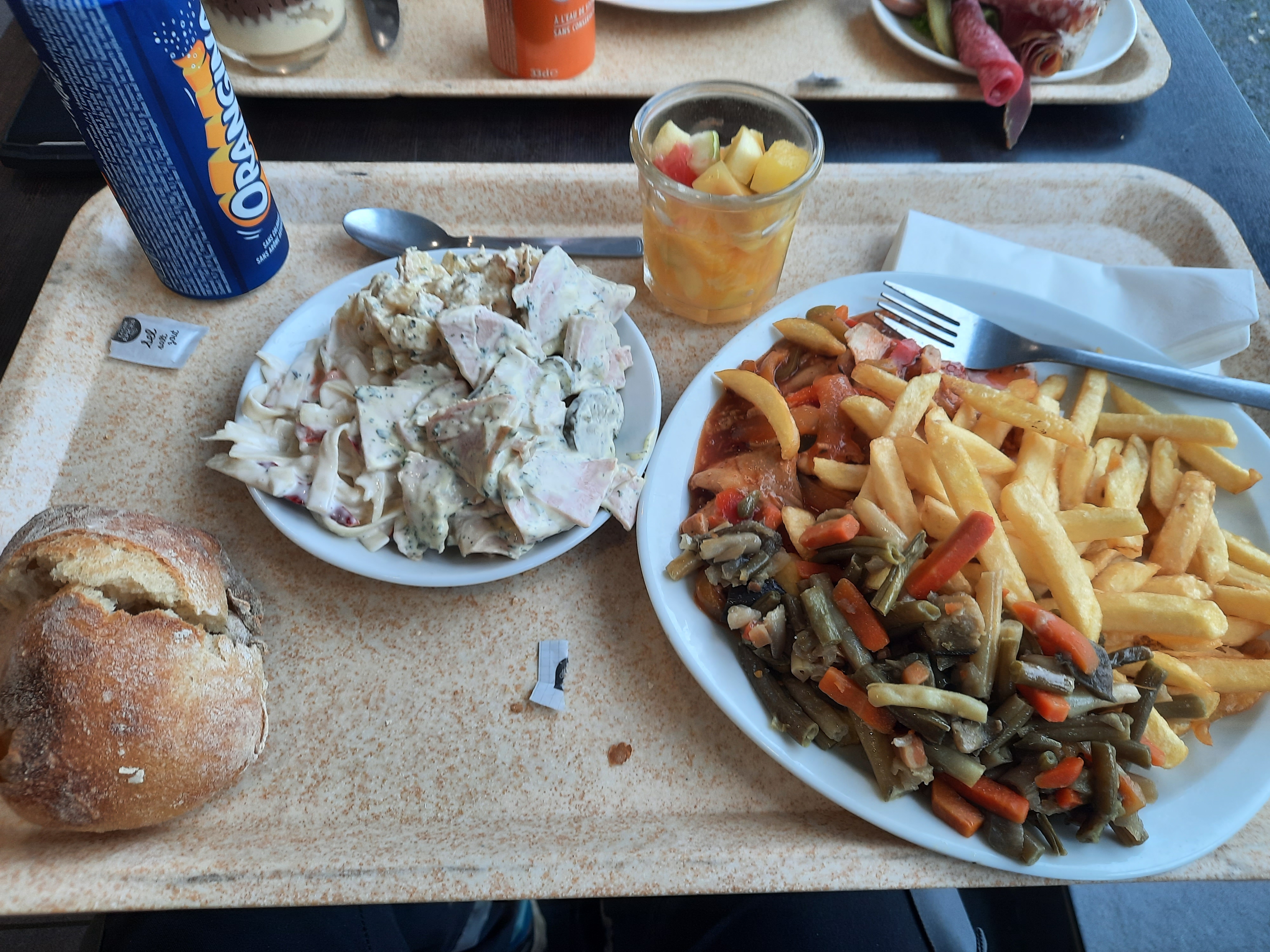 Je suis passé manger avec un collègue de travail. Mon repas était constitué d'un steak haché qui pour ma part semblait bon, on y retrouvait l'aspect et le goût du bœuf, cependant la sauce au poivre avait une consistance un peu trop liquide et manquant de goût de poivre (cet aspect est subjectif) pouvant penser qu'il s'agit d'une sauce déshydratée ou coupé à l'eau, cette dernière m'a également donner des douleurs au ventre pendant l'après-midi, je pense que cette sauce serait à revoir. De plus le riz que j'avais pris manquait de cuisson, il y avait un aspect de riz précuit. Je peux tout de même revenir sur le prix qui peut expliquer la qualité gustative : moins de 6€. Je dirais que nous sommes sur un rapport qualité prix assez correct. Un autre plus de cette cafétéria serait son personnel qui est sympathique et accueillant.