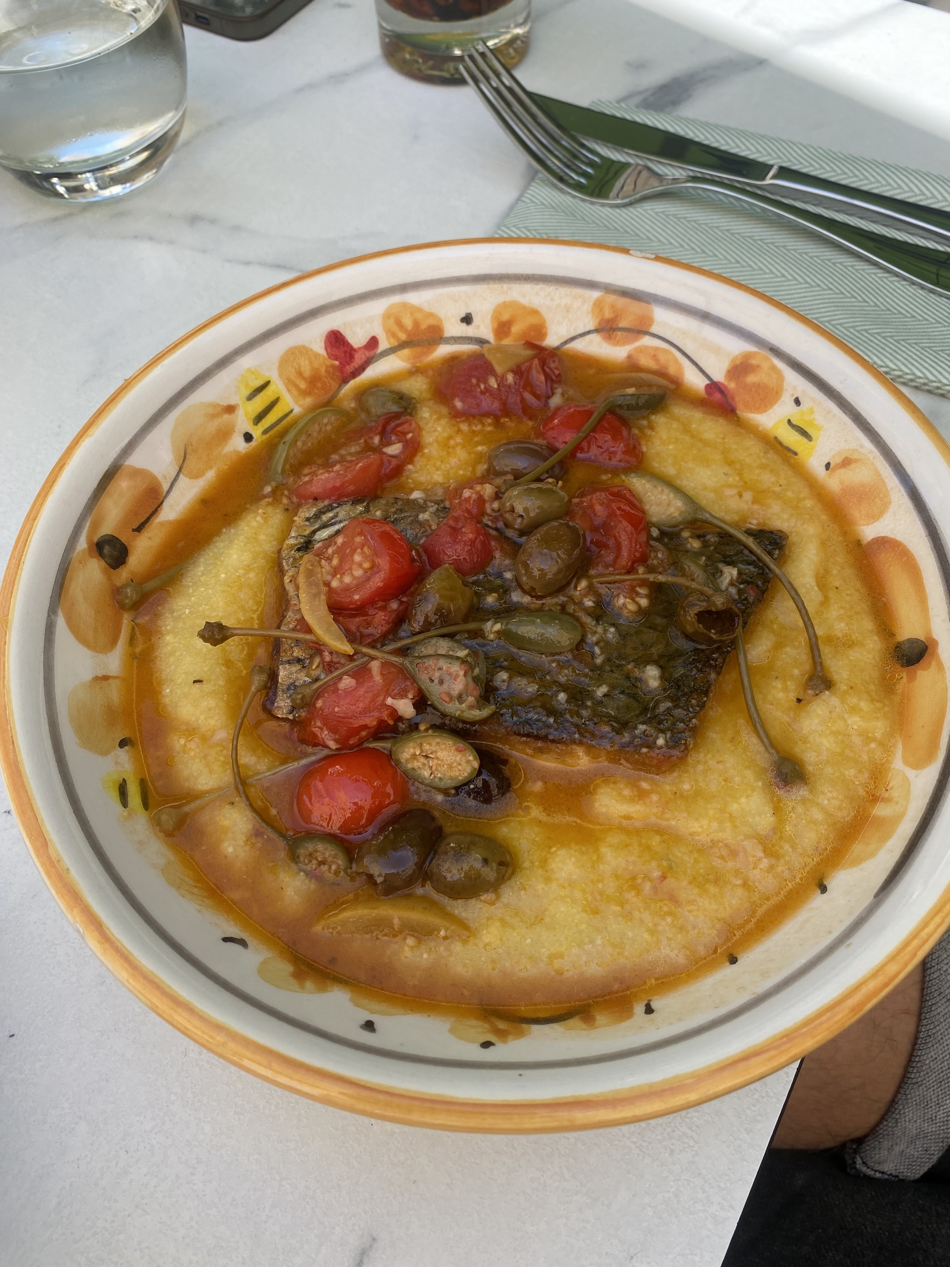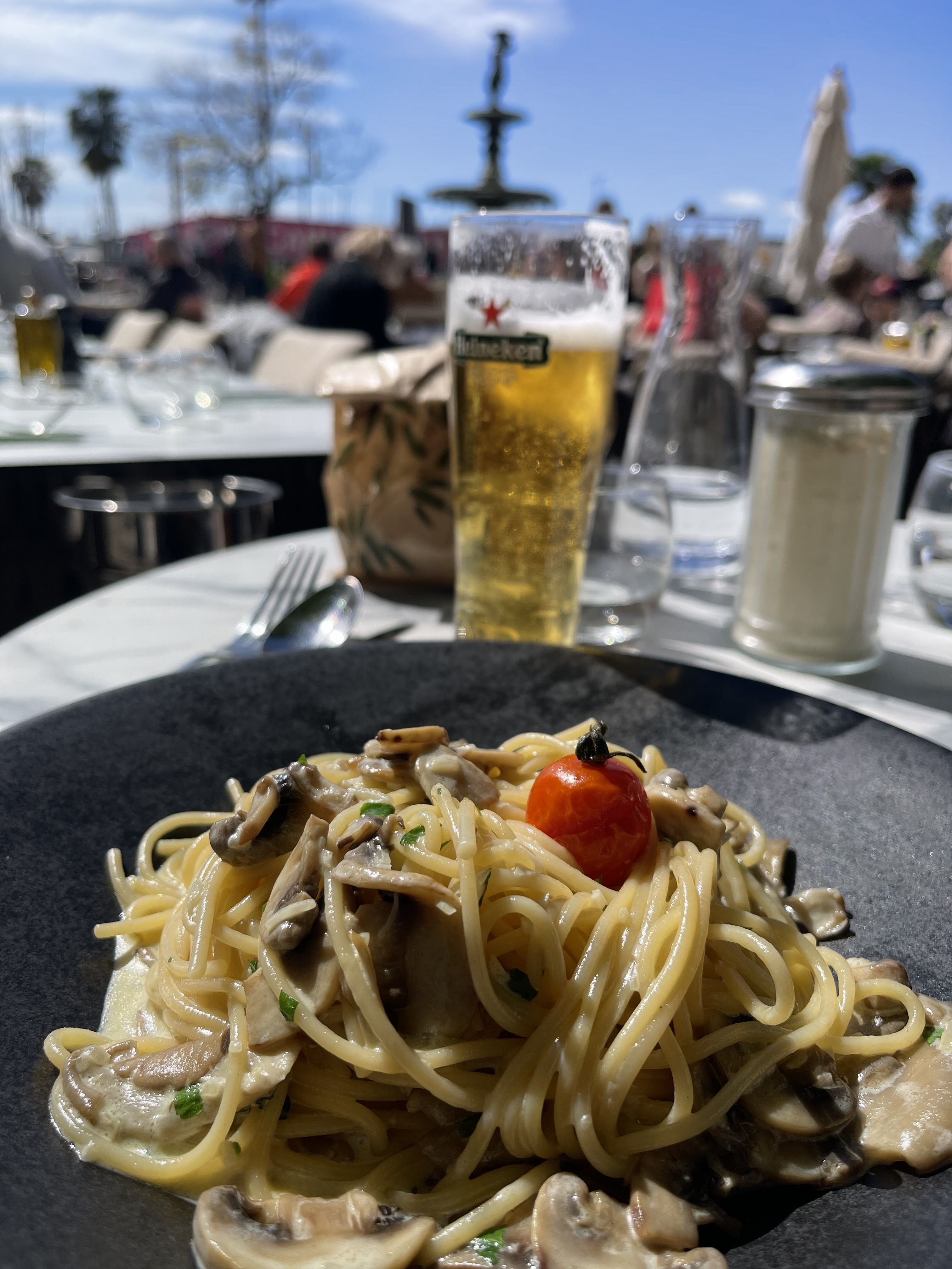 En très gros progrès côté cuisine : la salade fraîcheur est un modèle du genre. Les pizzas sont nettement meilleures qu’avant. Attention toutefois à la napoletana avec des ingrédients trop salés. En revanche la pizza au parme est délicieuse. L’emplacement est top, en plein soleil face à la fontaine et sans voitures sous le nez.