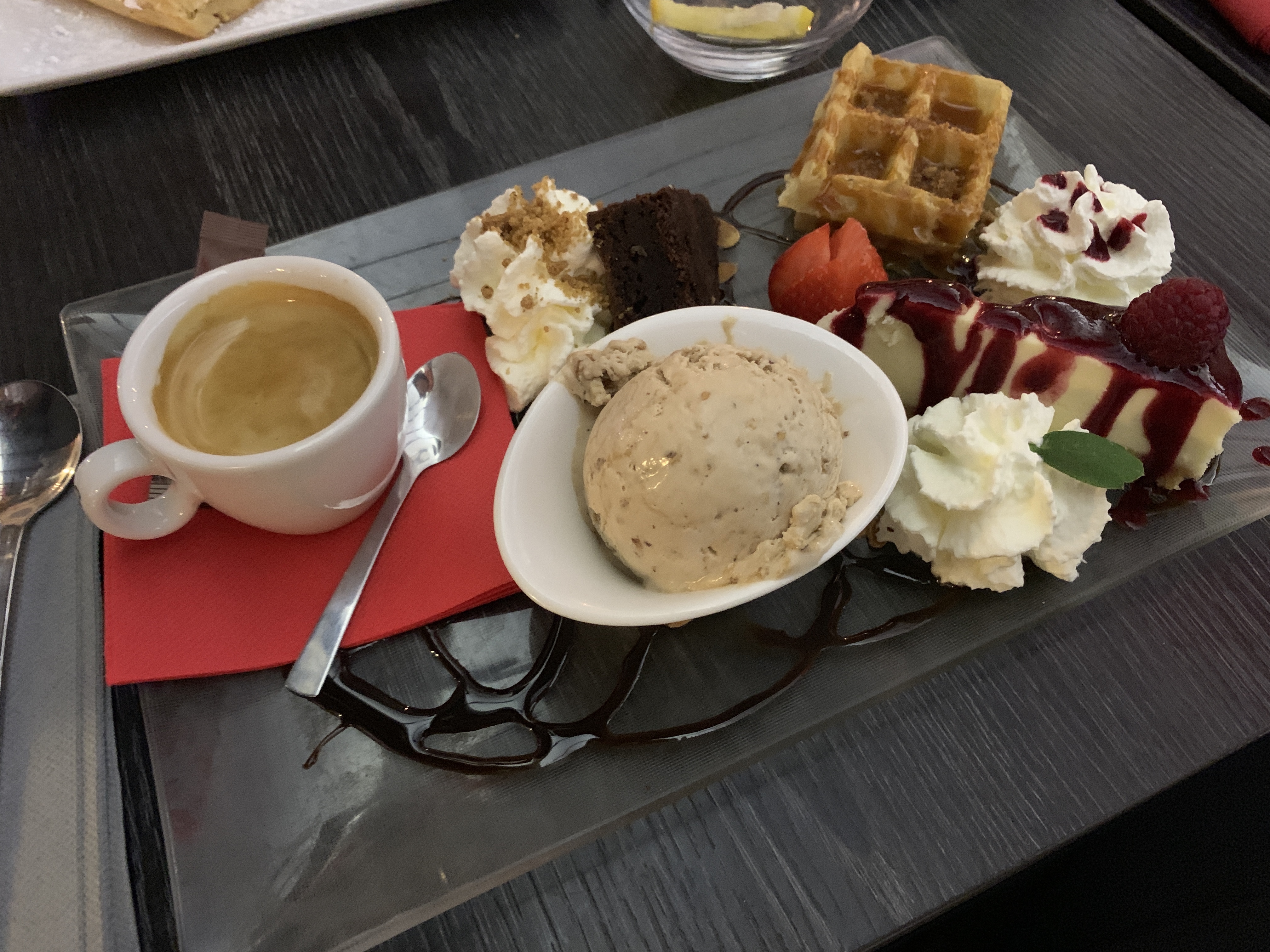 Tout était regroupé à cet endroit précis ! TOP l'emplacement, nous avions besoin de ce SOLEIL. 🌞 Merci à la serveuse qui a su nous servir en temps et en heure compte tenu de notre départ.