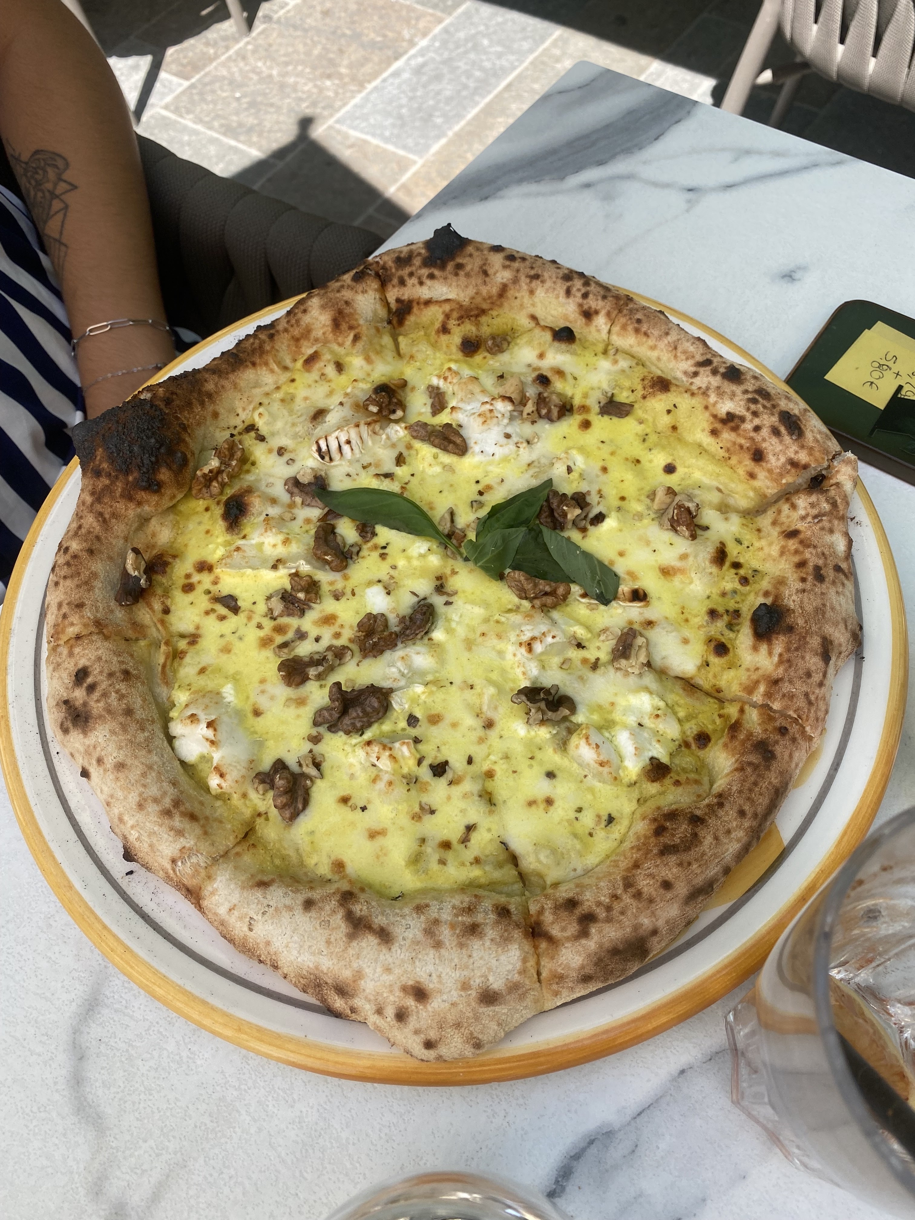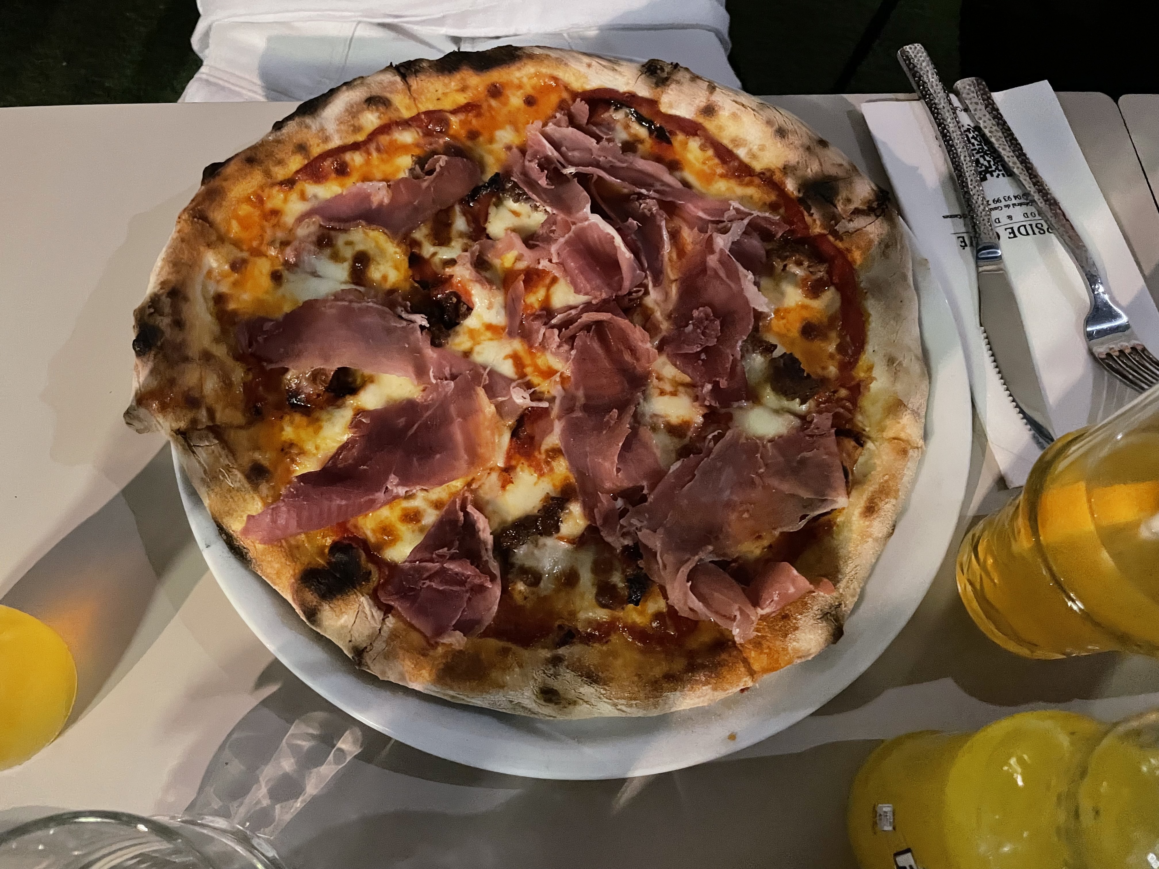 Malgré un parasol tombé à nos côtés le personnel a tout de suite réagis. Pizza très bonne et personnel souriant.