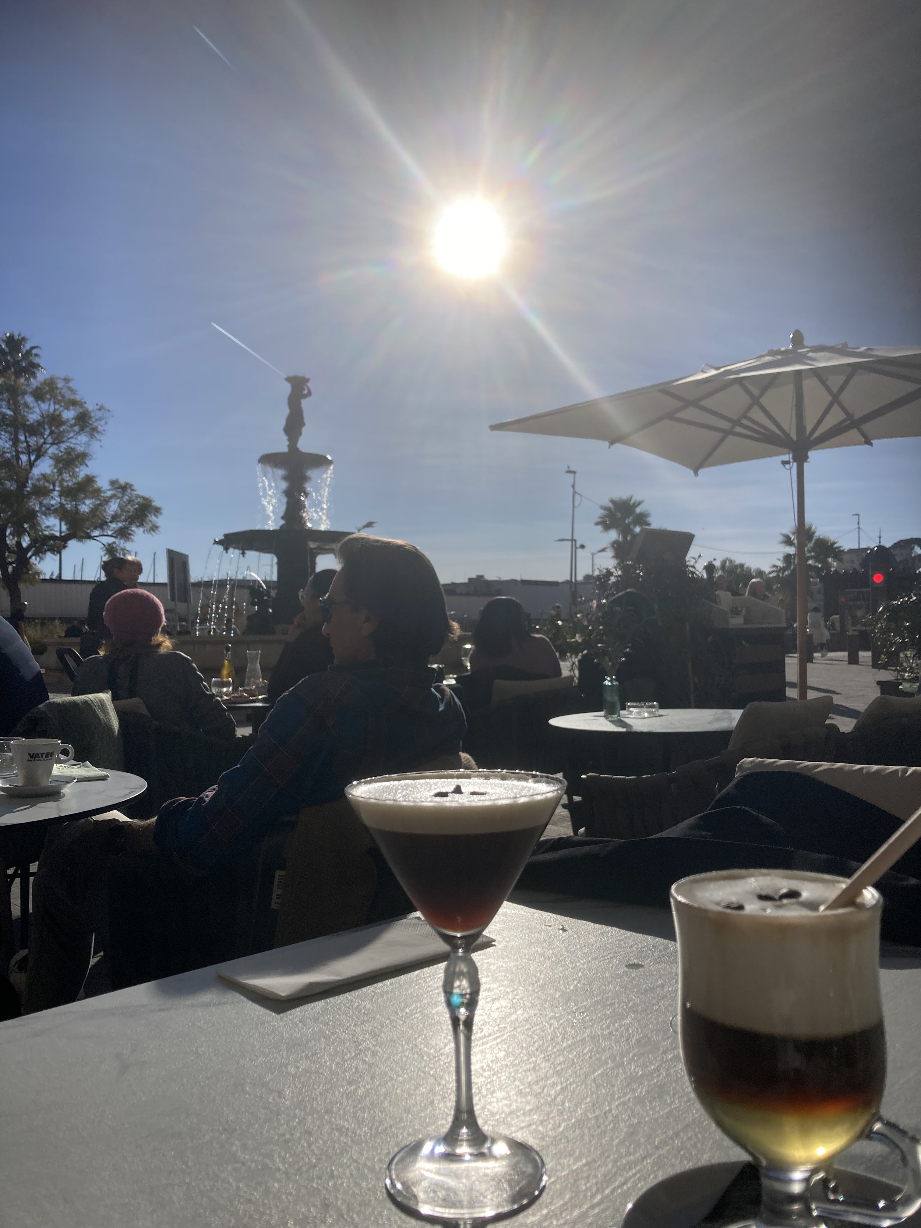 Je ne vous conseille vraiment pas cet endroit visité en petit déjeuner et déjeuner. J'y suis allé plusieurs fois afin de livrer un avis objectif. Il est vrai que la fontaine située en face est propice à la détente mais cela est rapidement gâché d'une manière récurrente : La cuisine est vraiment banale que ce soit en qualité et avec des petites quantités. Le service quant à lui est médiocre et ça ne rend pas service à Cannes. 0 attention, 0 sourire, 0 pointé ! Nous, les clients, nous ne sommes pas que des portes-monnaies. Bientôt uniquement les touristes iront là et encore. Le sens de commerce est déplorable. Vous aurez beau dépenser des centaines d'euros en une ou plusieurs fois : aucun café ne vous sera offert ici ! Cet établissement doit sérieusement revoir son accueil, changer son personnel froid et robotisé, que ce soit au petit matin ou à un autre moment. C'est le triste constat que je dresse qui ressemble malheureusement à une partie de cette société en perte de vitesse et de valeurs. ...Attention le café Zora à côté semble être géré par les mêmes. A vérifier.