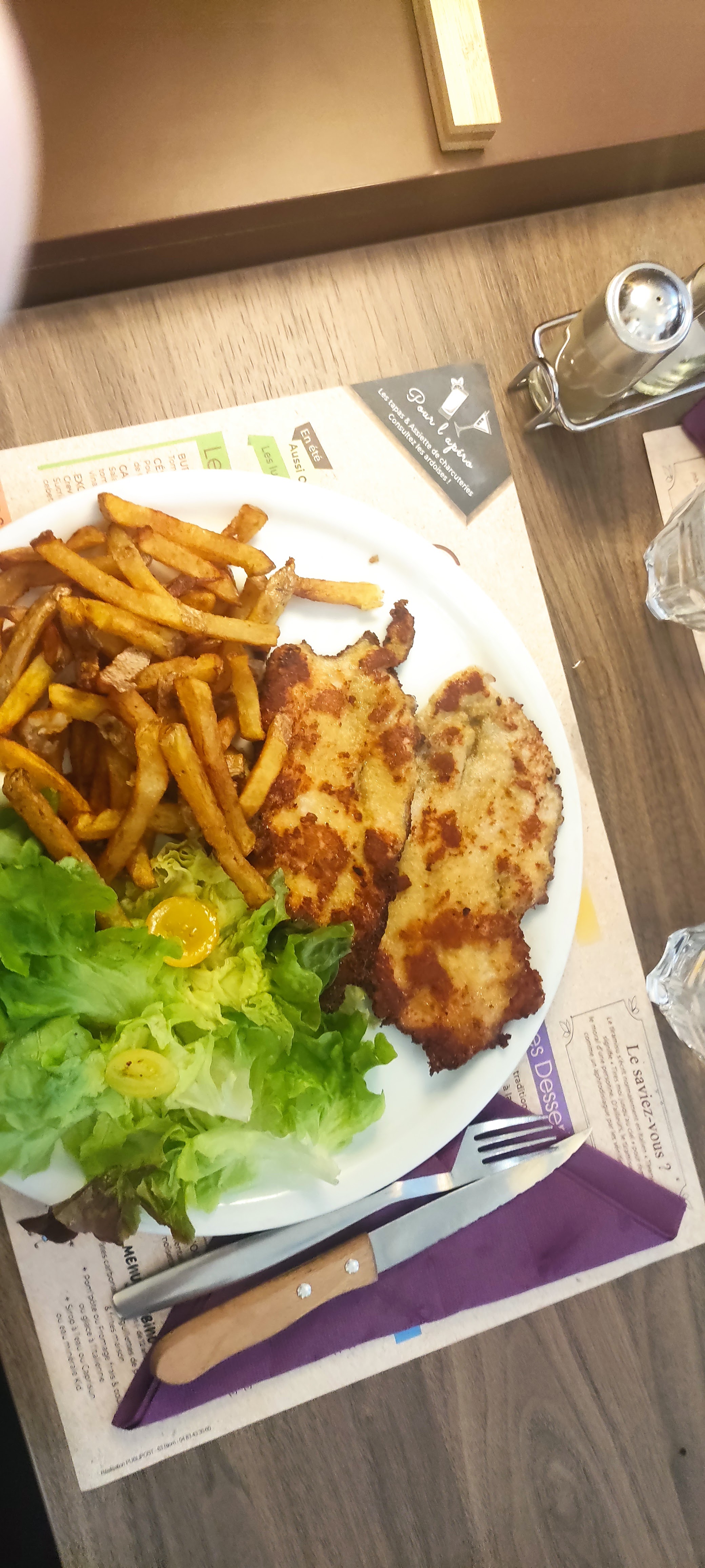 Attirés par le menu du jour (Bavette/frittes maison/salade) nous sommes allés dans cet établissement. 1 - il faisait froid et le restaurant est bruyant. 2 - très très vite servi comme pour dire mangez, payez et cassez vous. 3 - la viande avait les traces et le goût du grill. Les frittes (très peu) étaient quasi froides et la salade juste pour faire jolie dans l'assiette. Nous n'y retournerons pas. Ah ! Oui les toilettes sont propres mais sentent mauvais. Bon courage
