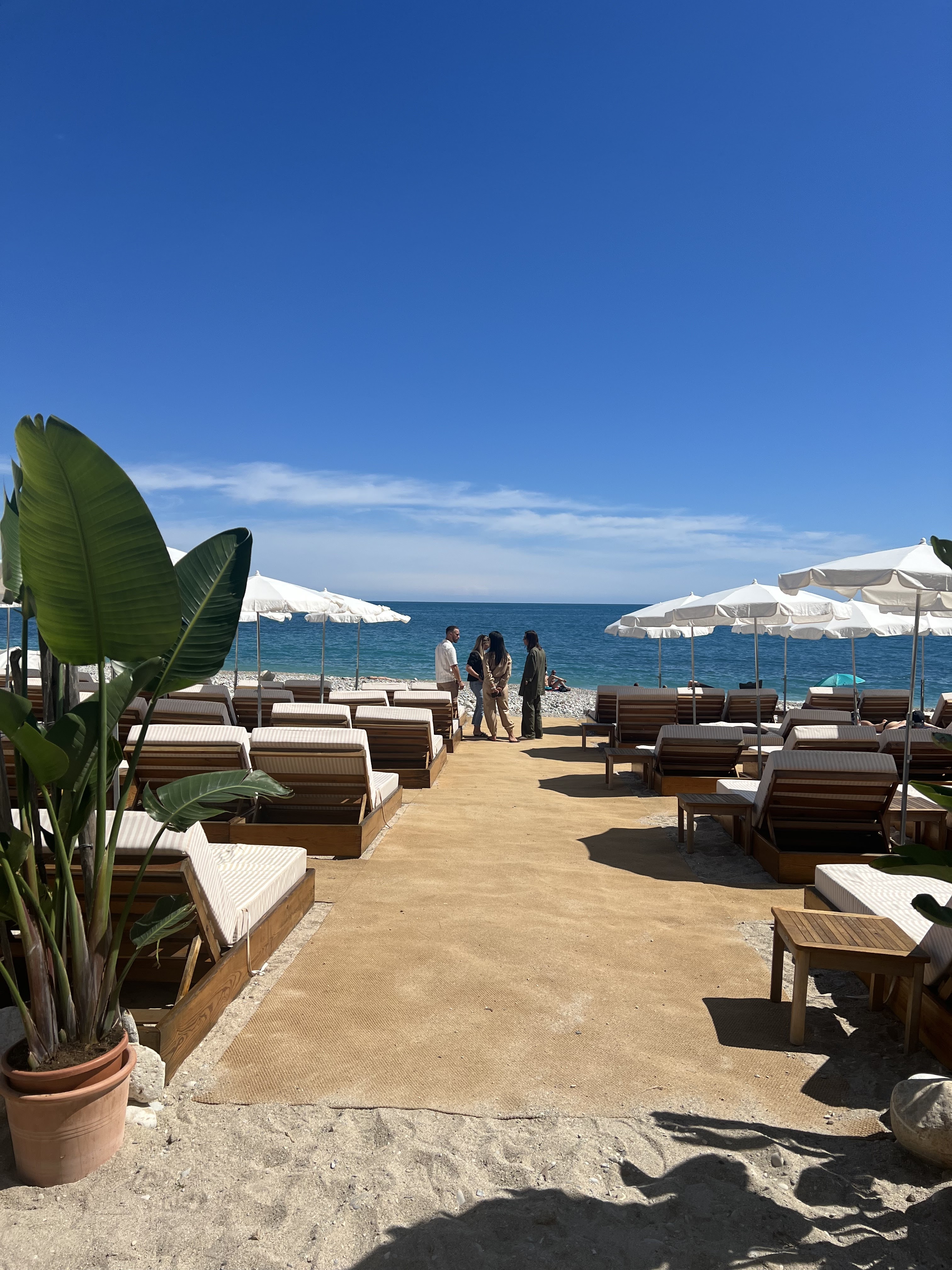 Je ne peux pas assez féliciter cet endroit. Nous avons marché depuis Menton le long du sentier côtier et sommes descendus pour trouver cette élégante oasis. Il est parfaitement situé sur la plage avec de belles vues et ambiance. C'est le genre d'endroit un peu cher et haut de gamme avec des chaises de plage privées, mais tout le personnel était accueillant et sympathique et la vue et l'atmosphère en valaient la peine. Nous avons dégusté de délicieuses salades, sandwichs et boissons. C'était la mi-juin, un jour de semaine et il n'y avait pas beaucoup de monde. Ils nous ont même donné des verres de glace à la limoncella gratuits pour terminer le repas. Pour nous, les « Yankees », c’était l’expérience emblématique de la Côte d’Azur.