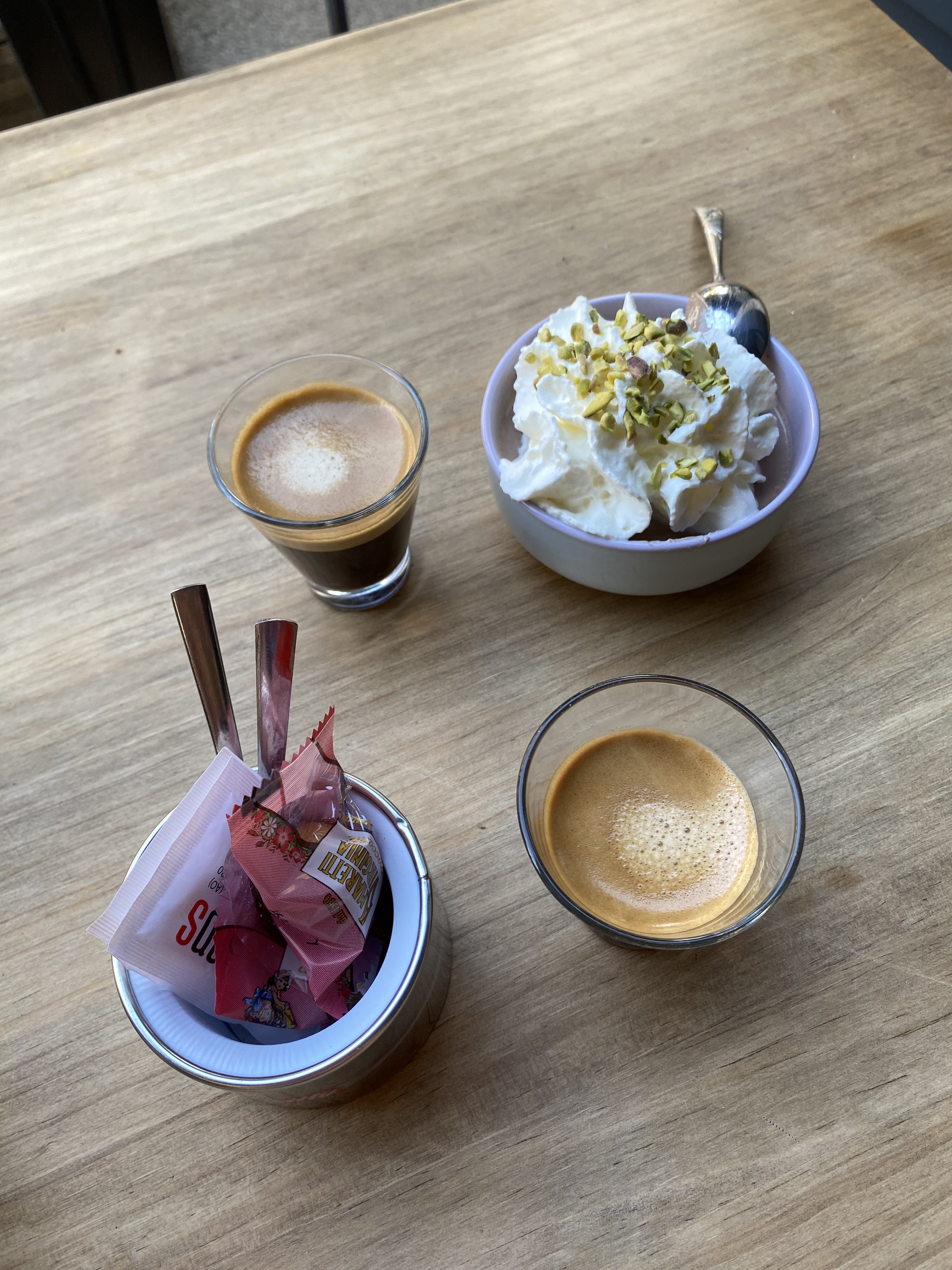 Un sans faute ! Tout commence par une odeur de sauce tomate incroyable qui nous donne envie de nous arrêter…. Puis la vue des pizzas finit de nous convaincre de demander une table. Les pizzas sont succulentes, j’ai même mangé la croute alors que d’habitude je la laisse. Les ingrédients sont de qualité, j’ai pris la pizza san daniele avec le jambon coupé finement dont le gras fond sur la pâte chaude … hmmmmm et ce filet de balsamique qui rehausse le tout ! Ça faisait bien longtemps que je n’avais pas mangé de si bonnes pizzas !!! (Et en plus ils ont du café illy !)