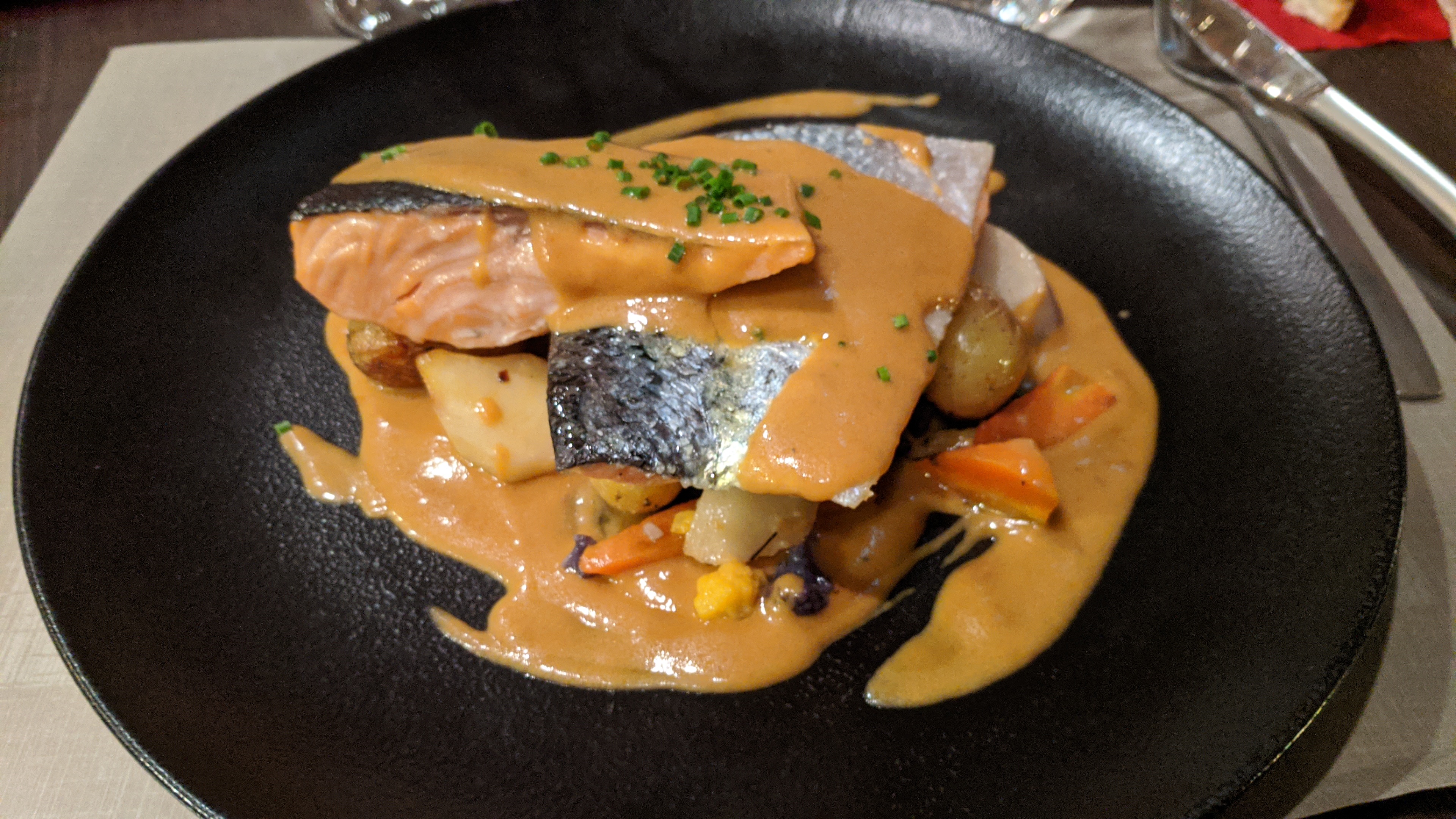 Restaurant très sympa. On peut s'y rendre entre amis ou en amoureux Les plats donnent tous envie, tout comme leur accompagnement! Pour chaque plat, c'est un accompagnement de choix, des produits locaux, et une sauce bien spécifique. Et la propriétaire, si elle vous fait la lecture de la carte pour vous aider à choisir, sait rendre chaque plat encore plus attractif. Je pense revenir pour goûter les autres plats dès que possible!