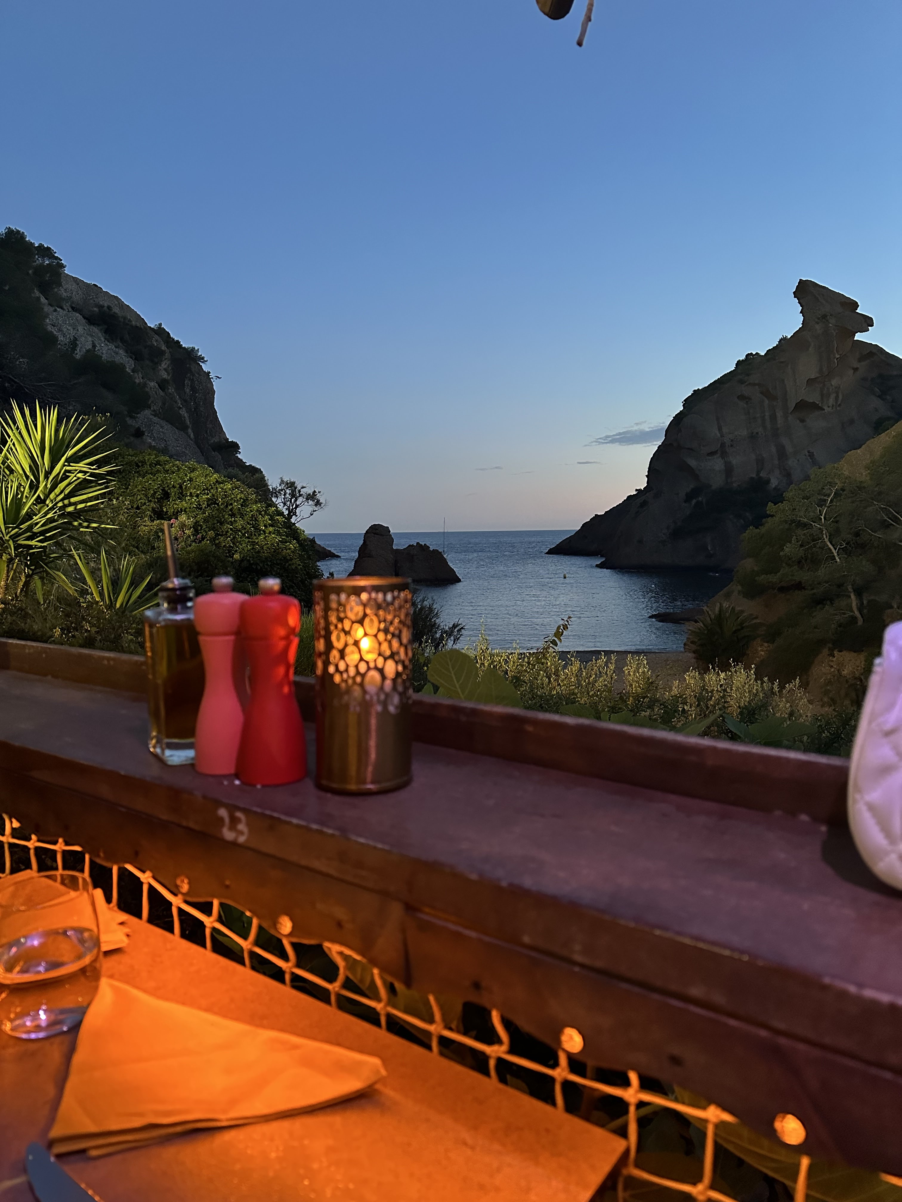 Réservez vite !! Nous avons eu de la chance avec mon conjoint de pouvoir y manger sans réservation, c'était excellent ! De l'apéritif au café, nous nous sommes régalé. Le cadre est superbe et la vue sur les calanques magnifique !! Nous avons hâte d'y retourner l'été prochain. Merci à la serveuse pour ce service au top !