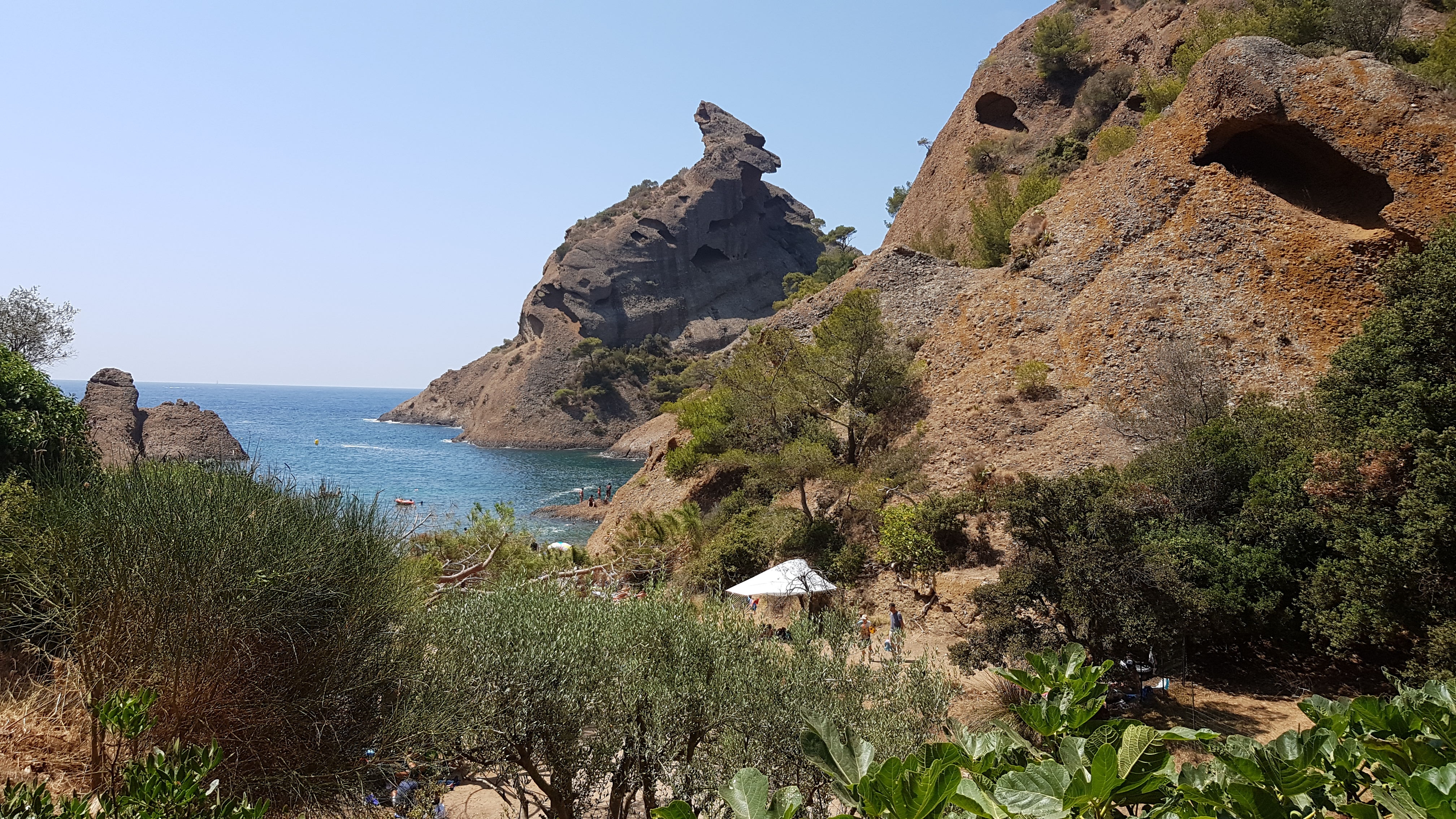 Restaurant avec une vue imprenable sur la calanque de Figuerolles, très pratique pour déjeuner lorsqu'on n'a pas pris de pique-nique pour manger sur la plage, bon choix de plats et d'entrées à base de poisson et/ou de viande, goûtus, même si quand même relativement chers pour la quantité servie dans l'assiette. Autre bémol : un des serveurs est très antipathique, s'en va dès que l'on cherche à prendre commande et n'accorde qu'une seconde à ses clients, étant déjà reparti si l'on veut rajouter qqch, très peu agréable ou souriant contrairement à son collègue plus jeune.