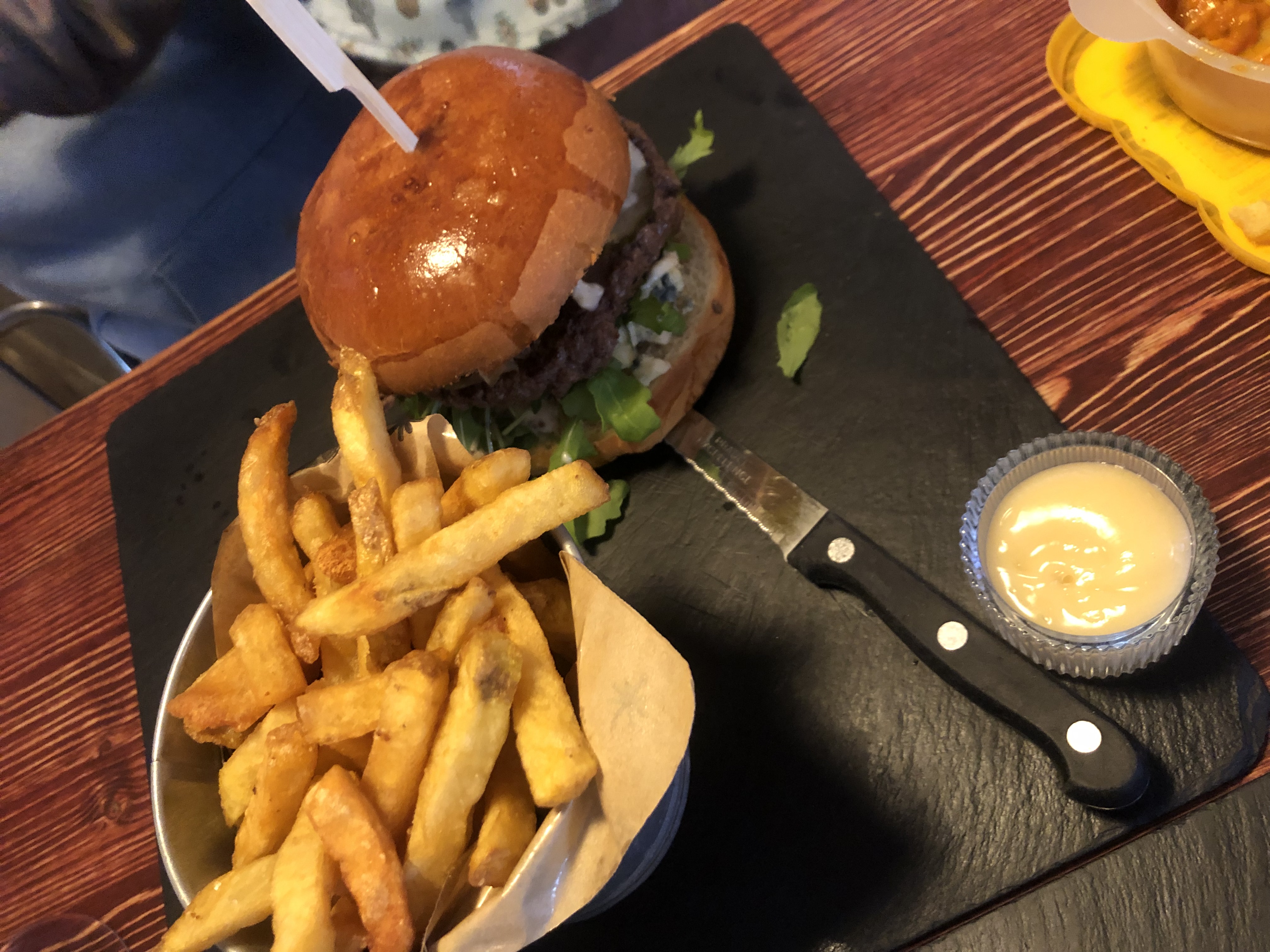 Nous avions très envie d’un burger donc nous finissons ici. L’expérience est sympathique, on choisit ce que l’on souhaite mettre dans le burger. En revanche je demande saignant et il arrive vraiment cuit, ils ont été compréhensifs et m’en ont donc refait un. Cela dit, il était vraiment sans plus, le pain brioché n’est pas dingue, les aubergines n’ont aucun intérêt dans le burger, les pickles sont fades. C’est dommage il y a de quoi faire un truc vraiment sympa !