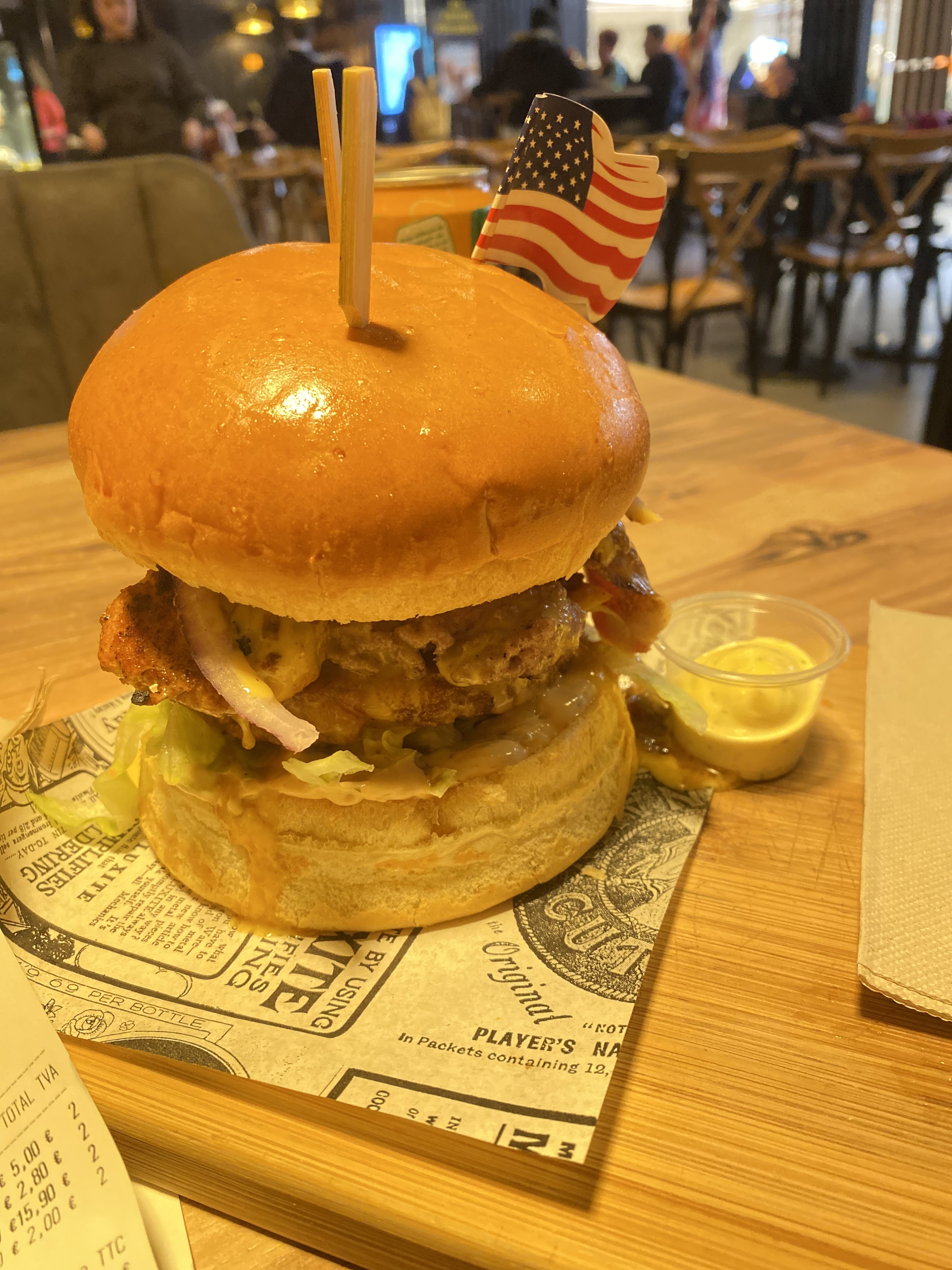 Des burgers comme au États-Unis fait maison un vrai delice je dirait même les Meilleurs de saint-Étienne. Le restaurant est chaleureux on y est comme chez soit, le service est soigner et les serveurs accueillants. Passons au sucrer les gourmand(es) ne raté surtout pas leurs bubble waffle 😍 c'est d'une douceur 🥰 pour toute les fois ou j'y suis aller je n'ai pas été déçue accueille au top. J'y est fort squatter avec ma pote et vous continuerez a voir nos petite tête quand se sera l'heure de la pause gourmande 😋. MERCI à vous 😉