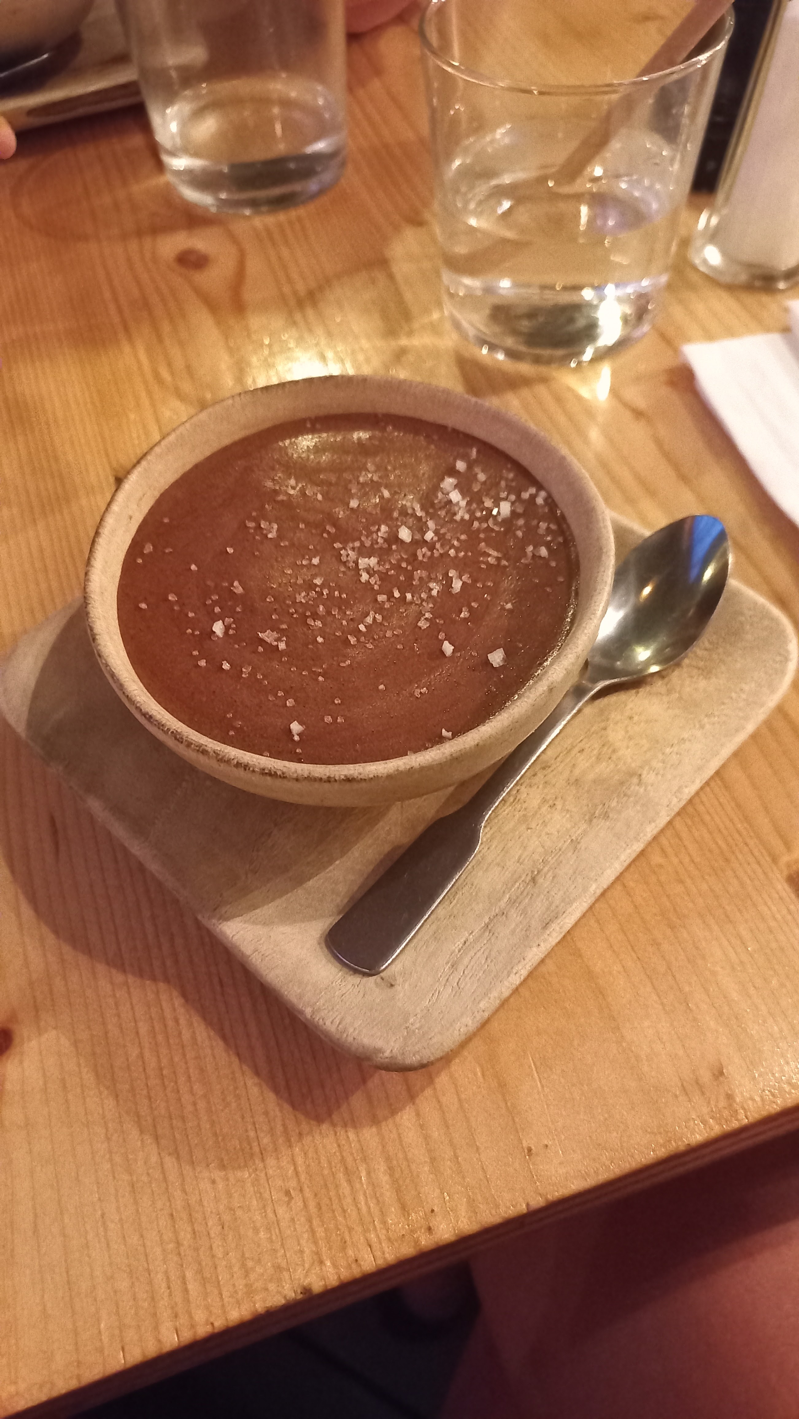 Ça se passait bien jusqu'à qu'on serve un verre de vin suite à une commande d'un ami. Là où c'est fort, c'est qu'il y a un trait sur le verre pour s'assurer que le volume est correct. Finalement, il s'agissait d'une dégustation : demi-demi-verre 🤣🤣 J'ai versé ça dans une cuillère à café, elle n'a pas débordé. La campagne contre l'abus d'alcool fait des ravages... Trêve de plaisanteries, je n'ai pas bien compris comment on en est arrivé là. Sûrement une incompréhension serveur / patron. Par contre, je reconnais que la gestion du gâteau maison emmené pour l'anniversaire était bonne. Le restaurant avait matière à être moins conciliant. La patronne a bien expliqué. Ça me paraît la moindre des choses d'y adhérer. On a passé un bon moment :)