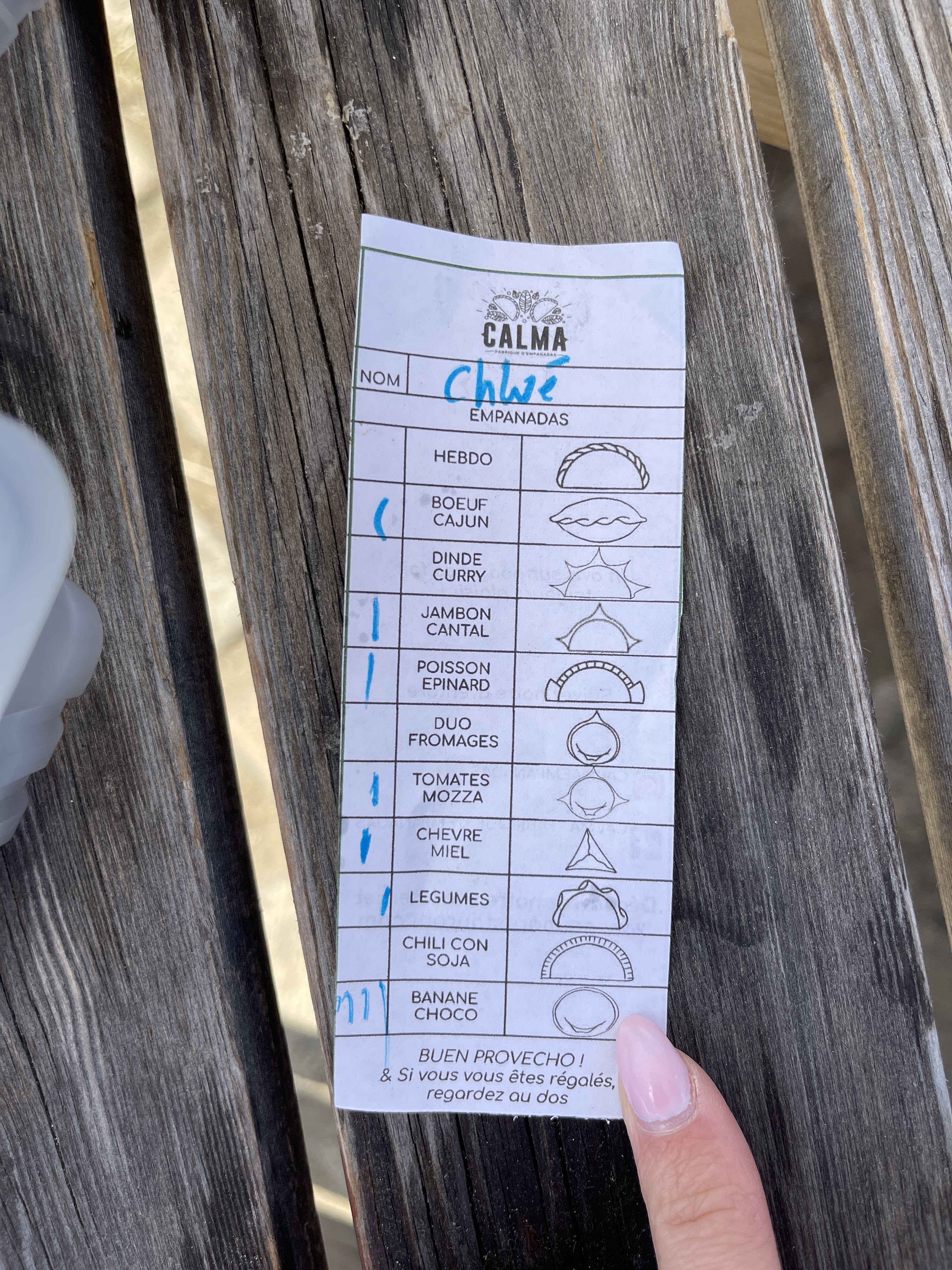 Calma était sous les ponts de mauves le long de la loire. Nous nous sommes laissé tenter par les empanadas au boeuf et au fromage, un vrai délice. Nous avons recommandé 6 de chaque, la personne qui nous a servi était très agréable et souriant. Merci a vous, nous reviendrons.