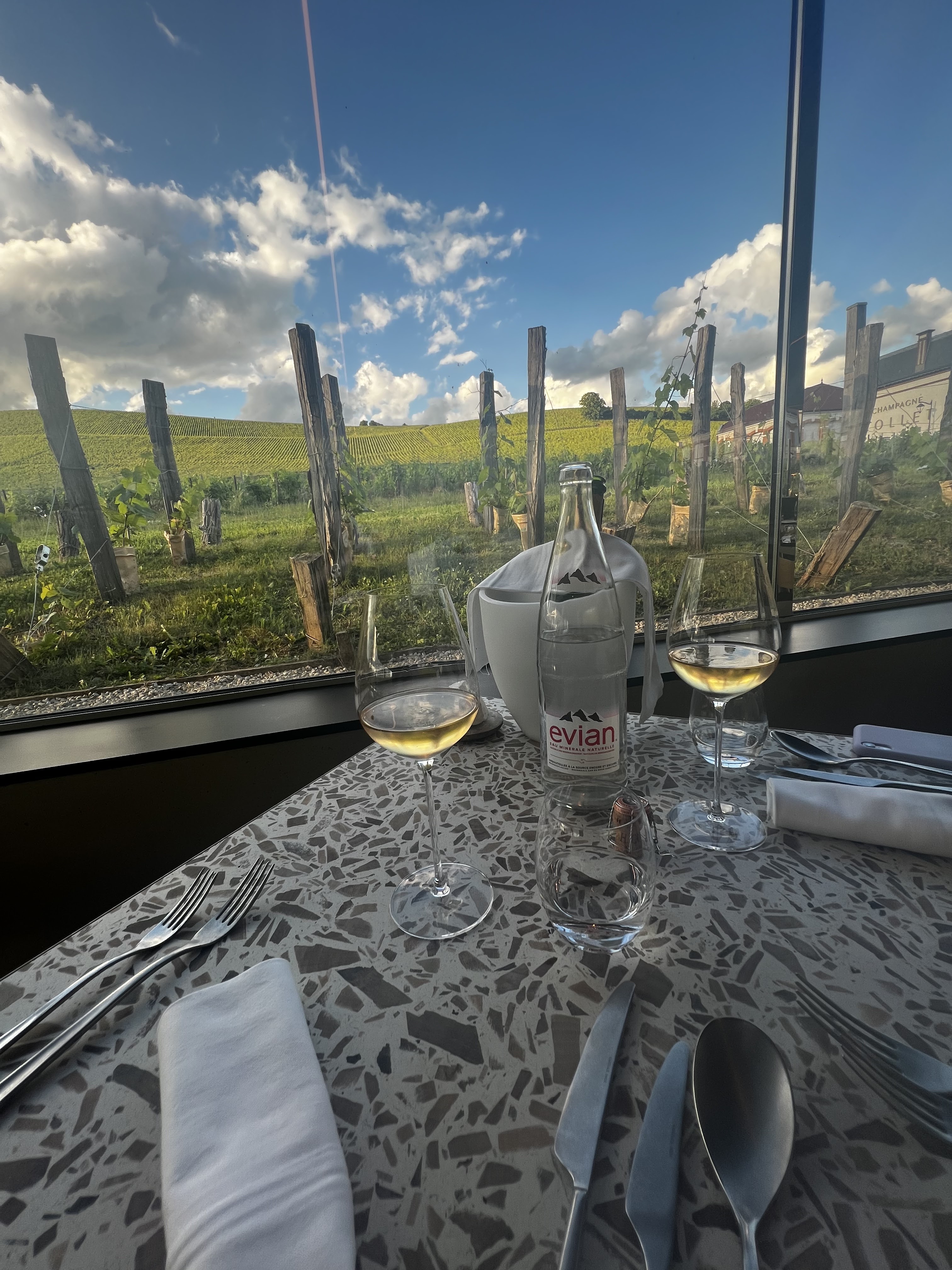 Excellent service, excellent emplacement ! Le personnel était vraiment instructif et connaissait bien le vin, super accueillant, la nourriture était impeccable avec une vue sur les vignobles et le champagne, je ne saurais trop le recommander, merci !