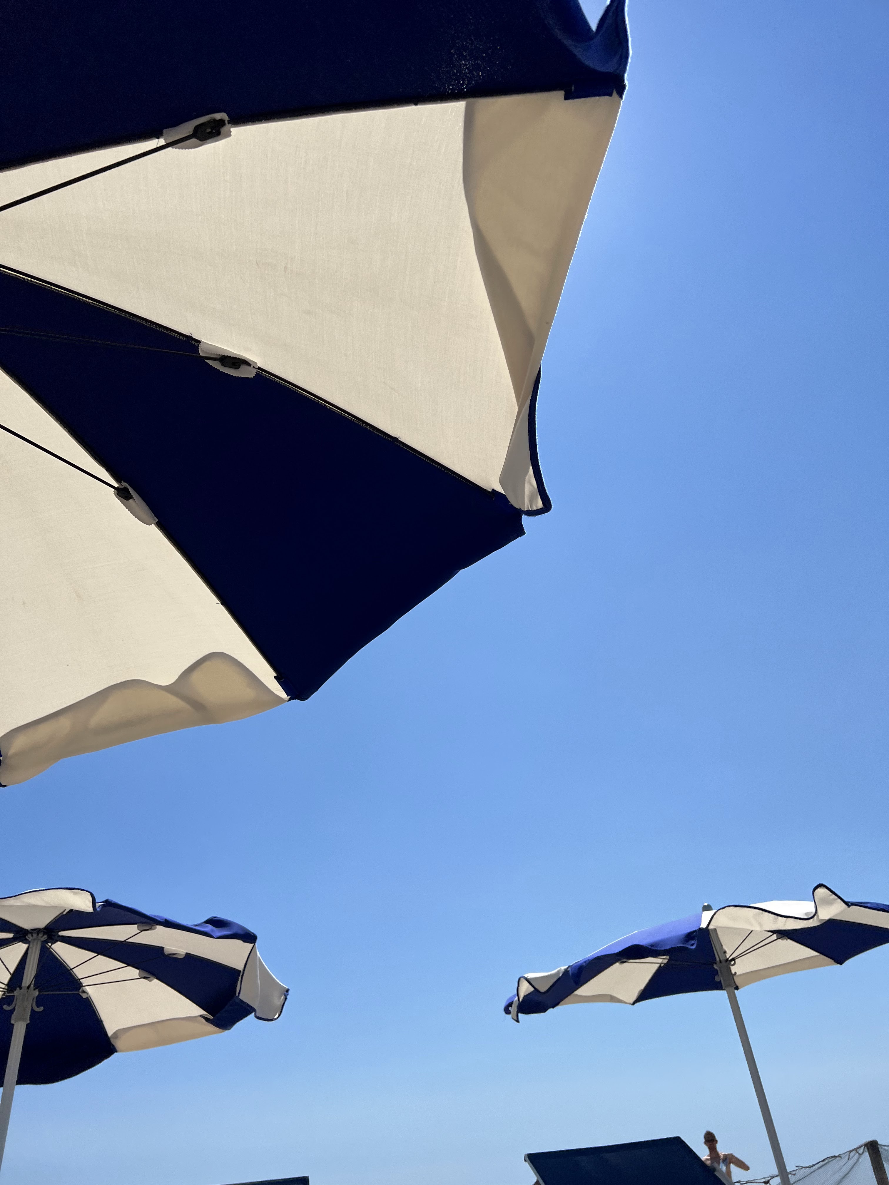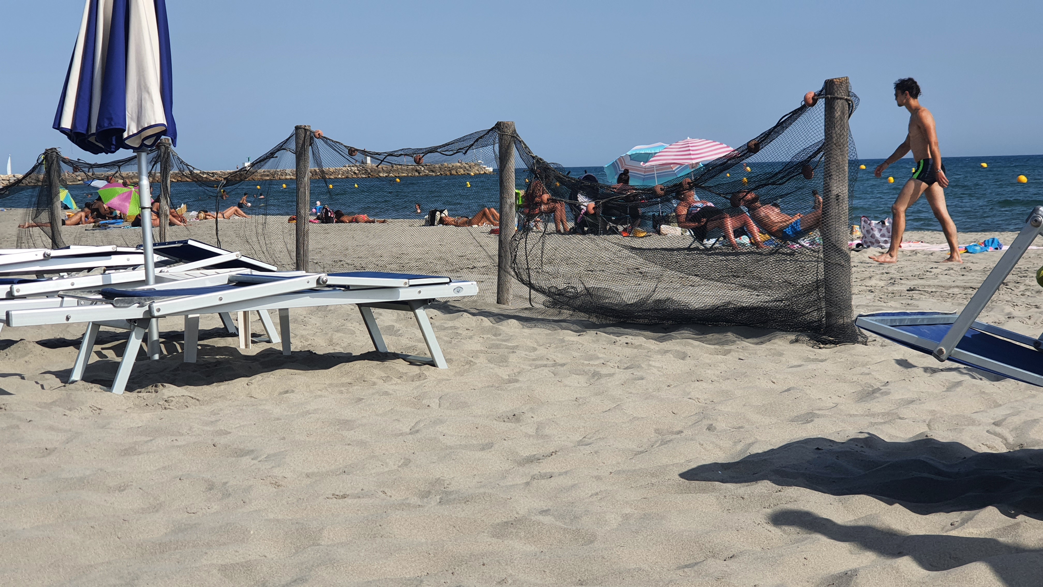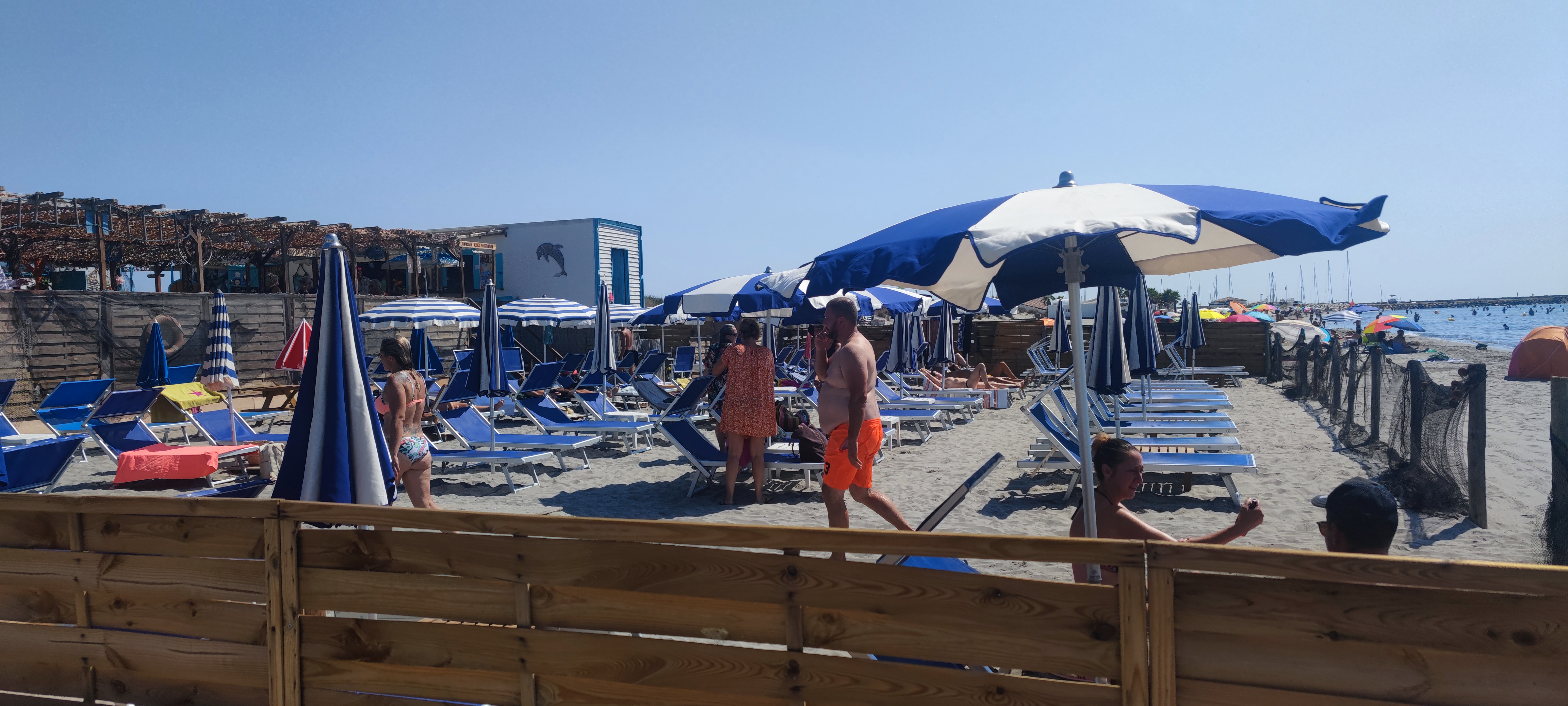 Nous avons choisi cette plage car elle propose des transats à l'italienne typiques de nos plages. Cependant, beaucoup d'entre eux ont des toiles cassées, et on nous a également dit de ne pas accrocher de vêtements sous le parapluie car les lattes (qui étaient complètement rouillées) pourraient se briser. Nous n'avons pas testé la cuisine mais le manque d'amabilité des gérants ne nous a pas séduit.