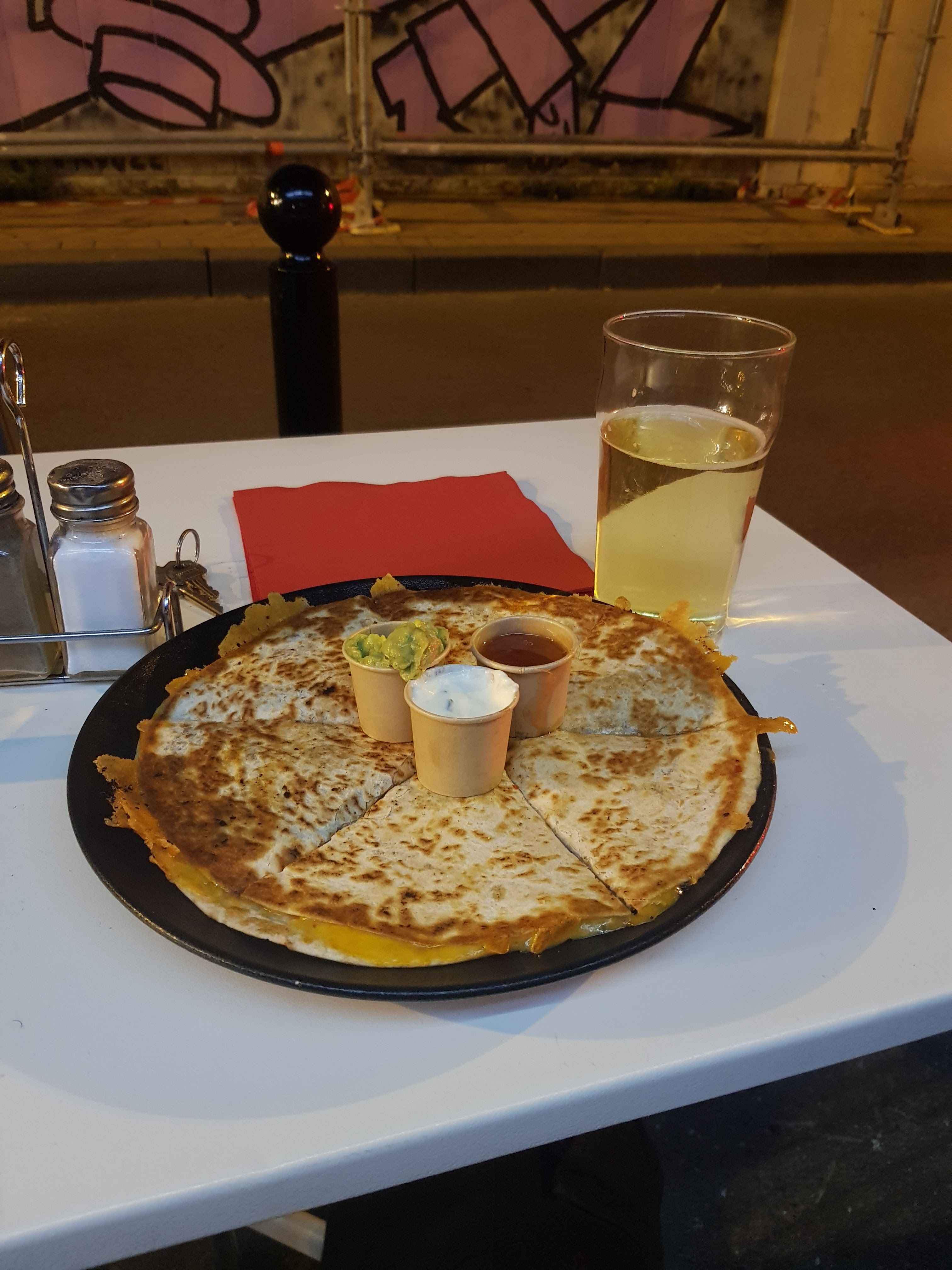 Lieu sympathique dans le cœur des Chartrons. J’ai commandé le Cambridge Burger : charolais steak frais, chèvre, oignons caramélisés. C’était satisfaisant et de bon goût Les quesadillas étaient plus goûteux et fondaient dans ta bouche