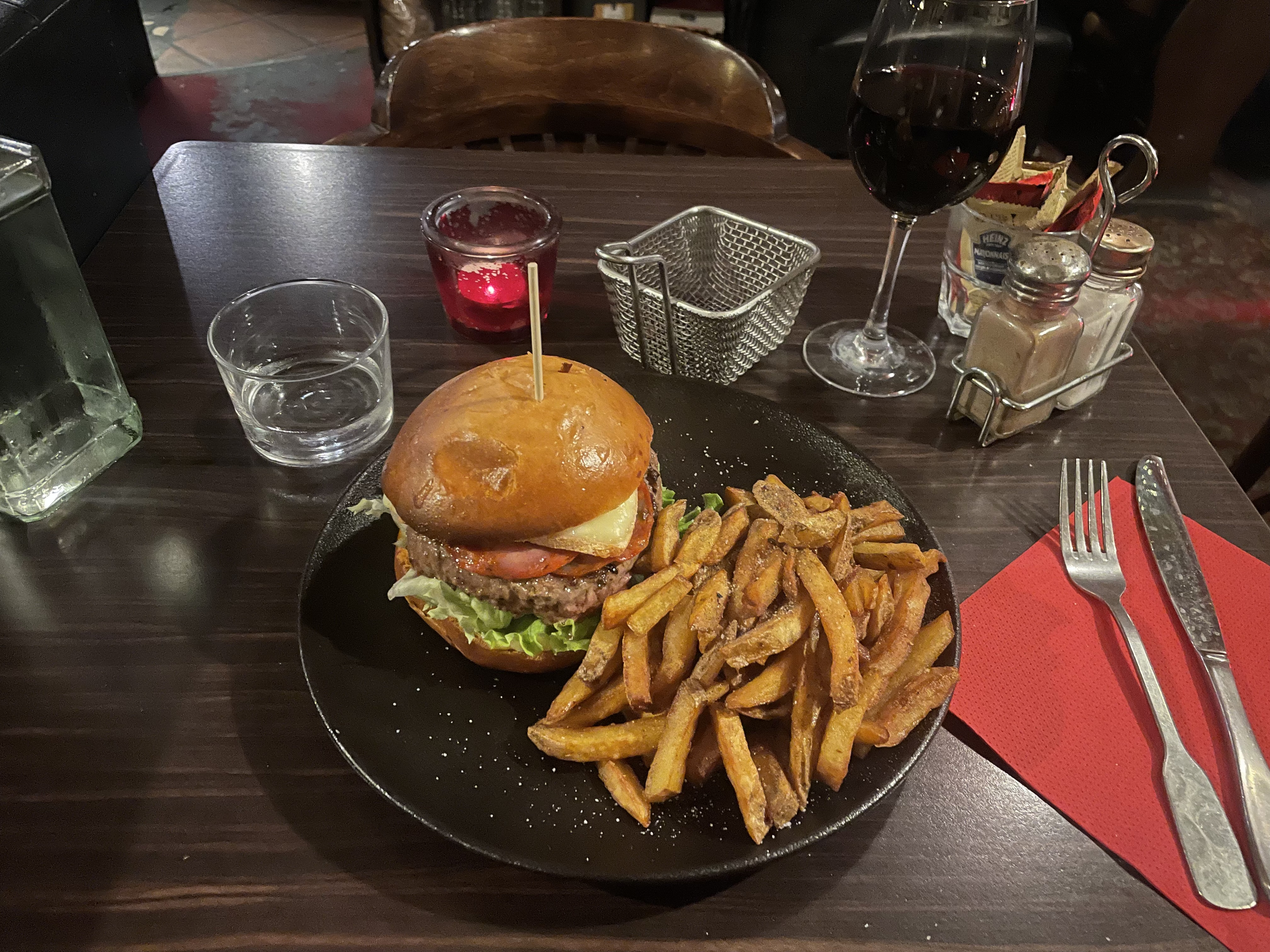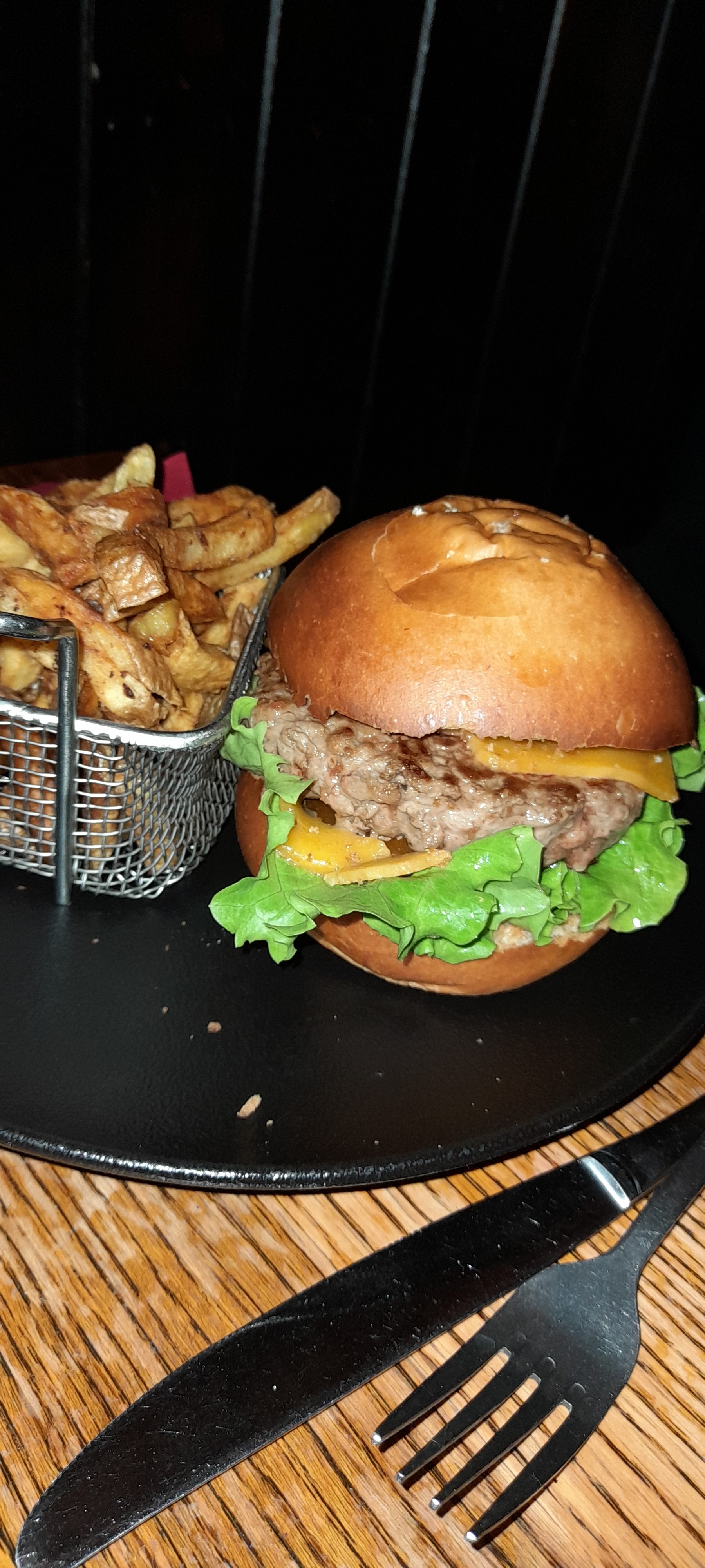 Burger entre le correct et le moyen... pain un poil trop cuit. Steak beaucoup trop cuit...on a donc une semelle de 3 cm d'épaisseur... je viens au Cambridge depuis des années, la cuisine a toujours été en dents de scie, mais globalement bien. Pour mon dernier passage c'était moyen. Dommage !!