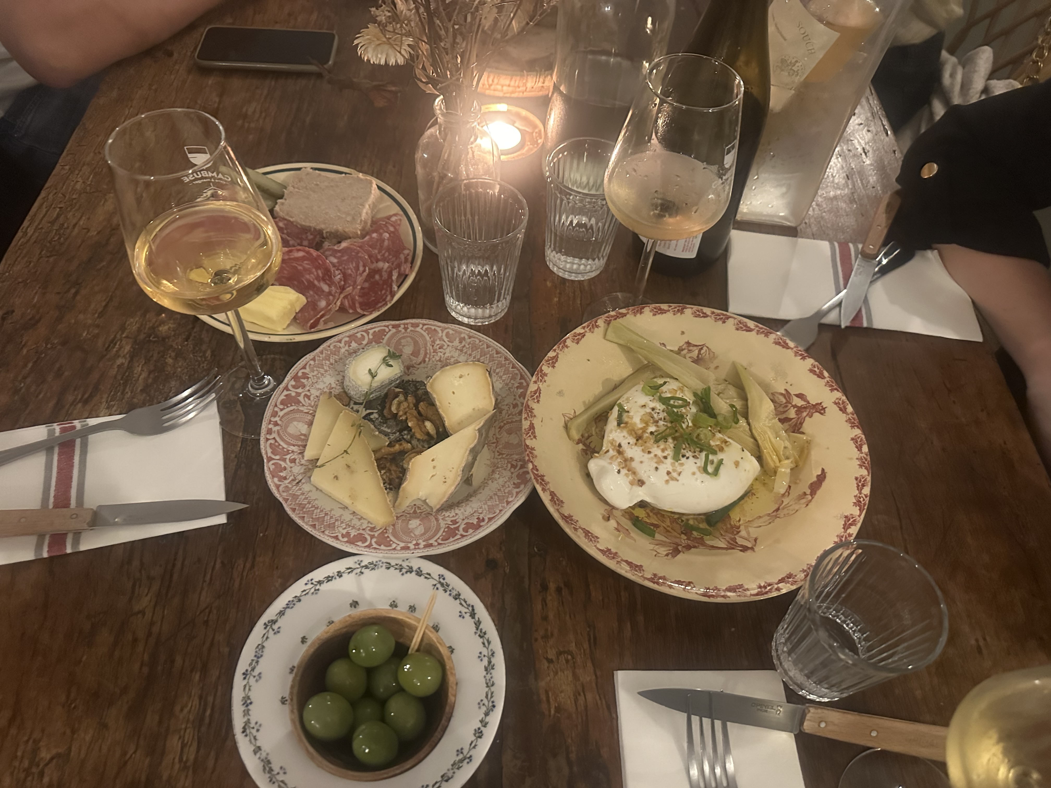 Nous nous sommes arrêtés pour prendre du vin et une planche de viande. J'ai été vraiment impressionné par la qualité de la nourriture. Vous pouvez vraiment goûter qu'ils ont mis beaucoup de soin dans la sélection de leurs vendeurs, chacune des charcuteries et même les pains étaient délicieux et pleins de saveurs. Le vin rouge que nous avons eu (vin de Loire) était également excellent, pour couronner le tout, l'endroit est super mignon et cosy, je le recommanderais sans hésiter.