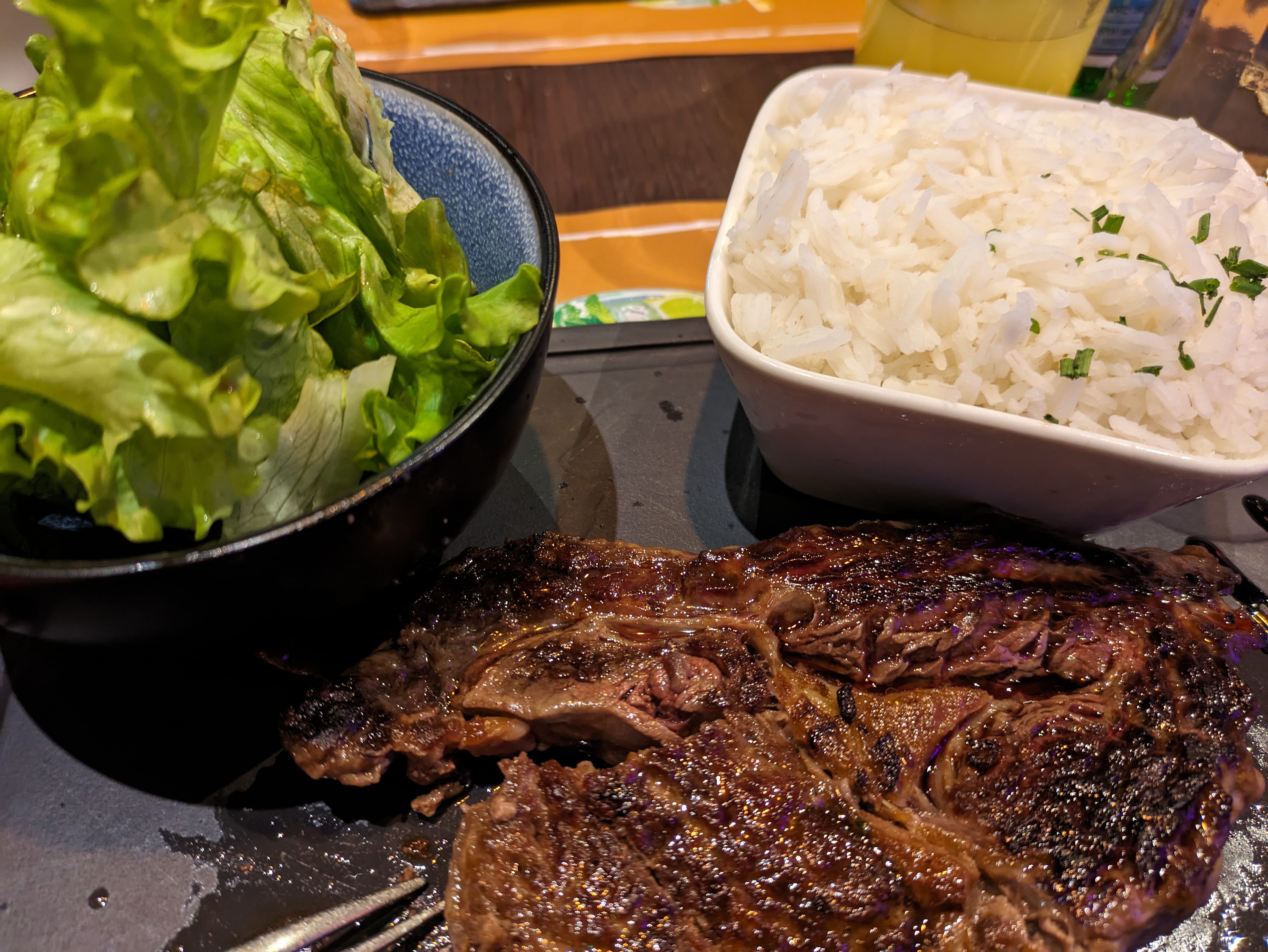 Viande trop cuite voir même carbonisée. Coupe colonel plus de vodka que de glace et en prime du plastique dedans. Noté assez salée 75€ pour deux c'est trop.