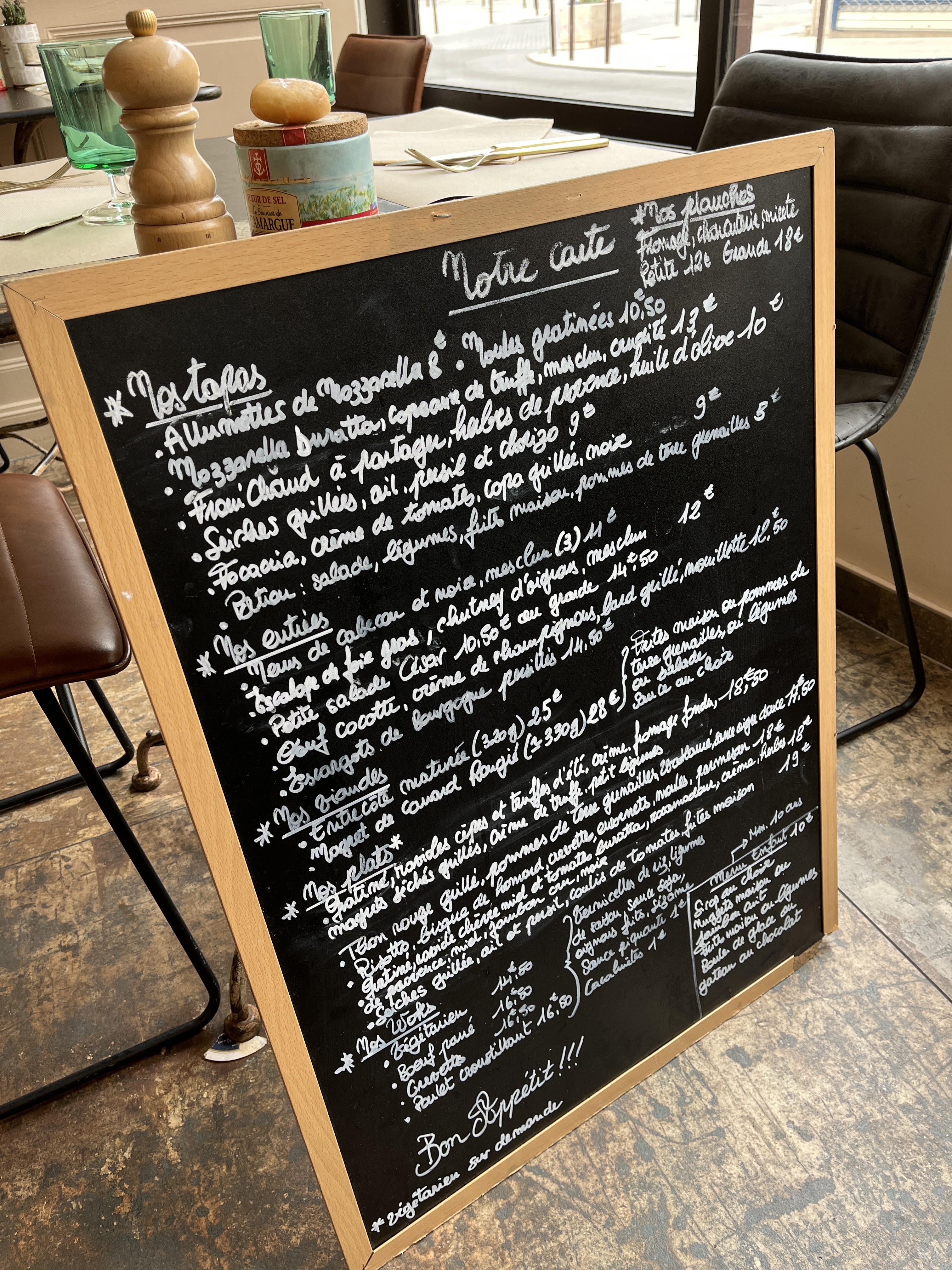 Nous avons passé une excellente soirée. Tout était parfait de l’entrée au dessert. Les assiettes copieuse et délicieuse et joliment présentées. Les chaises étaient confortables. Le serveur était sympathique. Merci au chef de nous avoir régalé😊 S’il y a peut être un petit point négatif c’est la carte sur tableau, pas très pratique. Après en la photographiant et en zoomant avec le portable ça le fait très bien aussi et puis ça permet de moins gaspiller de papier. Bonne continuation.