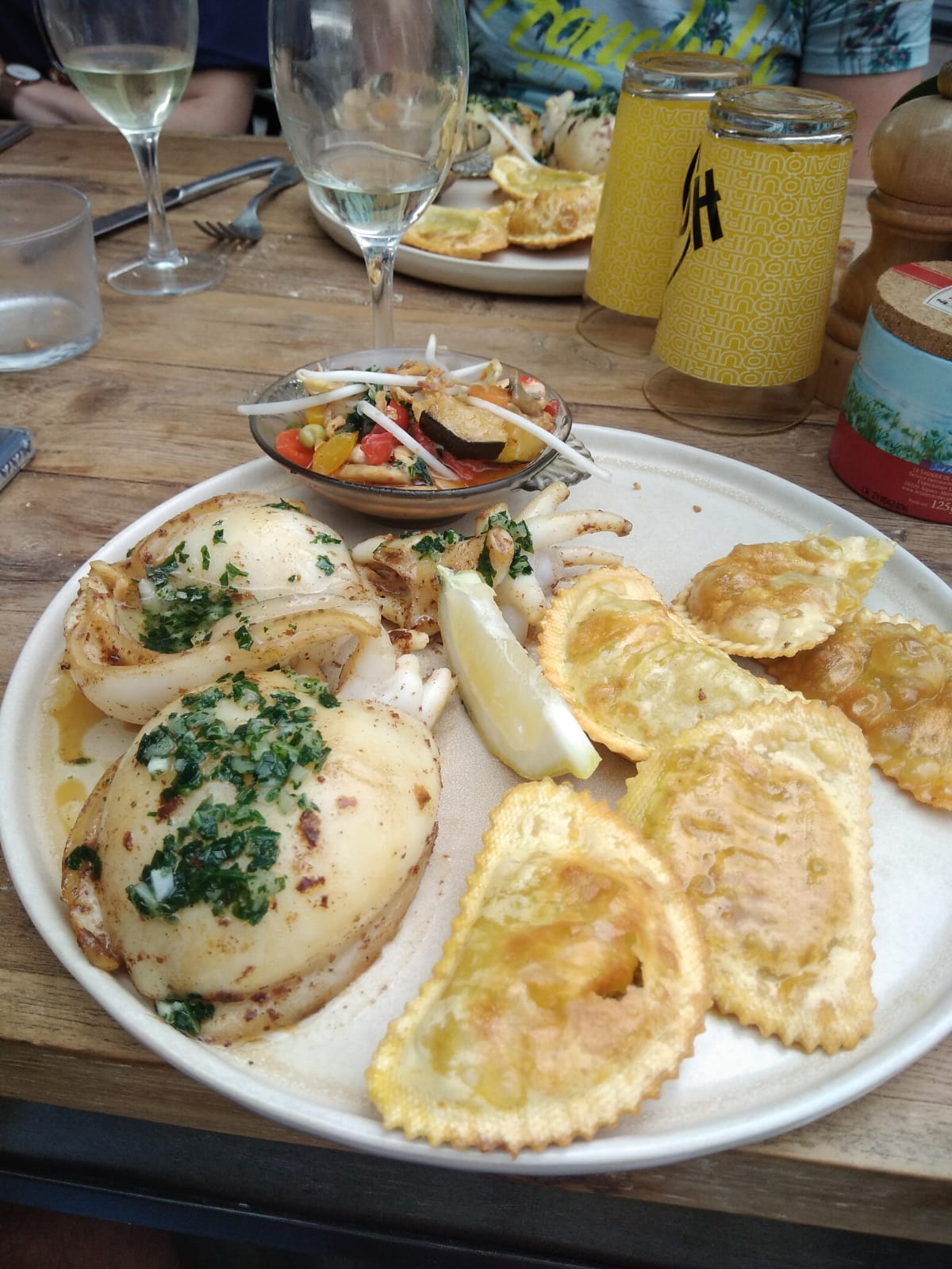 Produits frais et assiettes colorés 😍 nous nous sommes vraiment régalé notamment avec le gratiné de raviole et la tomate burrata en entrée Les serveurs sont souriants et très sympathique!! Merci encore.... ps: le tiramisu une dinguerie 🇮🇹👏👏