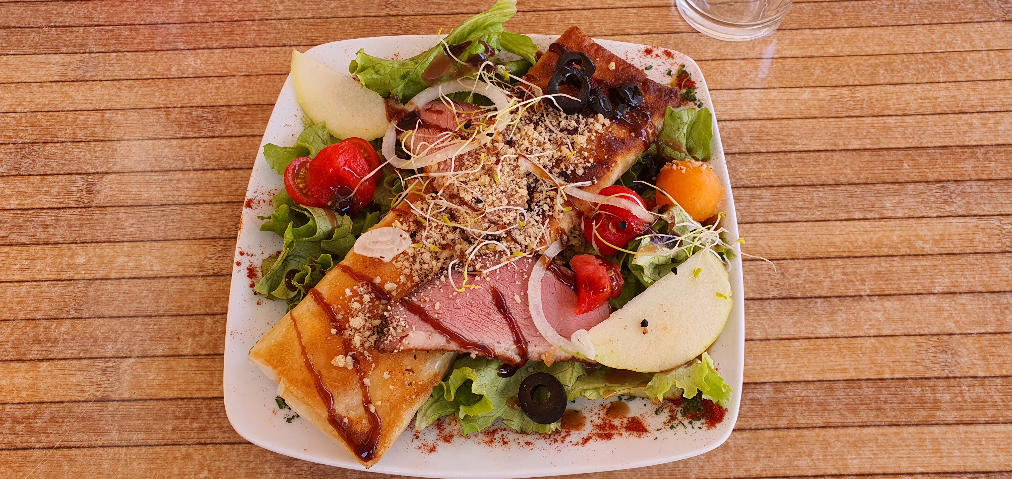 Ils étaient au complet et se sont mis en quatre pour nous servir. Salades copieuses, présentation vraiment bien faite Même le menu enfant est beau et bon Vraiment une bonne adresse !