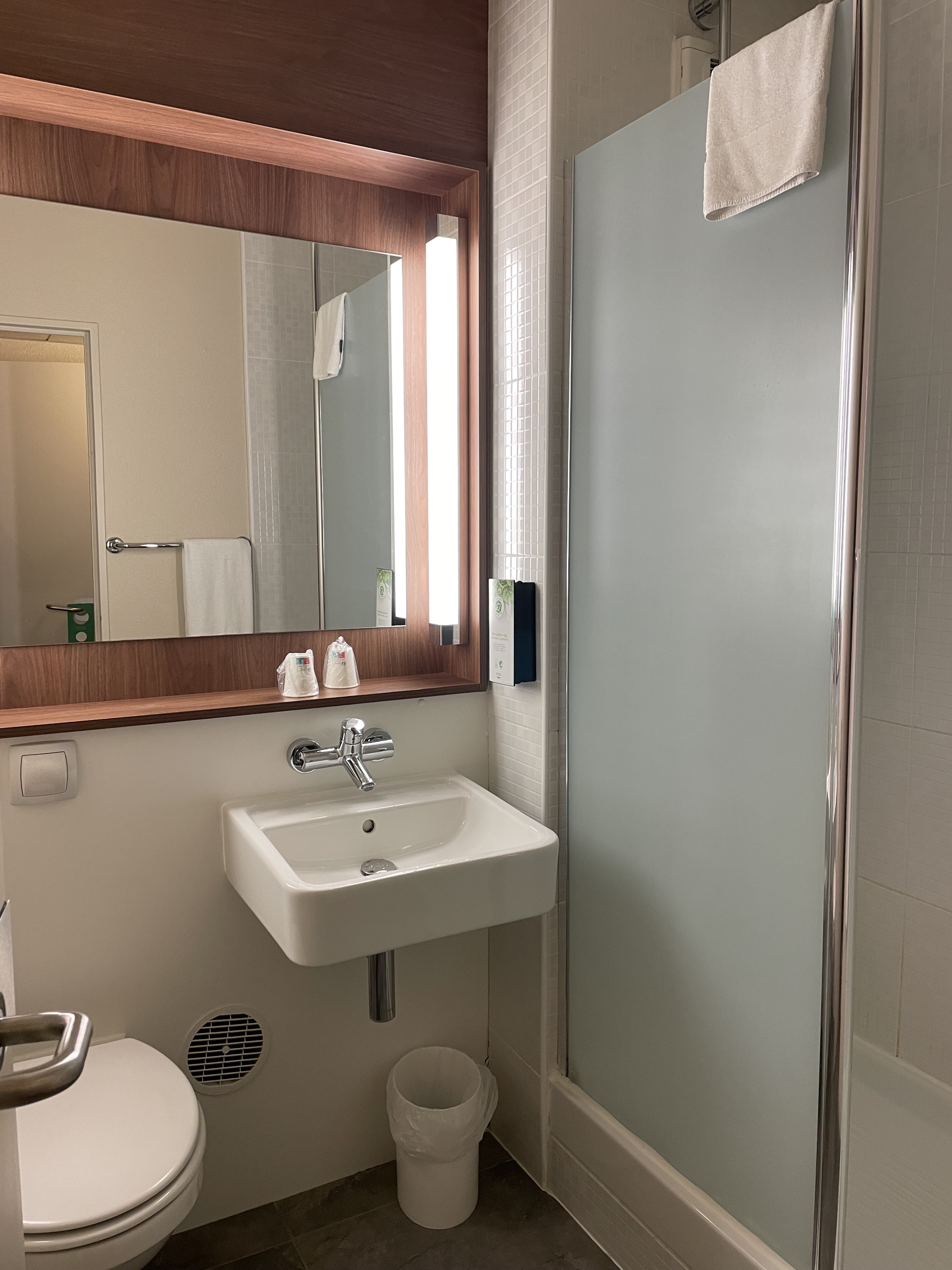 Arrivé pour une nuit chambre simple, tres tard apres un concert la petite jeune fille de l'accueil soir était tres agréable et souriante. Chambre propre grande douche tres calme pas un bruit durant la buit malgré l'aeroport juste à coté lit tres confortable ( juste ma télé s est allumée toute seule dans la nuit j'en cherche encore la raison 🤣🤣) Petit dejeuner de qualité et personnel restaurant matin tres serviable et souriant je recommande !