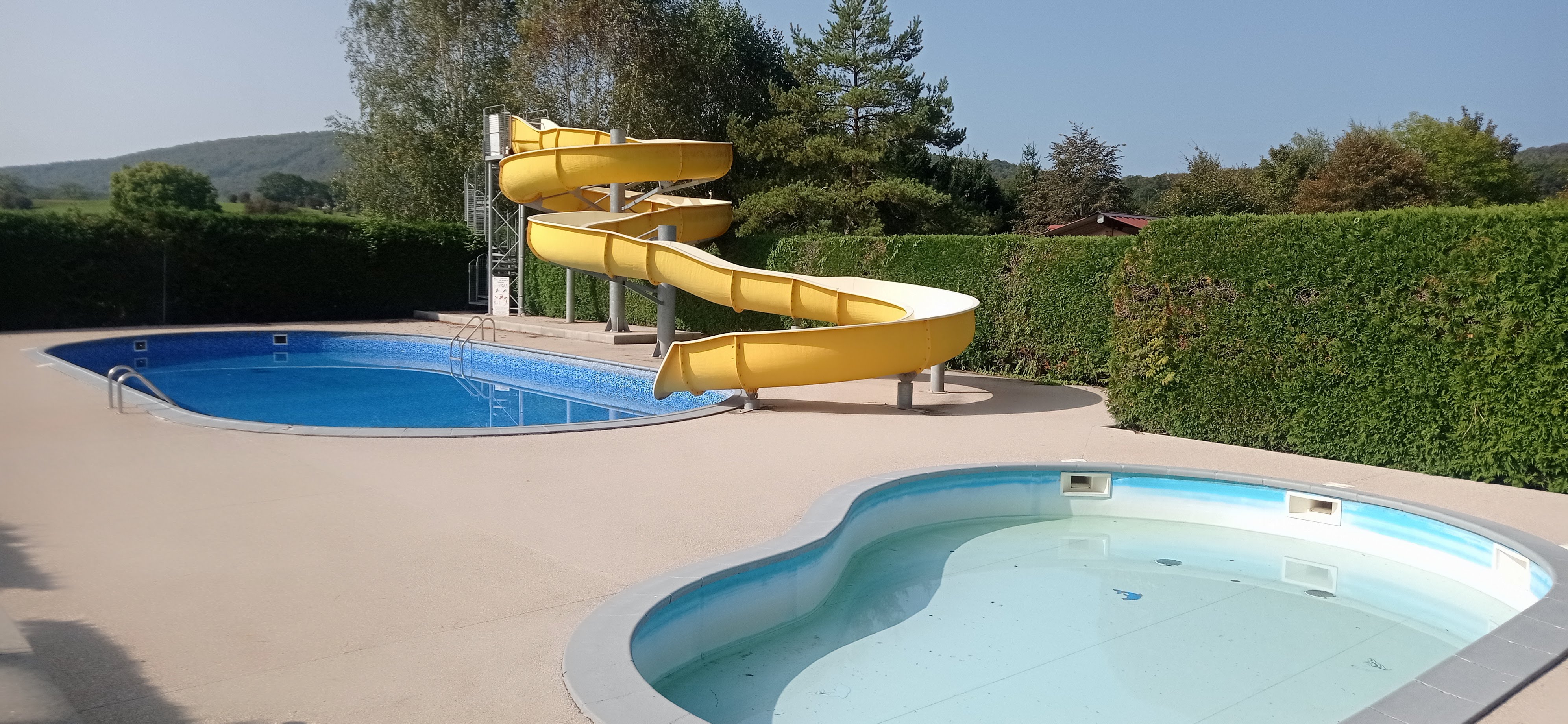 Nous avons passés deux semaines en mobile home. Camping familial à taille humaine, accueillant, propre et calme. Possibilité de venir avec son toutou. Piscine et parc aquatique très sympa. La station Monts Jura n'est pas très loin... Beaucoup d'activités de disponible là-bas !!! Nous avons effectué un bon séjour Sommes rentrés bien reposés, le personnel est très disponible. Merci beaucoup, À très bientôt. Cornet Sylvain.