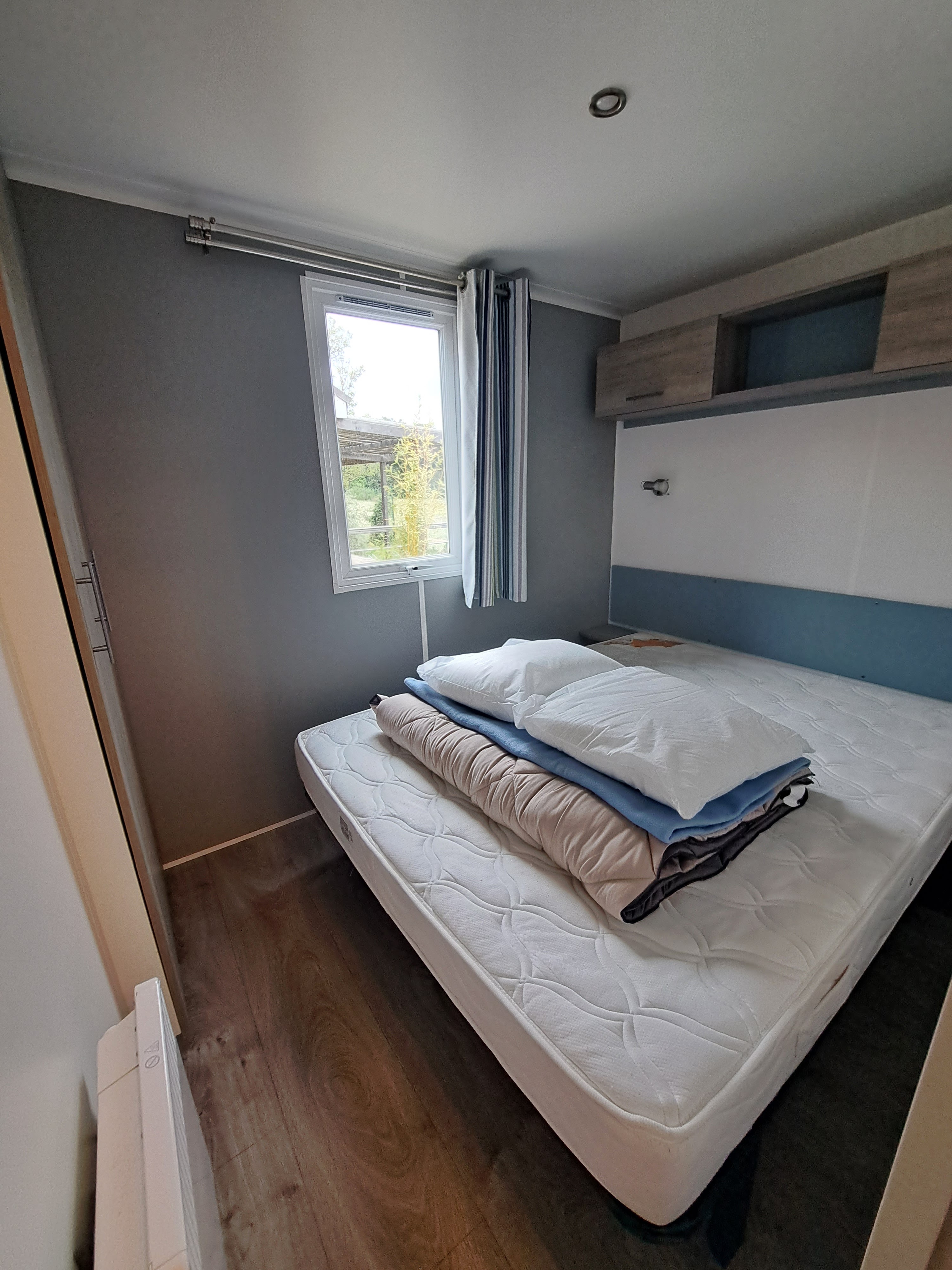 Bonjour, le mobil-home est propre à notre arrivée, mais pour dormir, c'est plus compliqué. Nous avons signalé l'absence du pied central sur le lit (indispensable pour une largeur de 160 mm) et d'un oreiller. La personne de l'accueil note sur un carnet, mais il ne se passe rien ! Le problème a été signalé à deux reprises. Le manque de rideaux et de double rideaux rend difficile le sommeil le matin. La qualité du couchage n'est pas en adéquation avec les 4 étoiles du camping. Dommage que les poubelles ne soient pas plus discrètes à l'entrée du camping !