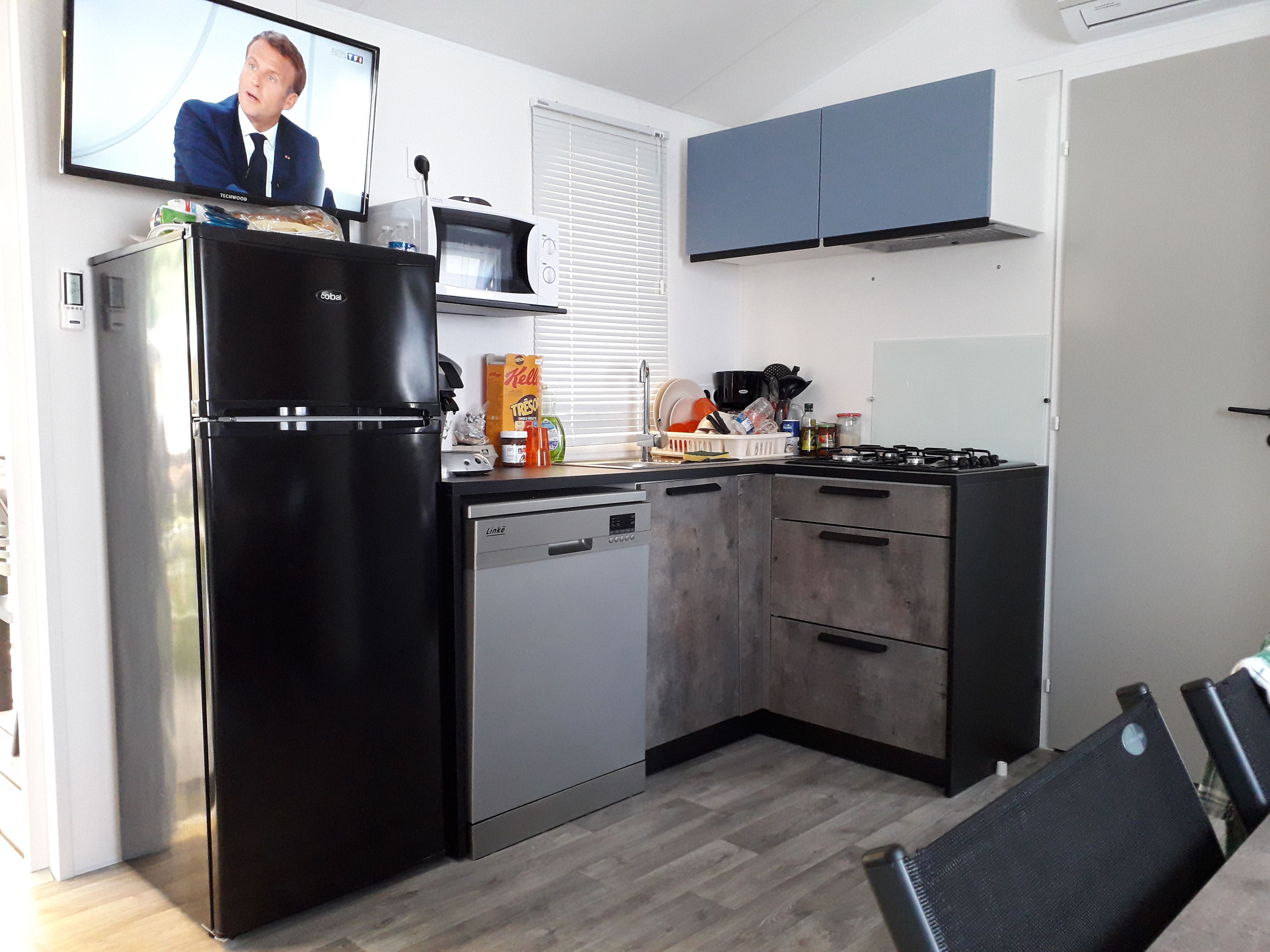 Mobil-home avec un lave vaisselle en panne donc vaisselle faite à la main. Je tiens à souligner que la propriétaire du camping nous a fait un geste commercial. Je la remercie et je recommande ce camping.