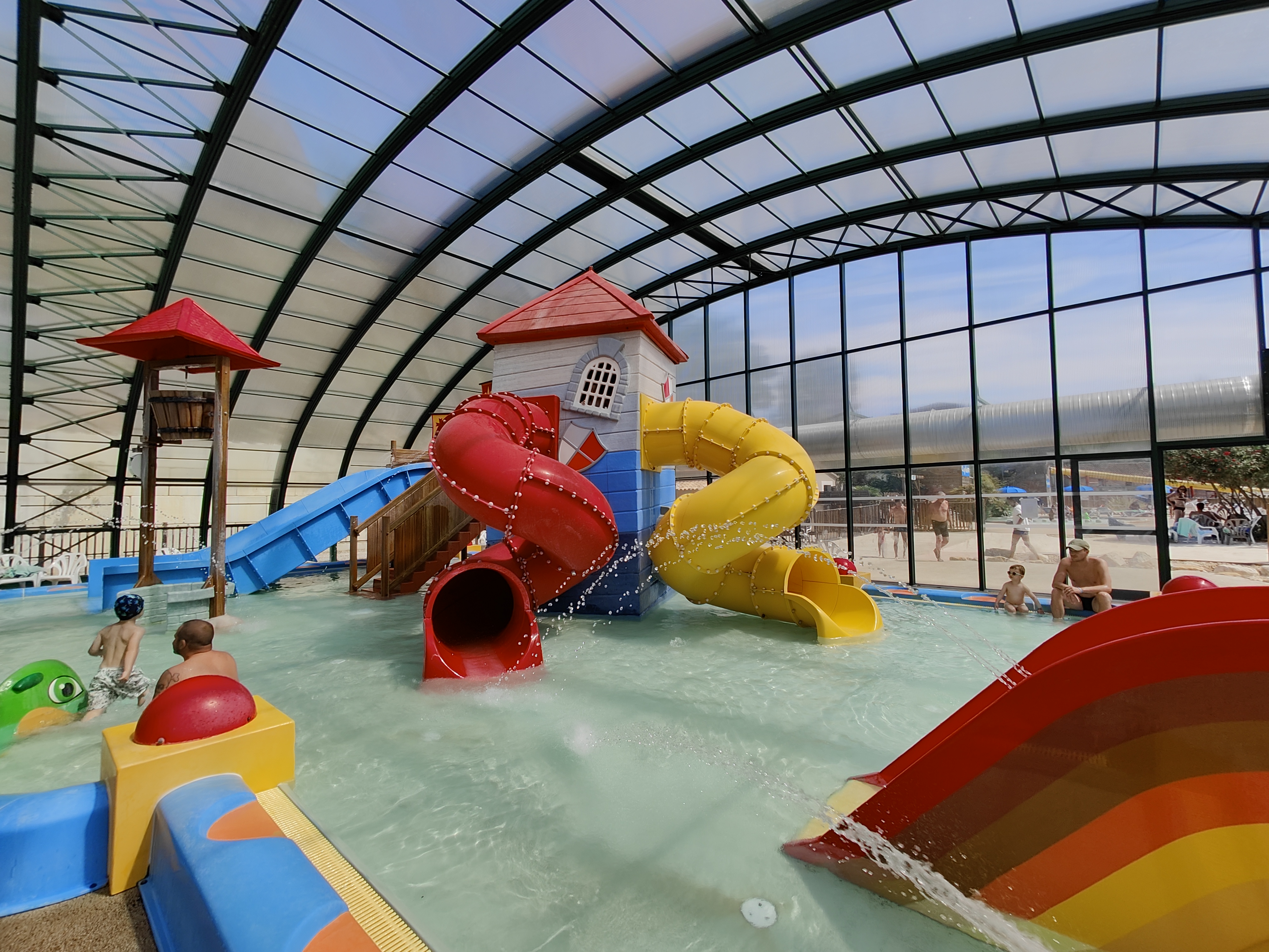 Parc aquatique génial car deux piscines couvertes hyper propres. Jolie structure de jeux au niveau du bar, restaurant ! Camping très calme où les animations sont manquantes. Pas adapté aux personnes avec invalidité car pas plat. A signaler une invasion de chats donc quelques batailles bruyantes les nuits. Plus d emplacements…. Donc on laissé les sanitaires se délabrer. Dommage car camping idéal courts séjours, pour recharger batteries. A regretter l arrêt des emplacements pour ne faire plus que du mobil home