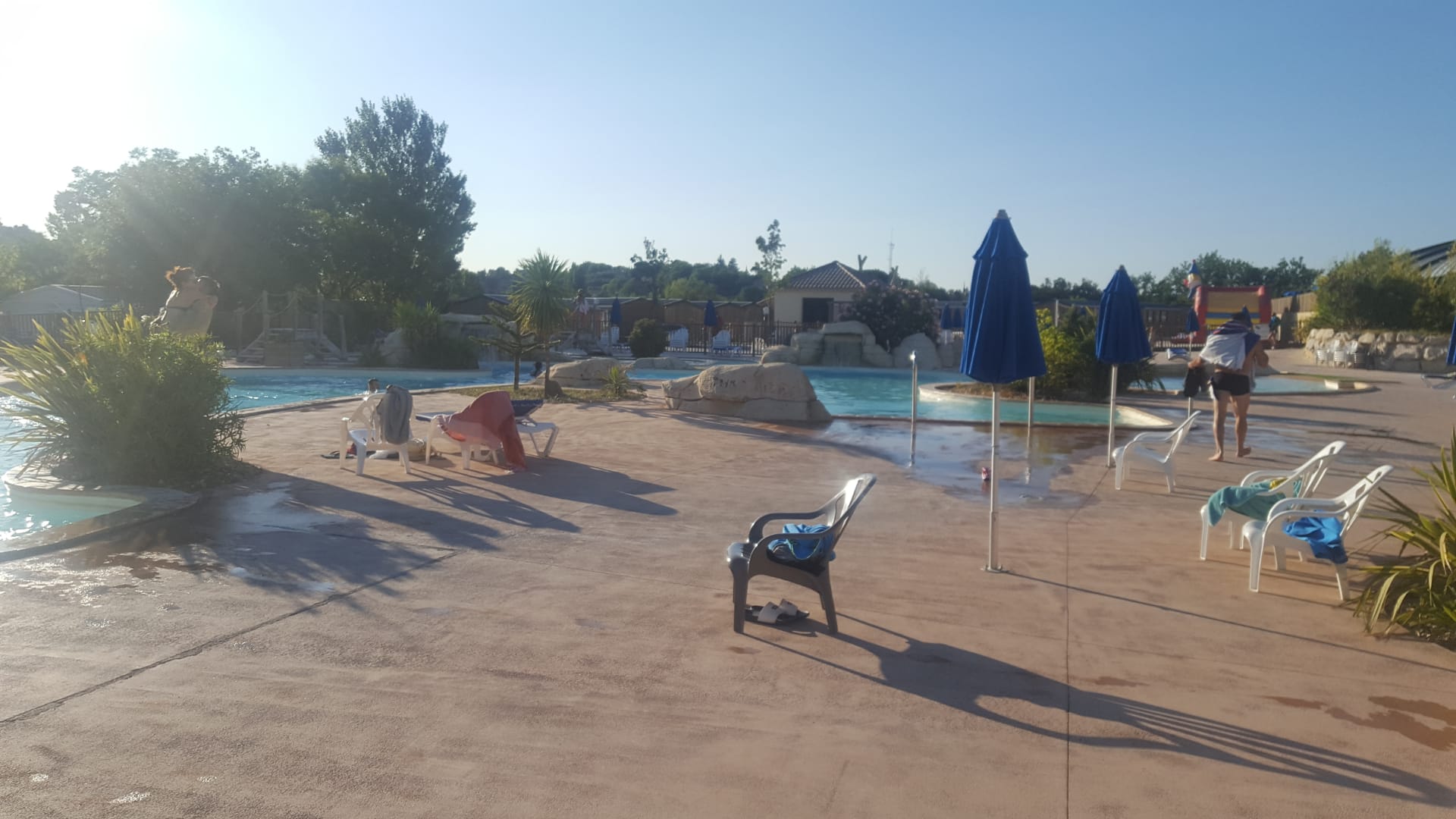 Première fois ici et ça ne sera certainement pas la dernière. Mobil'home aux normes et dès le premier souci signalé ça a été réglé dans l'heure. Les piscines sont superbes et il y en a tellement qu'on peut quand même nager tranquillement à toute heure. Mention spéciale à l'équipe d'animation surtout pour le mini club, notre fille s'est régalée. Je ne donne pas les 5 étoiles pour des petits détails: Le parc aquatique des petits commence à devenir dangereux vu l'usure les marches de l'escalier sont lisses et in y glisse facilement (3 accidents pendant notre séjour) La deuxième est par rapport aux agents autour de la piscine: ils sont présents et font attention à faire respecter les règles pour ce qui est de la tenue de bain et c'est une très bonne chose, ça serait bien si ils faisaient appliquer la règle pour les jeux de ballons dangereux dans une piscine remplie d'enfants surtout que le même règlement interdit l'usage de balles dans la piscine Dans la globalité ce fut positif, nous reviendrons certainement