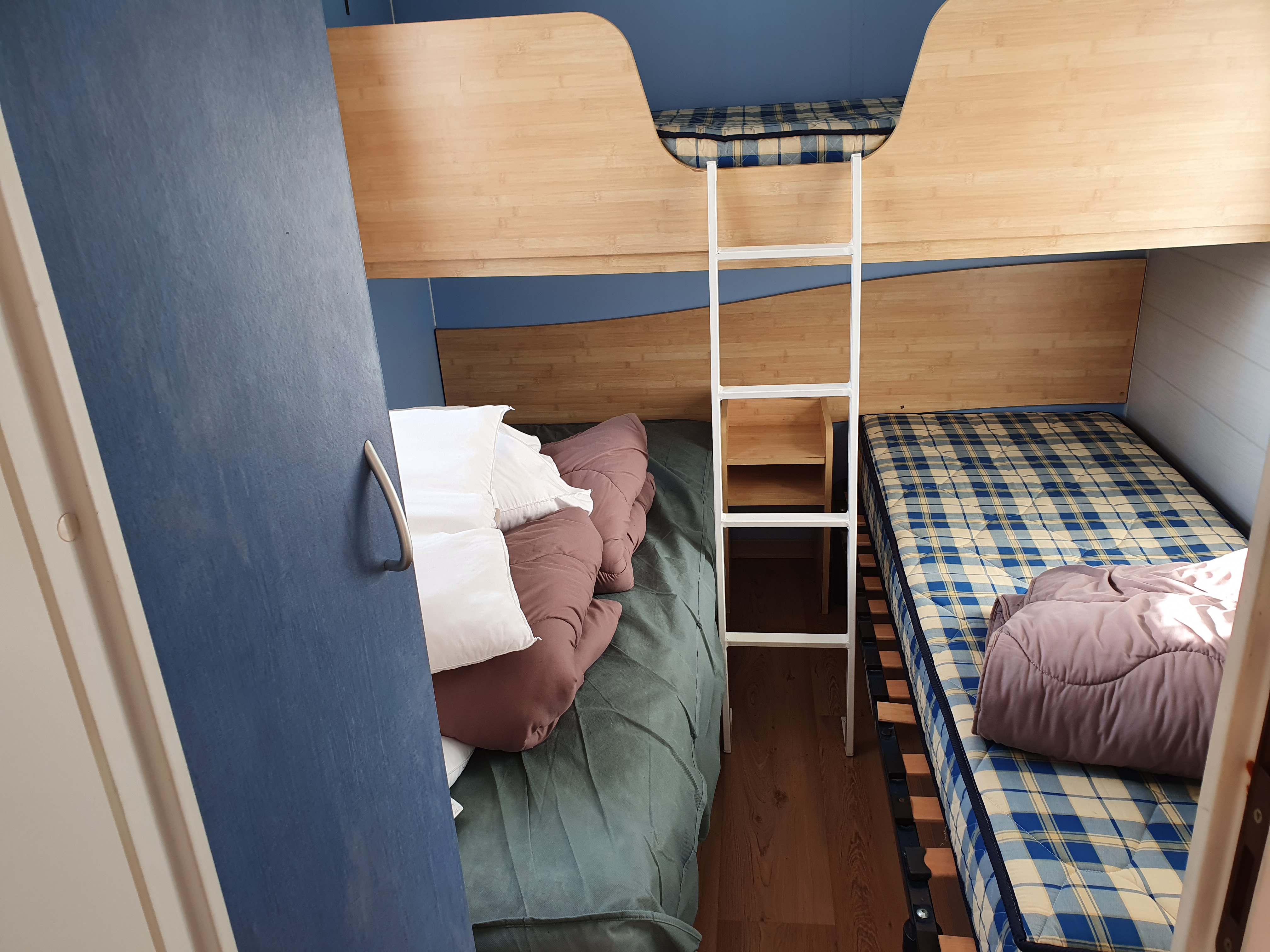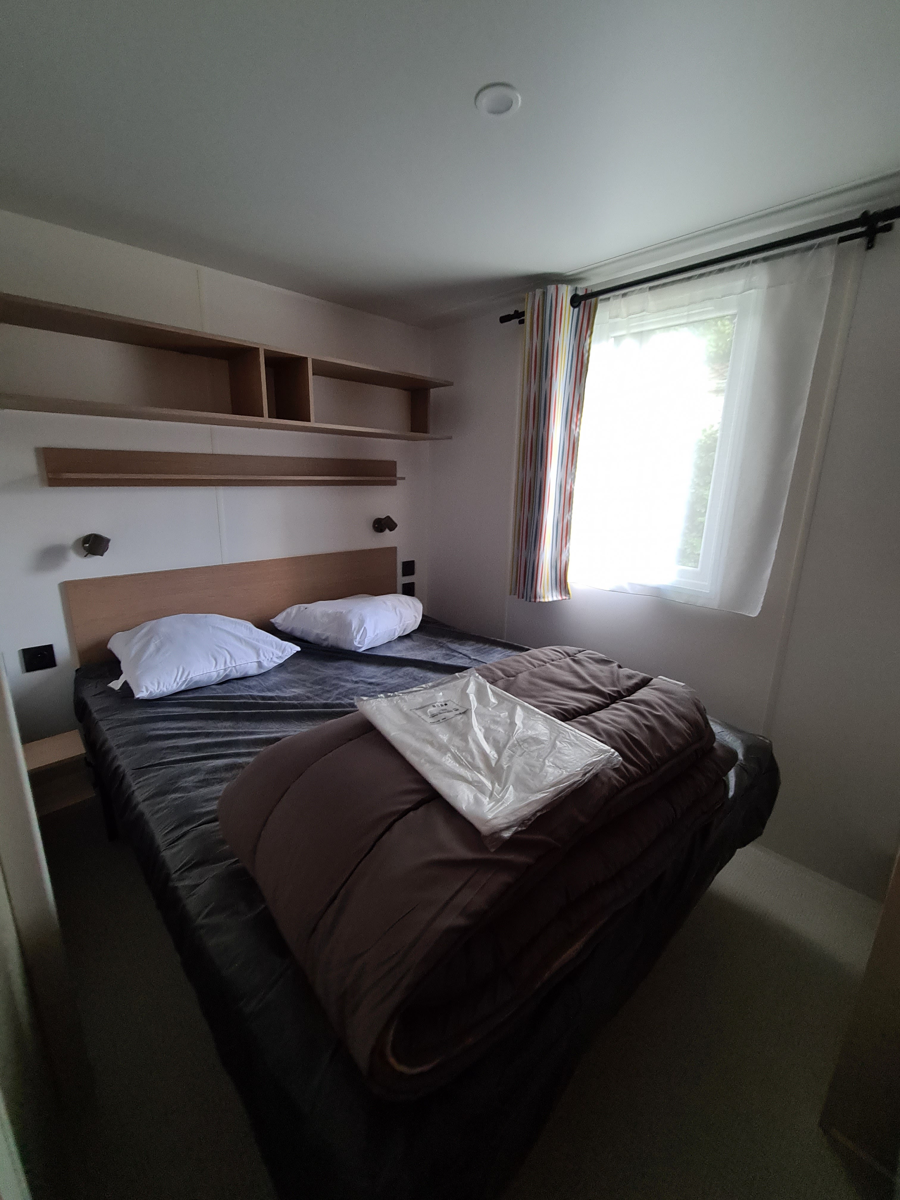 Attention, la description sur le site ne correspond pas au mobil home que nous avons eu.... nous sommes arrivés, pas de salon de jardin sur la terrasse, ensuite nous devions avoir un lit de 160, c'était 140. La chambre enfant 3 lits, alors qu'on avait prévu lit parapluie..... la porte des WC cassée, mobil home sale, dans un mauvais état.... nous étions placés à côté des barbeuc, je ne vous explique pas l'odeur de nos serviettes à sécher..... nous avions pris une tv, qui ne fonctionnait pas, un technicien est venu à 2 ou 3 reprises pour trouver 6 chaînes je crois..... et je crois le truc qui nous a le plus choqué c'est qu'il n'y avait pas de balayette dans les WC !!!! Style on se promène avec ça dans nos valises........... vraiment très déçus. Heureusement que l'équipe d'animateurs est top. Mais nous ne conseillerons pas ce camping.