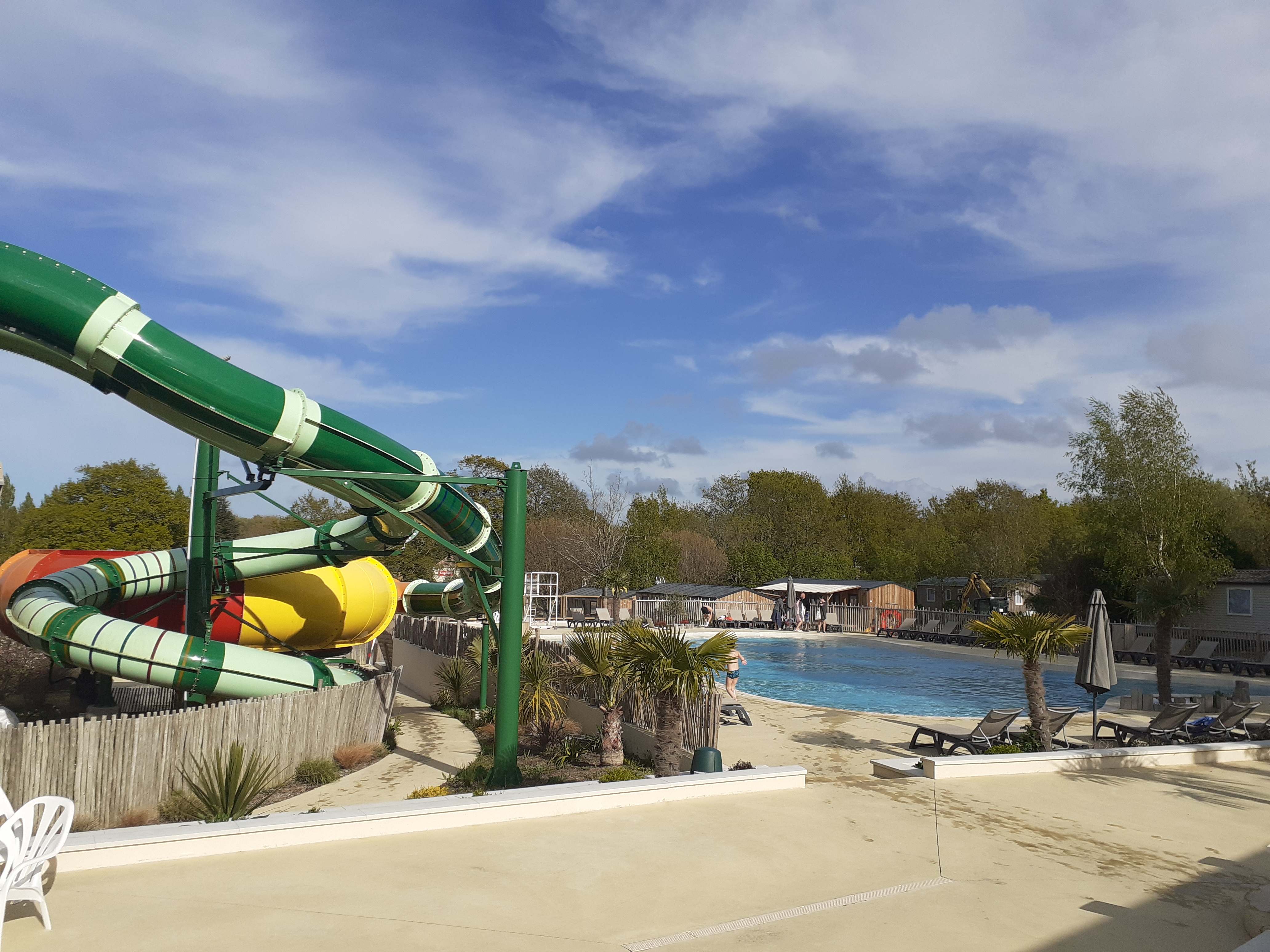 Absolument pas digne d'un 4 étoiles. Nous nous sommes retrouvés dans un Mobil home accolé à...la ligne de chemin de fer... Comment est-ce possible ?? Les 1ers trains roulent à partir de 7h. Un vrai calvaire pour les adultes alors avec des enfants en bas âge... Réveillés en sursaut à chaque fois (ma fille de 5 ans vient de me dire qu'elle a été réveillée par un avion de chasse!) Nous avons également eu le 1er jour un problème de lave-vaisselle en panne. Évidemment ça peut arriver mais 1er appel passé à 10h et malgré mes relances entre temps, le technicien n'est passé qu'à 15h. Ça aurait été gérable si l'eau chaude était simple à avoir (vive la douche écossaise au bout de 2 personnes alors que c'était un MH pour 8). La partie aquatique est grande et dispose de nombreux tobbogans, piscines, transat, etc. Cependant, l'accès vraiment dégoûtant. De nombreux jeux récents pour les enfants (châteaux gonflables, structures XXL...) Des espaces en travaux pas sécurisés. Avis donc très mitigé. Le camping pourrait être agréable mais pas en l'état.