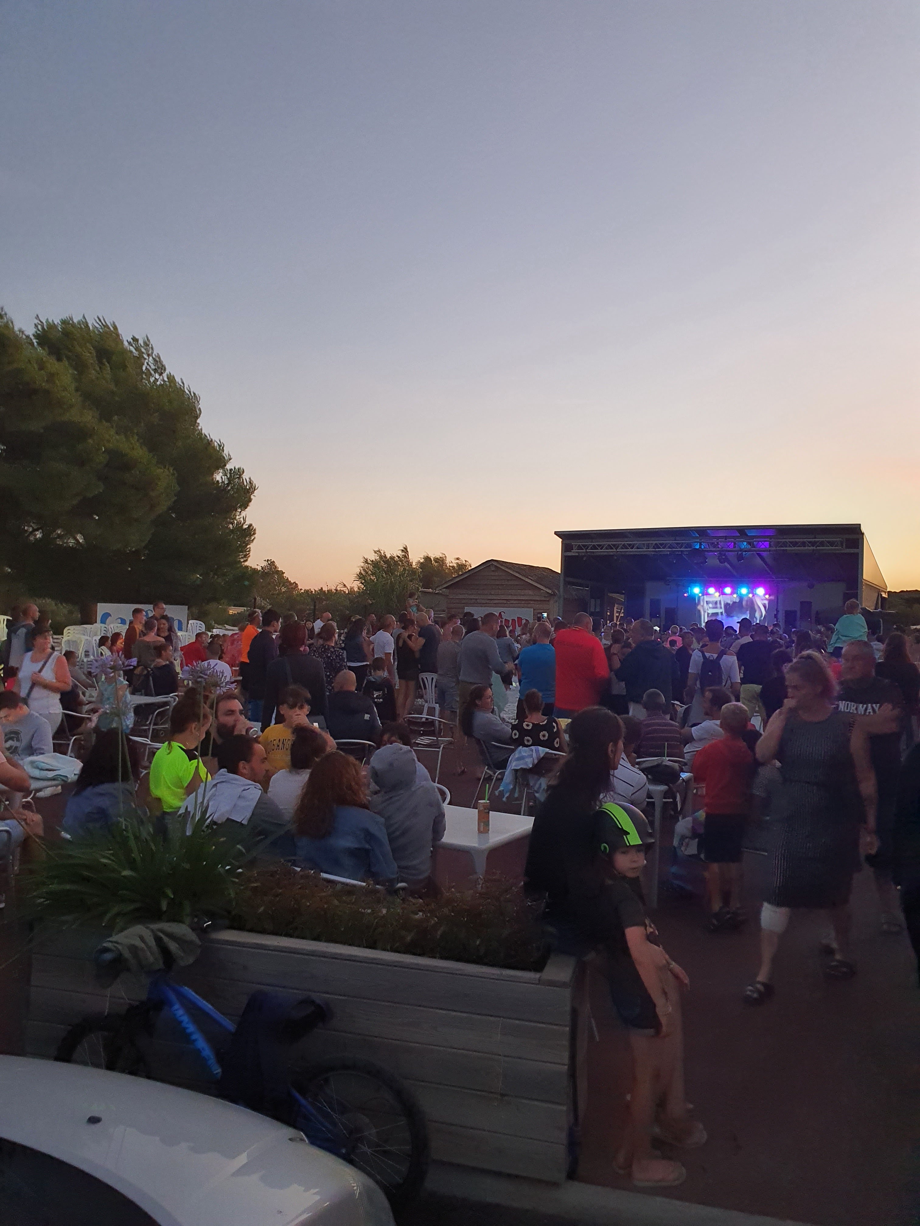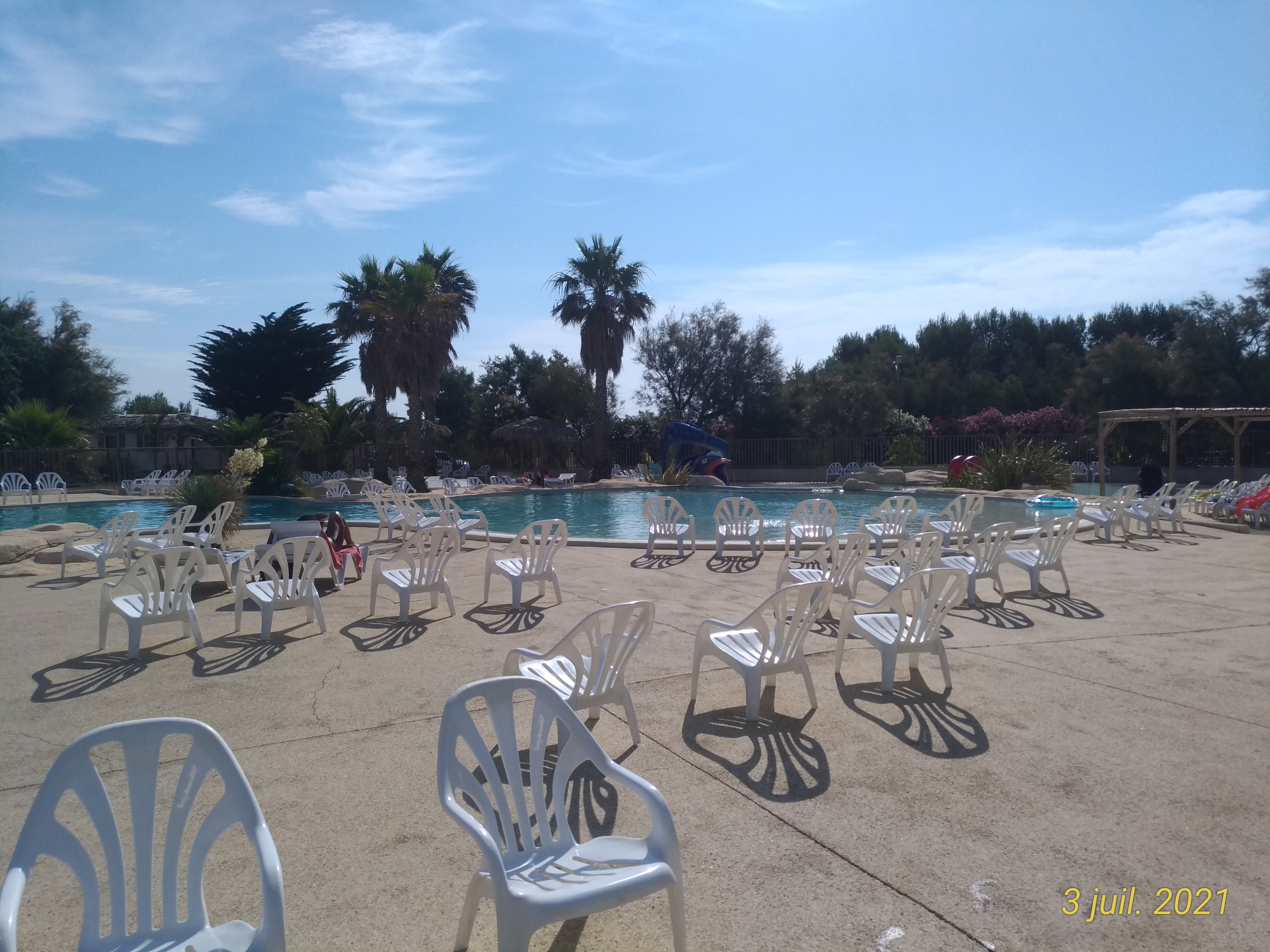 On a passé 2 semaines. Animations le soir pas top, 2 fois 1 dessin animé à la scène, des fois pas d'animation. Autour du camping très moche mis à part le centre équestre. 1 usine à proximité, le train également. On s'attends à 1 autre décors en venant dans le sud. Il faut faire minimum 30min de route pour pouvoir faire des visites, des activités etc. Port la nouvelle il y a rien du tout. Les piscines mal chauffées. En+ beaucoup de vent dans le secteur alors avec les piscines mal chauffées on a vite froid. On ne reviendra pas.