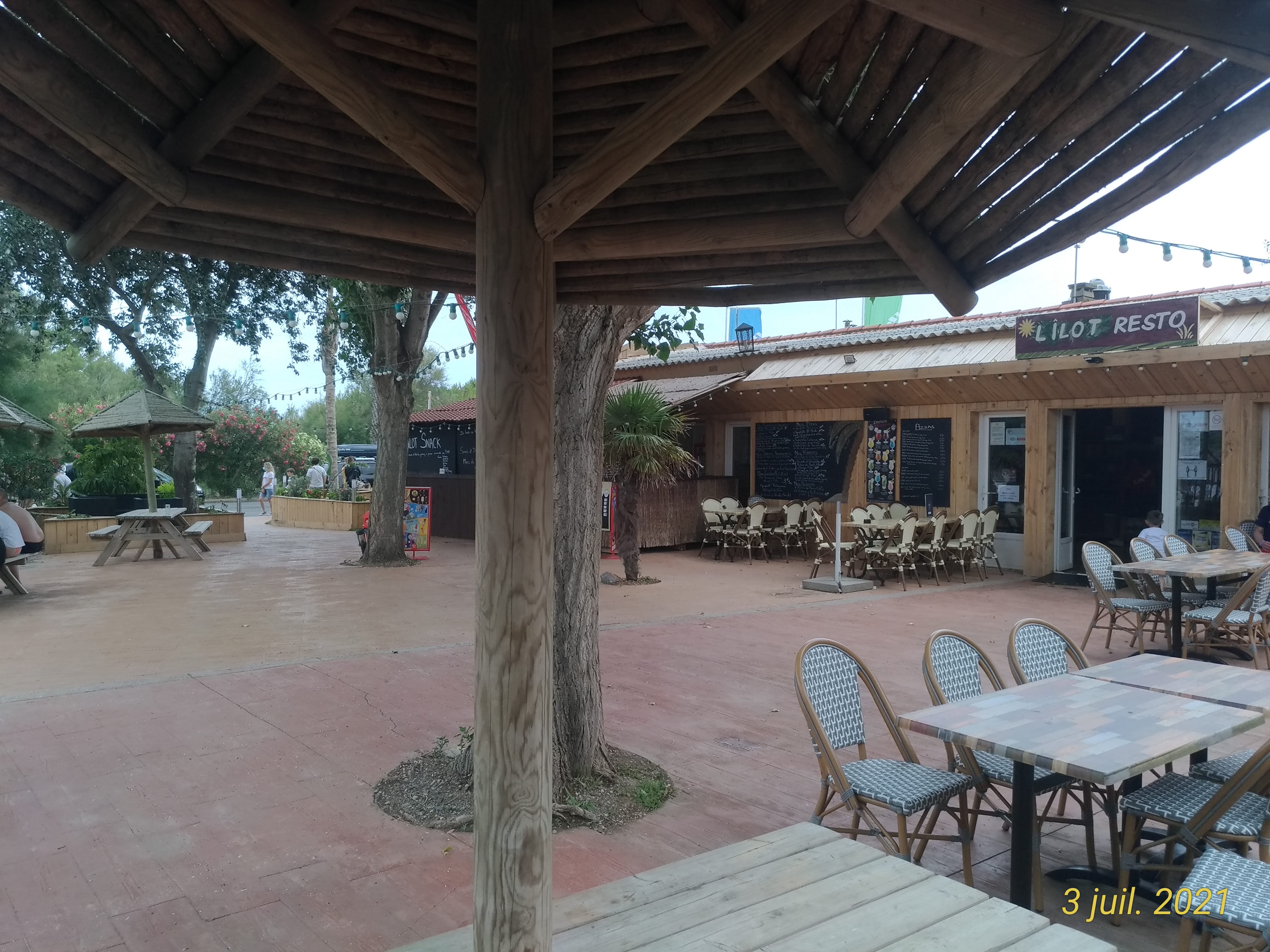 Locataire du bungalow 215 cet été, j'ai quelques points à remonter. - La propreté du bungalow n'était pas au rendez-vous, nous avions dû nettoyer table et chaises situés à la terrasse car ils ont été stockés dehors sans avoir été utilisés pendant longtemps. - Il n'y avait pas assez de couverts. La réception nous en a fourni. - La porte avait du mal à verrouiller, un technicien était passé mais, selon lui, il n'y avait pas de soucis: il faut forcer. - Pas d'ombre en terrasse les matins et midi. Je vous recommande d'apporter avec vous une toile. - L'équipe est très sympathique notamment le serveur avec la queue de cheval avec qui on a beaucoup rigolé. - Des barbecues installés un peu partout au camping (bon point positif!) Je comprend le caractère exceptionnel face au Covid (notamment pour le nettoyage des bungalows) mais cela n'explique pas le manque d'ombrage qui doit être amélioré pour le confort des clients. J'ai été surpris que les gestes barrières n'aient peu ou pas été respectés surtout lorsqu'il y avait un spectacle (photos): seuls le magasin d'appoint et la réception éxigeaient un masque.
