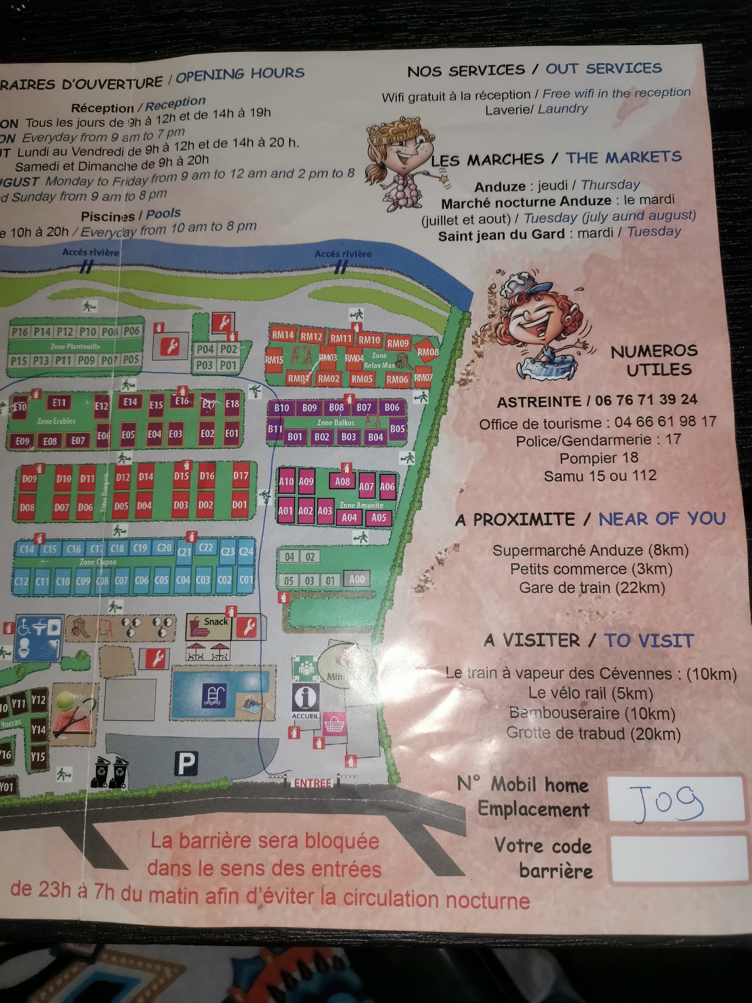 Problème d’effectif dans ce camping. En effet, après plus de 10h de route, le camping nous préviens à notre arrivée que l’équipe de ménage ne s’est toujours occupé de notre mobile home. Nous avons finalement attendu 1h45 avant d’avoir accès à un mobile home pas vraiment nettoyé (Papiers et poussières sous les lits etc …). Le camping marque cependant un point avec son accès direct à la rivière et avec ses infrastructures (City stade,terrain de tennis …). De plus le mobile home était à l’ombre ce qui permet de supporter la chaleur tout au long de la journée.