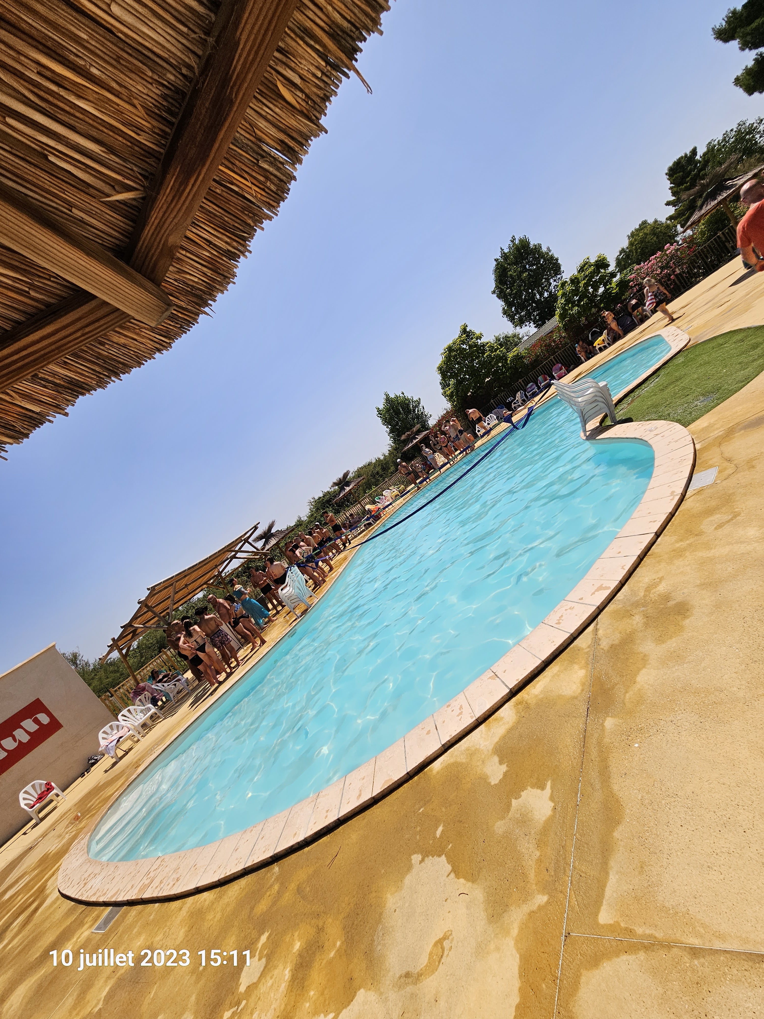 Mobil home très bien car récent (bizouquet 141 av clim), par contre trop proche de la voie principale et de la scène donc parfois bruyant ! N avions pas fait attention mais cap fun dose rouge en animation ! Etions avec notre petit fils de 5 ans donc pas pour nous mais c’est notre mauvais choix. Piscines propres dans l’ensemble et bien qu’il y ait du monde on arrive toujours à trouver une place et des sièges. Personnel sympathique. Petite épicerie qui dépanne et pains/viennoiseries tous les matins normalement à réserver la veille mais nous avons pu en avoir sans réserver (début/mi juillet). Le wifi, payant, pas toujours top. Prévoir produits anti moustiques en tout genre car dès 19h vous êtes attaqués c est assez insupportable. Peut être est ce dû aux fortes chaleurs mais…. C est aussi ça la Camargue ! Jeux pour enfants biens et camping bien placé pour visiter la région. Pas forcément le meilleur avec jeunes enfants. Avons tout de même passé un bon séjour !