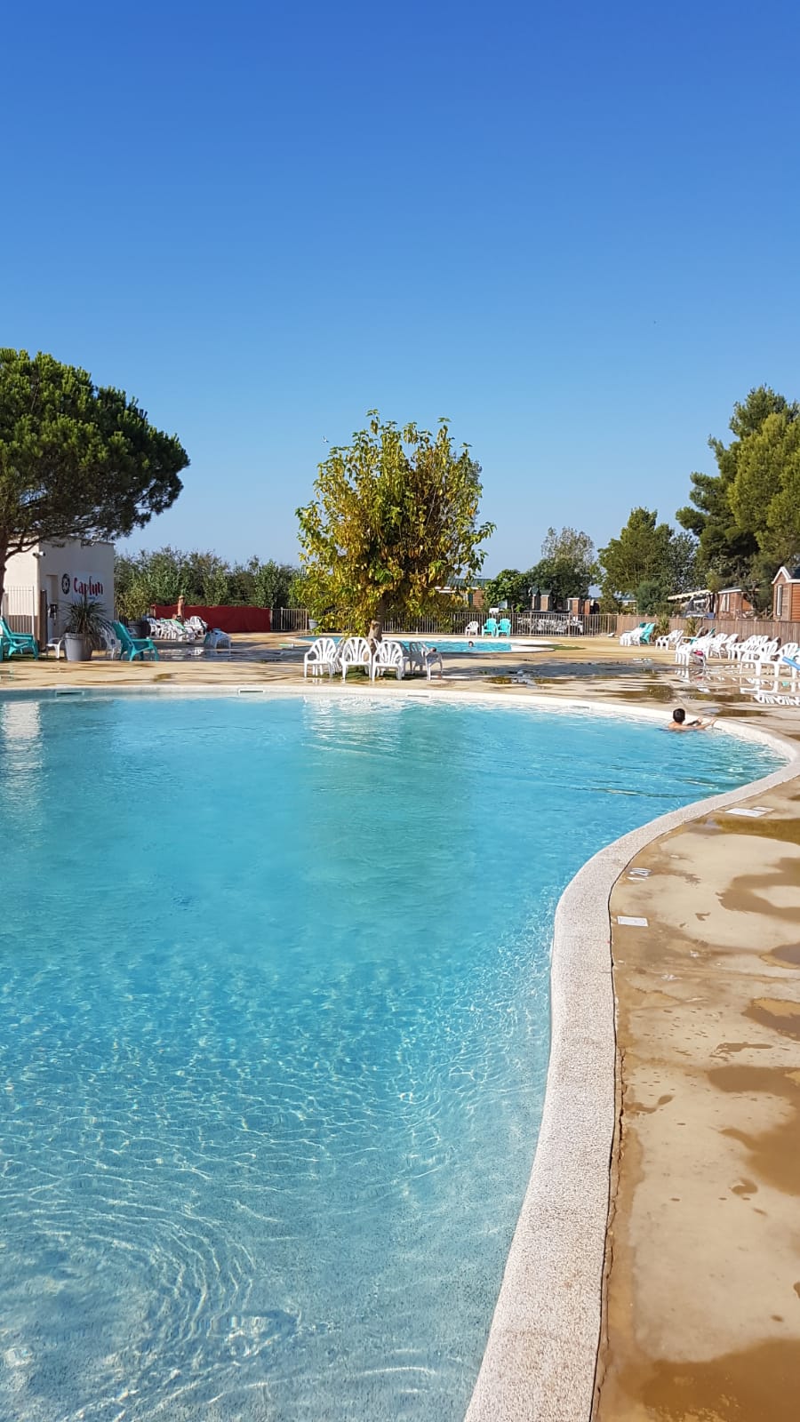 Nous avons passé 15 jours dans ce camping. Le mobile home était spacieux ainsi que la terrasse, la propreté est à revoir ainsi que l'entretien du mobile home (porte de la salle de bain qui ne se ferme pas). 1ère fois chez Capfun et on est plutôt décu de ce camping en tout cas. Un toboggan de la piscine est resté HS pendant notre séjour, ce n'est pas normal,. Pas de transat et manque d'ombre à la piscine. Côté animation c'est très moyen surtout le soir, 4 soirées cinéma sur 2 semaines. Manque de places sur les emplacements pour la voiture.