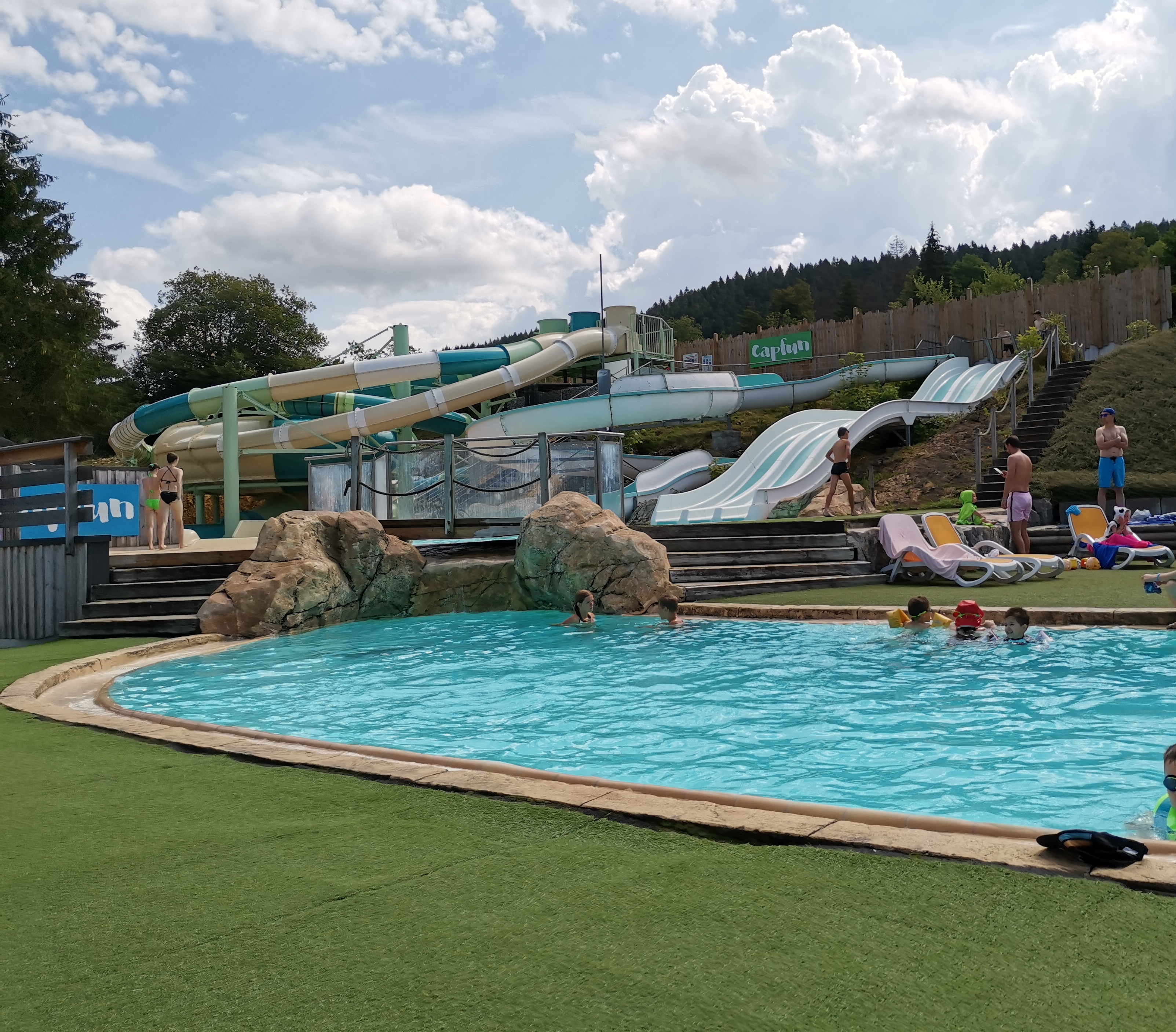 ⚠️⚠️ATTENTION IL EST INDIQUÉ DANS GOOGLE MAPS EN 4 ÉTOILES ALORS QUE C'EST UN CAMPING 3 ÉTOILES ⚠️⚠️ 1 semaine agréable 2 adultes 1 enfant. ✅ Équipe super dynamique, souriante, agréable de la direction, en passant par les animateurs-rices, jusqu'au personnel de ménage. ✅Tout sur place ✅Plusieurs toboggans au top ✅Mobil home spacieux et récent ✅ Activités et spectacles toute la semaine et pour petits et grands (hypnose, pool party, spectacle des animateurs, jeux tv...) ✅Plusieurs petits jeux enfants dispatchés partout dans le camping (balançoires etc..) ✅ Les mascottes sont chouettes et les chansons mon fils de 8 ans me les chante encore 😅 ✅ Sorties a 10-20 min, METABIEF Aventures, et le château de Joux, A VOIR ❌ Grosse déception concernant le lac, gros tuyau d'évacuation en plein milieu de la petite parcelle accessible, des crottes de chiens, des bidons semi enterrés et vis clous rouillés qui traînent, ça nous a fait penser a une ancienne décharge (je ne suis pas sûre que cela dépende du camping) mais dans la mesure où il est mis en avant sur le site il est logique que j'en parle. ❌ Gazon synthétique autour de la piscine extérieure qui brûle les pieds, et certaines agraphes apparentes, manque de parasols, et wc franchement cracra ❌ Machine à laver, juste au nombre de 3 pour tout le camping et à l'entrée (faire ses machines assez tôt ou assez tard) ❌ Pas de petit pack bienvenue avec le minimum à savoir : savon main, éponge etc.. ❌ Ne font plus de housses de protection jetables sur lesquelles nous mettons nos draps, et taies. Les protections installées non jetables sont loin d être propres ni nettoyées fréquemment je pense, pour avoir passer plusieurs lingettes devenues marrons rapidement. ⚠️ J'ai cru comprendre que ce CapFun est récent (2 ans) d'où les mobils homes neufs, et peut être des améliorations prévues....