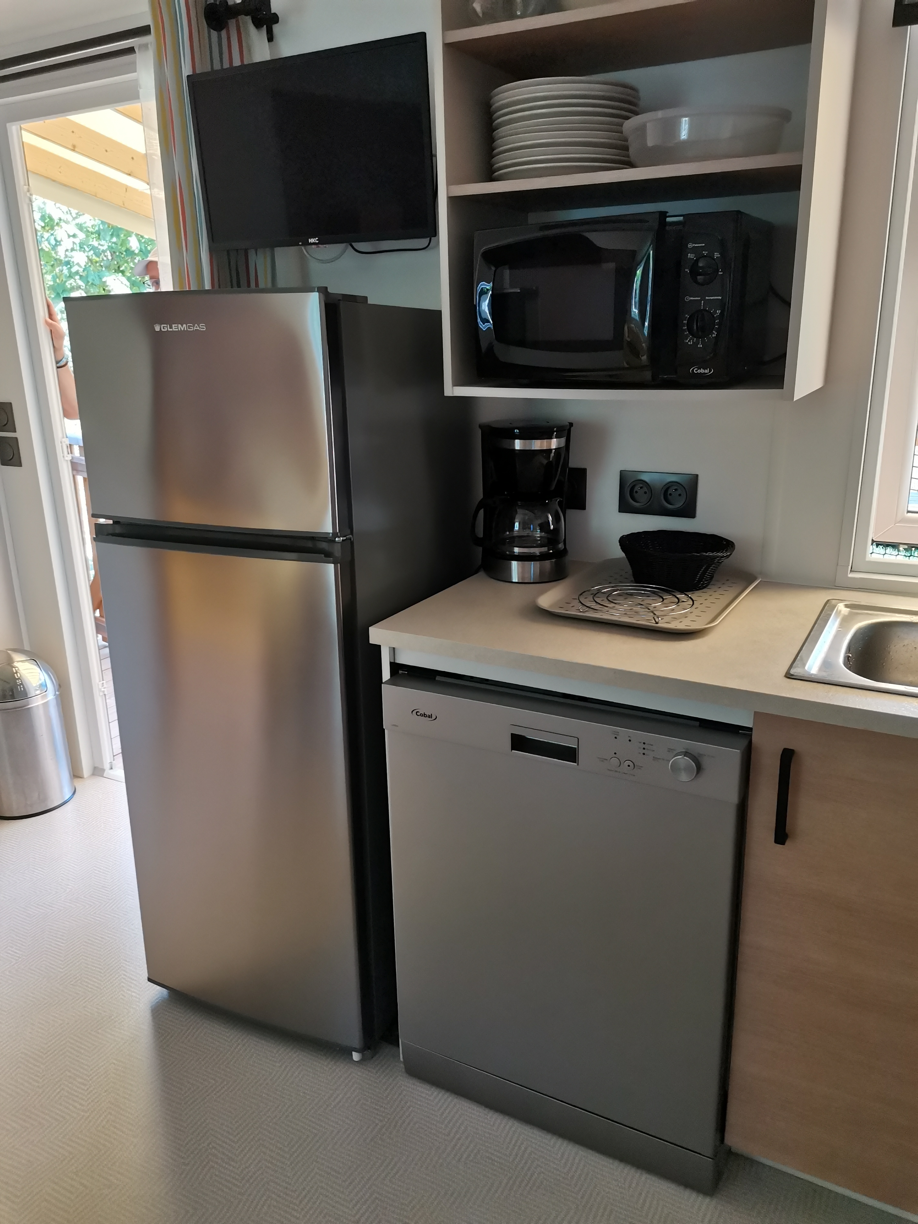 Au niveau du mobile homes pas grand chose à redire il sont neuf avec lave vaisselle, peut être juste pas assez de rangement, dans les hébergements on peut y trouver un kit avec éponge 1 pastilles de lave vaisselle sac poubelle, la seule chose qui manque à mon goût c'est la plaquette des prix du restaurant est une fiche avec écrit les horaires d'ouverture de la supérette et des activités le numéro de téléphone de l'accueil... vraiment sa serait plus simple de tous avoir dans les mobiles homes .car quant on est a l'autre bout du camping c'est un peu chiant de tous remonté pour rien. Mais sinon tous était top, en espérant revenir l'année prochaine merci