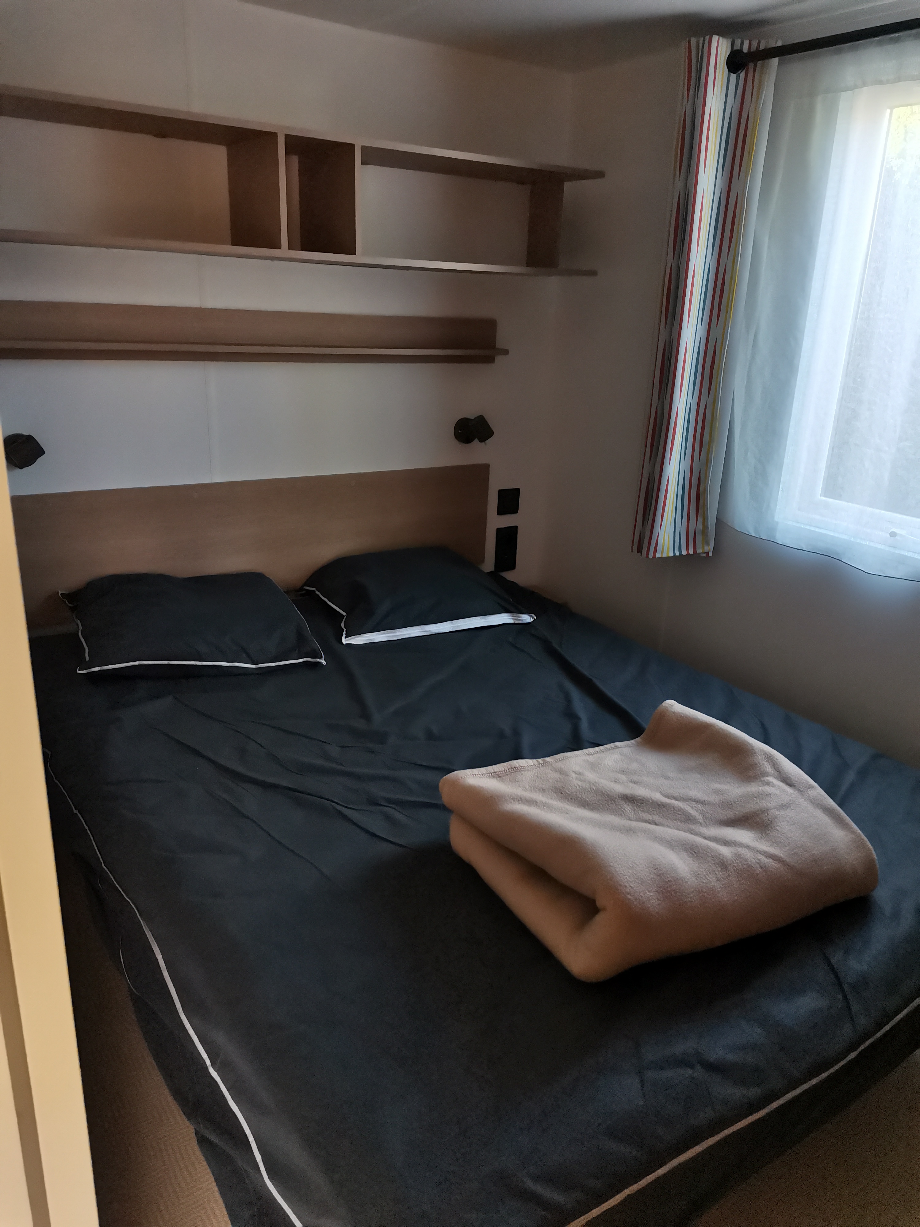 Bonjour, camping bien placé. Les piscines extérieur et intérieur sont séparées ce qui est bien dommage, l'eau des deux piscines est froide ce qui n'est pas du tout agréable. Nous n'avons pas pu en profiter de tout le séjour. L'accès aux toboggans fait très mal aux pieds car les marches sont en cailloux à la limite du gravier c'est HORRIBLE!!!!! Je recommande de changer ça ou de placer quelque chose sur les marches comme de l'herbe synthétique. Le mobile home est neuf et bien placé mais manque de rangement.