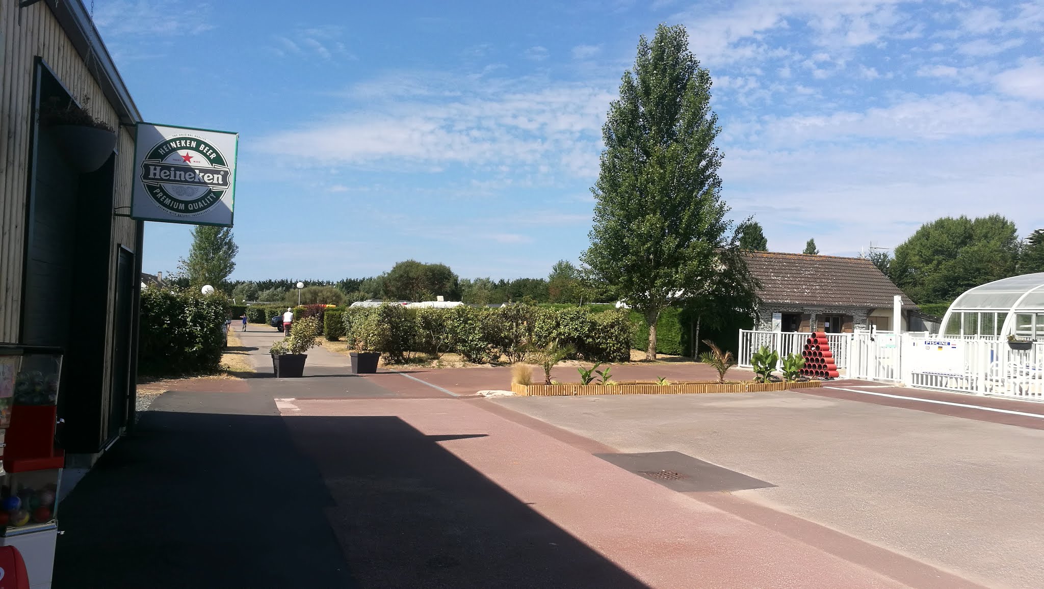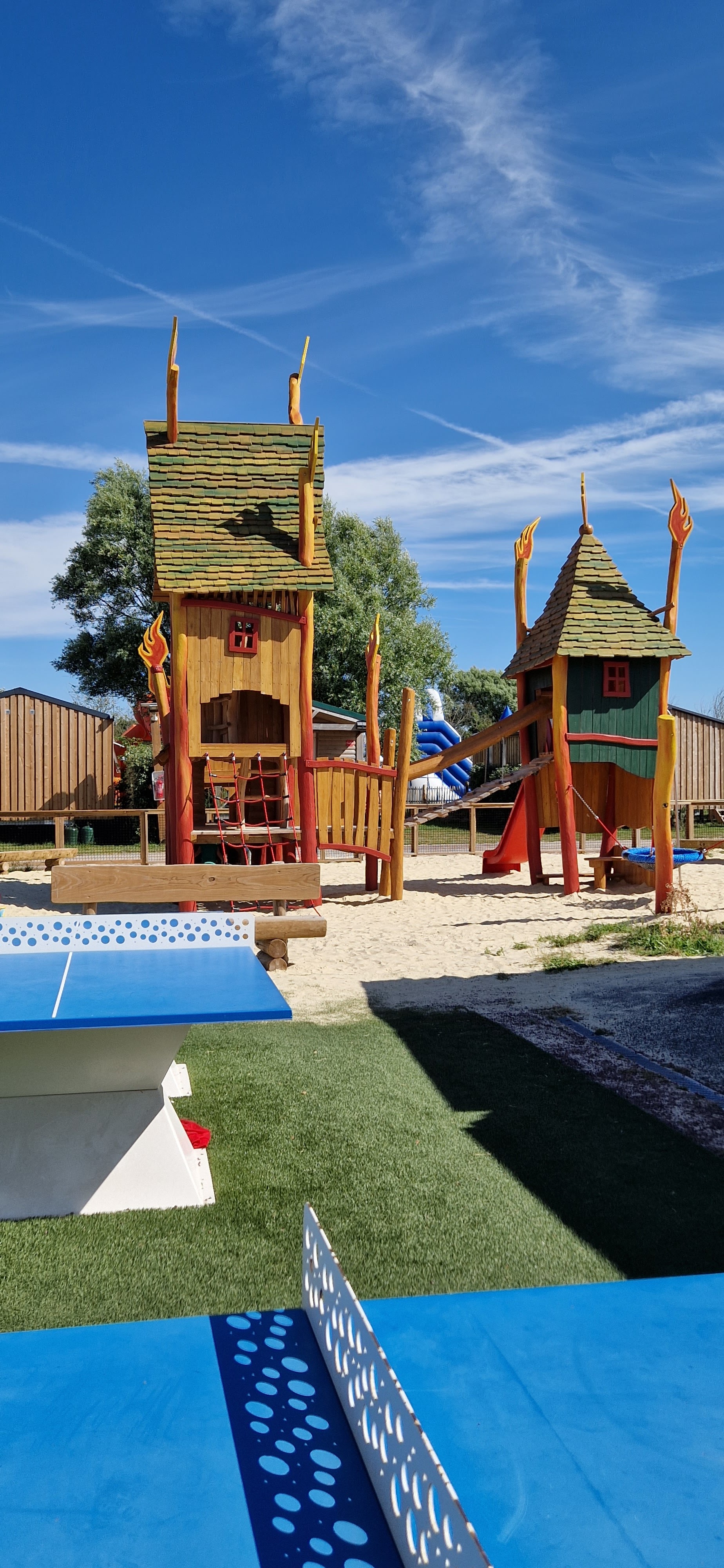 Camping à petite échelle et calme. Vous trouverez ici tout ce dont vous avez besoin. Animation pour les enfants, piscine couverte avec bassin ludique pour enfants et toboggans. Aire de jeux, jeux gonflables, terrain de jeu et de football. Si cela ne vous suffit pas, vous pouvez également utiliser les installations du camping Capfun Les Vikings, situé à proximité. En plus de notre famille, il y avait une autre famille néerlandaise. De plus, presque uniquement du français. Très bien pour moi et ma femme, un peu plus difficile pour les enfants. Certains membres du personnel parlent un peu anglais. Vous voyez que beaucoup est investi dans le camping. Nous étions dans un nouveau chalet. C'était soigné, propre et entièrement équipé. Nous avions commandé du linge de lit. C'était une housse de couette et une housse normales. Vraiment gentil. Dans certains campings Capfun, vous recevez une literie fine qu'il faut jeter en partant. Pas ici. De plus, le camping se trouve à 1 kilomètre de la plage. Ce camping était un excellent choix pour nous.