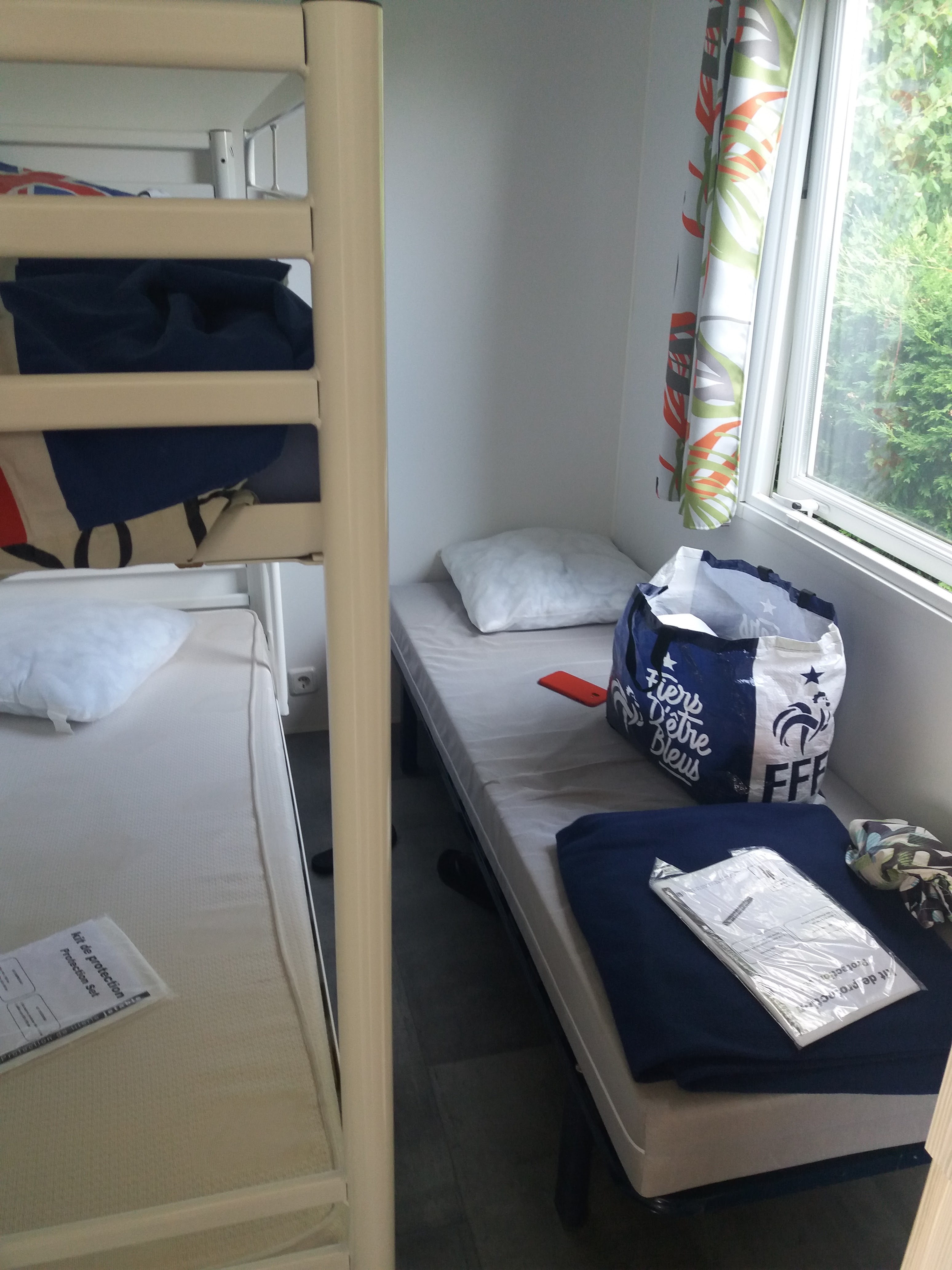 Par ou commencer -Donc pour 7 personnes ont a eu le droit a une chambre avec 1 lit 2 places 1 chambre avec 2 lits 1 place, ou vont dormir le reste sur le canapé lit🙄. -Pas de connections internet on achète donc pour avoir du réseau pour 2 personnes hors quand un est connecté l'autre ne peut l'être et encore la connexion est médiocre surtout pour le prix et u'e fois qu'on sort du camping on a du réseau a ce demander si il y a pas un brouilleur pour qu'on achète de la connection... -La porte dur a fermer -Le ménage était vite fait quand on a mit le canapé en lit on a retrouvé du pop-corn. -Aucune animation faut se rendre à l'autre camping capfun. -Une piscine soit disant chauffer mais en ce mois d'août était pas chaude. Et nul pour les petits enfants une mini pataugeoire et ensuite trop profond pour ceux qui ont pas pied. -La location de vélo est cher. -le coin jeux 5 machines dont un baby-foot mais soit il manque quelque chose soit c'est en panne... -Les jeunes vont du vélo n'importe comment ne font pas attentions aux piétons. -Le badge qui fonctionne pas. -1seul local poubelle à l'entrée. Le top car il y en a lol -Mise a disposition de 2 vélos. -Le double toboggan a la piscine . -Le petit coin parc ou il y a balançoire etc... -Le château gonflable a disposition gratuitement de 10h à 19h. Ne prenez ce camping seulement si vous cherchez de la tranquillité,