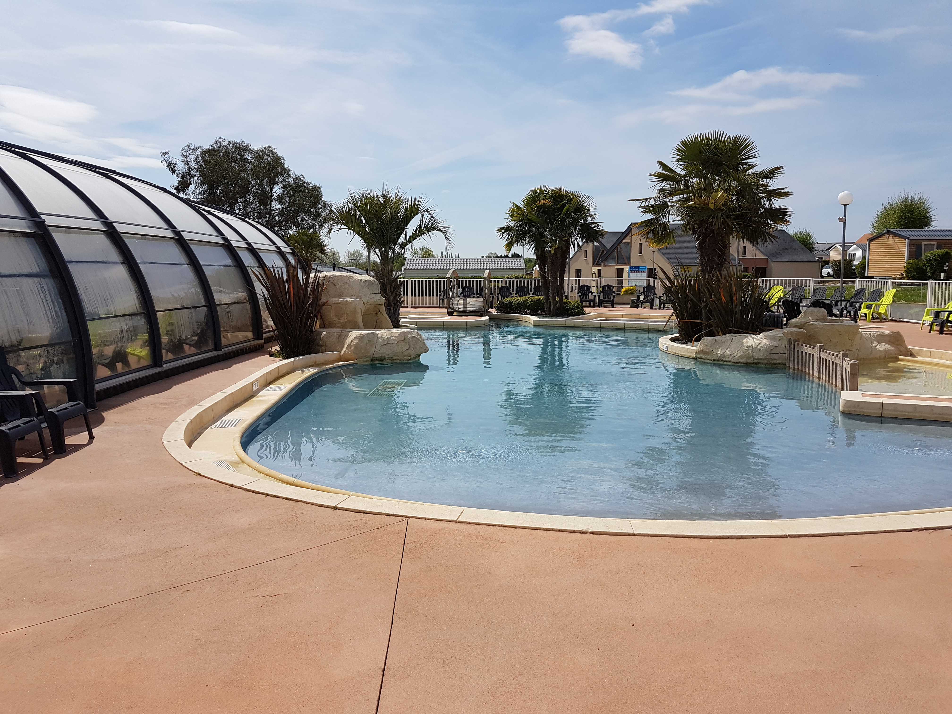 Camping très agréable,calme,avec une aire de jeux sympa pour les enfants,le pumptrack est top.le personnel est à l'écoute et sympathique,par contre en cette fin avril gros point négatif la piscine couverte était glacée, impossible de s'y baigner,l'eau des piscines extérieures était plus chaude que celle de la piscine couverte mais avec 13 degrés à l'extérieur ou par temps pluvieux,il fallait vraiment avoir envie de s'y baigner,les personnes qui avaient des enfants en bas âge étaient vraiment mécontentes,on a été obligé d'aller dans un centre aquatique à 20 minutes du camping et de payer pour pouvoir profiter d'une piscine à température agréable c'est vraiment dommage,c'est la première fois que ça nous arrive dans un camping capfun.Dommage également que toutes les terrasses ne soient pas bâchées,on n'a malheureusement pas pu en profiter non plus avec le vent.N'oubliez pas vos vélos ou louer les sur place,il y a de superbes balades à faire autour du camping avec un grand réseau de pistes cyclables dès le départ du camping le long du canal vers la plage ou à travers la campagne avec des parcours bien fléchés vers Caen, Cabourg,Colleville ...