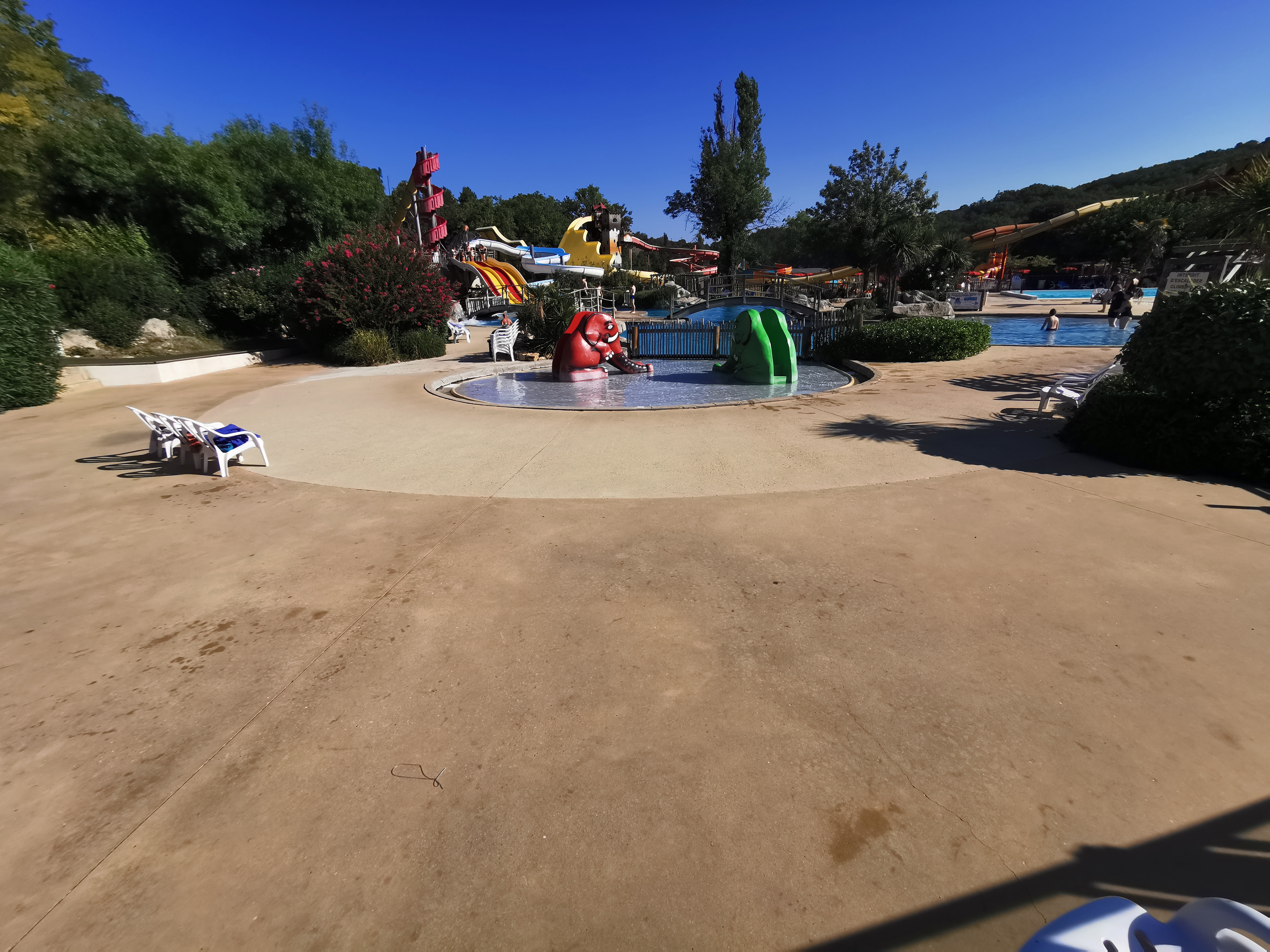 Camping de taille immense, mais vous pouvez circuler en voiture et il existe de nombreux parkings. Je déconseille ce camping pour les familles avec jeunes enfants au vu de la taille et du dénivelé de ce camping. Pour ma part mes pré-ado se sont régalés dans les tobbogans. Par contre point négatif pour le snack inexistant à cette période de l'année sauf le week-end en soirée de plus les tarifs sont élevés. Le supermarché est abordable. Le camping propose de nombreuses activités payantes. Pour les sportifs, il y a 2 petits circuits de trail dans le camping que vous pouvez modifier à votre guise au vu de l'immensité du camping.