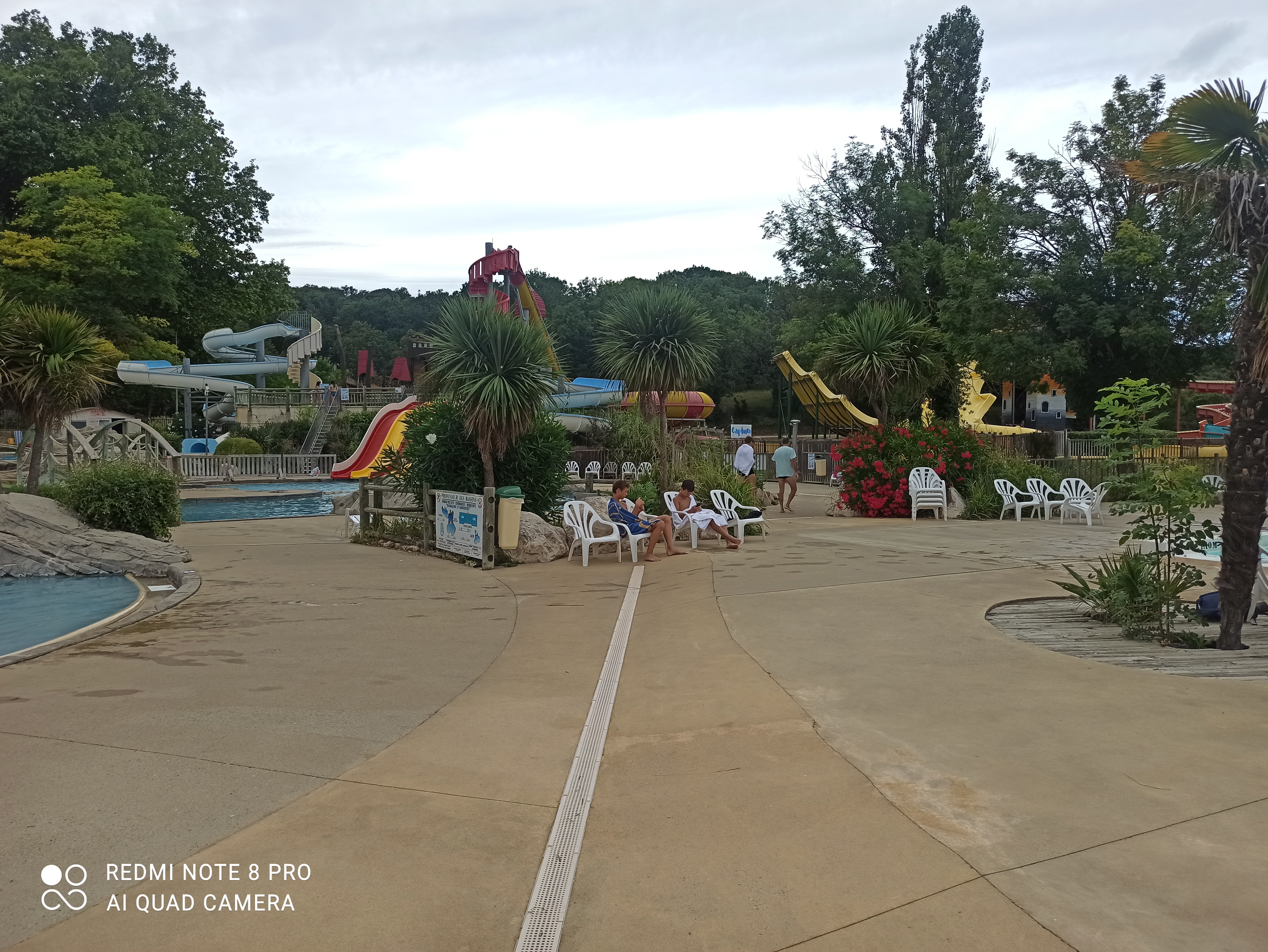 Nous avons passé 1 semaine au camping. Nous sommes mitigés. Nous avions choisi ce camping pour que notre fils s'amuse notamment avec le parc aquatique. Pas déçu à ce niveau là puisqu'il y en a pas un mais 2 !!! Qui sont plutôt bien avec beaucoup de toboggans pour tout. âges seuls bémols manque d'ombre dans celui du bas et malheureusement difficile d'accès soit a pied mais bon courage smpour remonter avec 35 degrés dehors soit en voiture ..il y a bien un petit train mais on regrette qu'il n'y ait pas de planning pour les horaires de passage obligé d'attendre 40 minutes pour ne pas le rater .. la surveillance n'est pas assurée. Les grands vont dans les bassins des petits bousculent etcnun peu d'ordre ferait pas de mal. Donc le deuxième bémol est le gigantesque du camping beaucoup de monde et la deuxième partie du camping avec le parc aquatique accessible principalement en voiture tellement c'est grand. On regrette de ne pas retrouver une ambiance familiale les mobiles homes sont les uns sur les autres. Les gens ne se disent pas bonjour. Le dernier bémol sont les restaurants où malheureusement ce ne sont pas des restaurants plutôt des fast food assez cher avec des serveurs qui courent littéralement en salle...jamais vu ça. Nous sommes servis en apéro à peine 30 secondes après on nous sert le plat. Pas compris.. Après le cadre est magnifique, ombragé. On voit l'effort du personnel et des animateurs et ceux qu'on ne voit pas qui se donne du mal pour faire de belles activités. J'ai été très contente de voir ces jeunes avec leur investissement et leur talent . Le mobil home était propre nous concernant. Les emplacements sont un peu serrés mais largement la place pour un véhicule à l'ombre. Beaucoup d'activités : mini golf, animations, tennis, foot, accrobranche, cross, aires de jeux, marchés certains joursn.. .