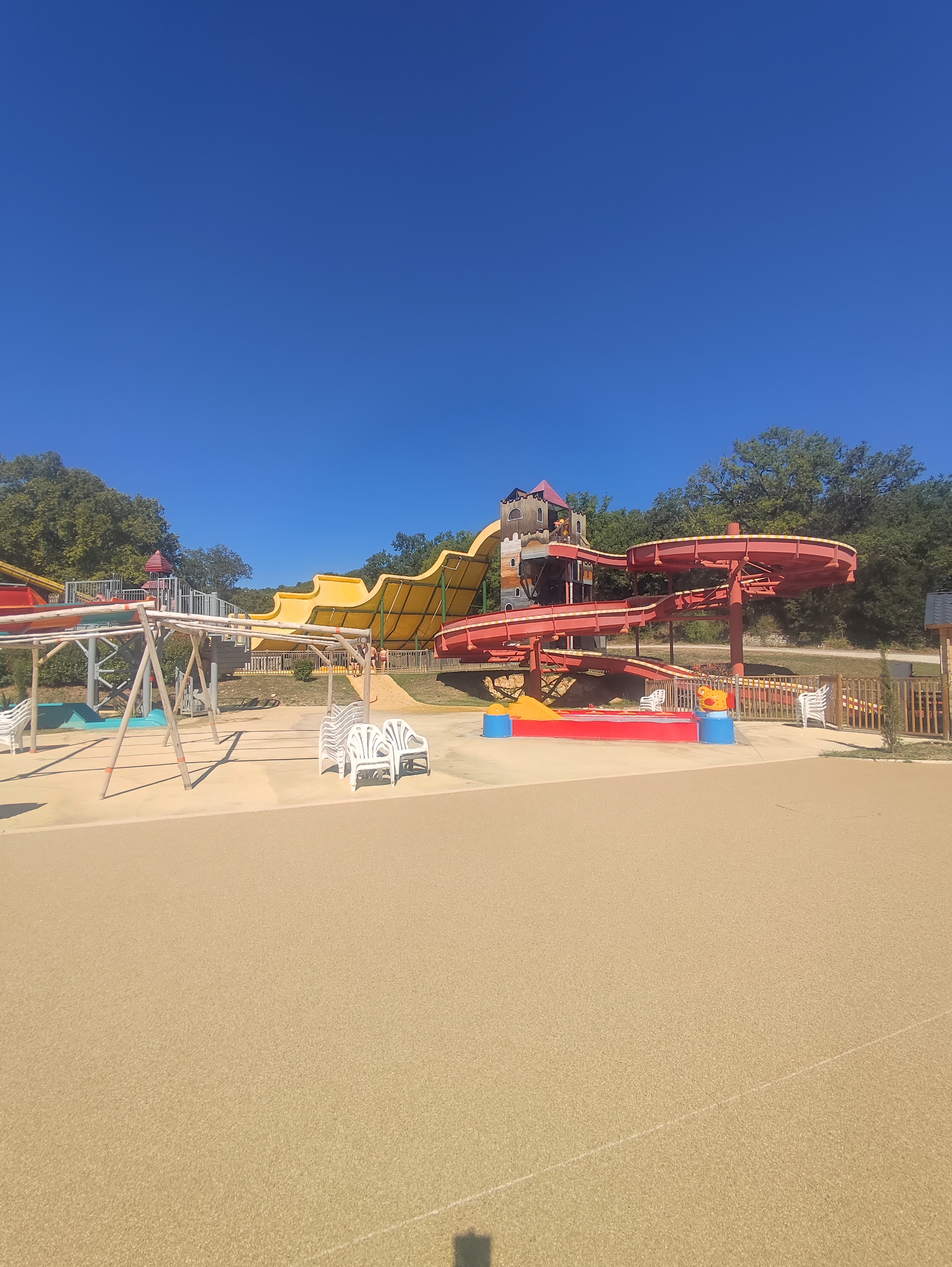 Arrivee agreable avec une superbe organisation. Petite superette et boulangerie dans le camping avec pas mal de choix. Très grand camping avec deux zones aquatiques distinctes. Un grand nombre de toboggans pour plaire aux plus petits comme aux grands. Le cadre est assez exceptionnel... Nous n'avons pas profité des animations du camping et ne pouvons donc nous positionner sur ce point. Un resto sur place moules frites à volonté qui était moyen selon nous et envahi par les guêpes. Un petit train passe toutes les 40 min pour se déplacer si vous n'aimez pas la marche. Nous apprécions beaucoup les campings capfun mais celui-ci était beaucoup plus grands que ceux que nous avions pu faire jusque là. Il n'en était pas moins bien au contraire car beaucoup d'activités peuvent se faire sur place comme le quad par exemple ou le mini golf. Pour les activités dans le coin : canyoning, karting, plusieurs grottes dont la grotte chauvet, le pont d'arc, ballade à cheval....